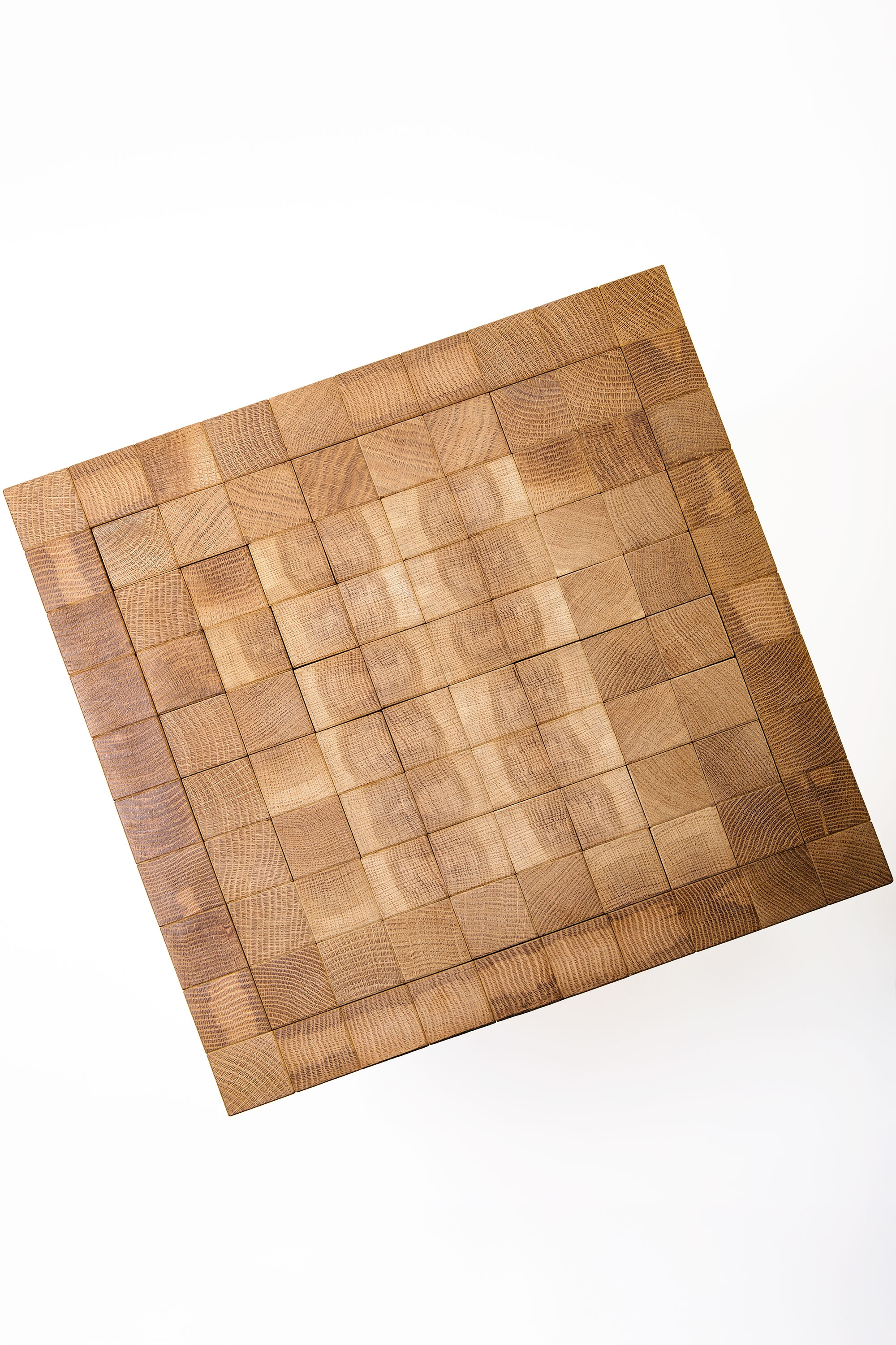 The outer frame consists of 36 wooden sticks, while the 64 inner blocks sit on a rubber sheet and foam, allowing them to sink under weight. This unexpected feature provides a comfortable seating experience without fabric upholstery, embracing the tactile qualities of end grain wood and offering a firm yet pleasantly unfamiliar texture. Unlike traditional furniture that avoids exposing end grain, KIGI turns it into a defining feature.