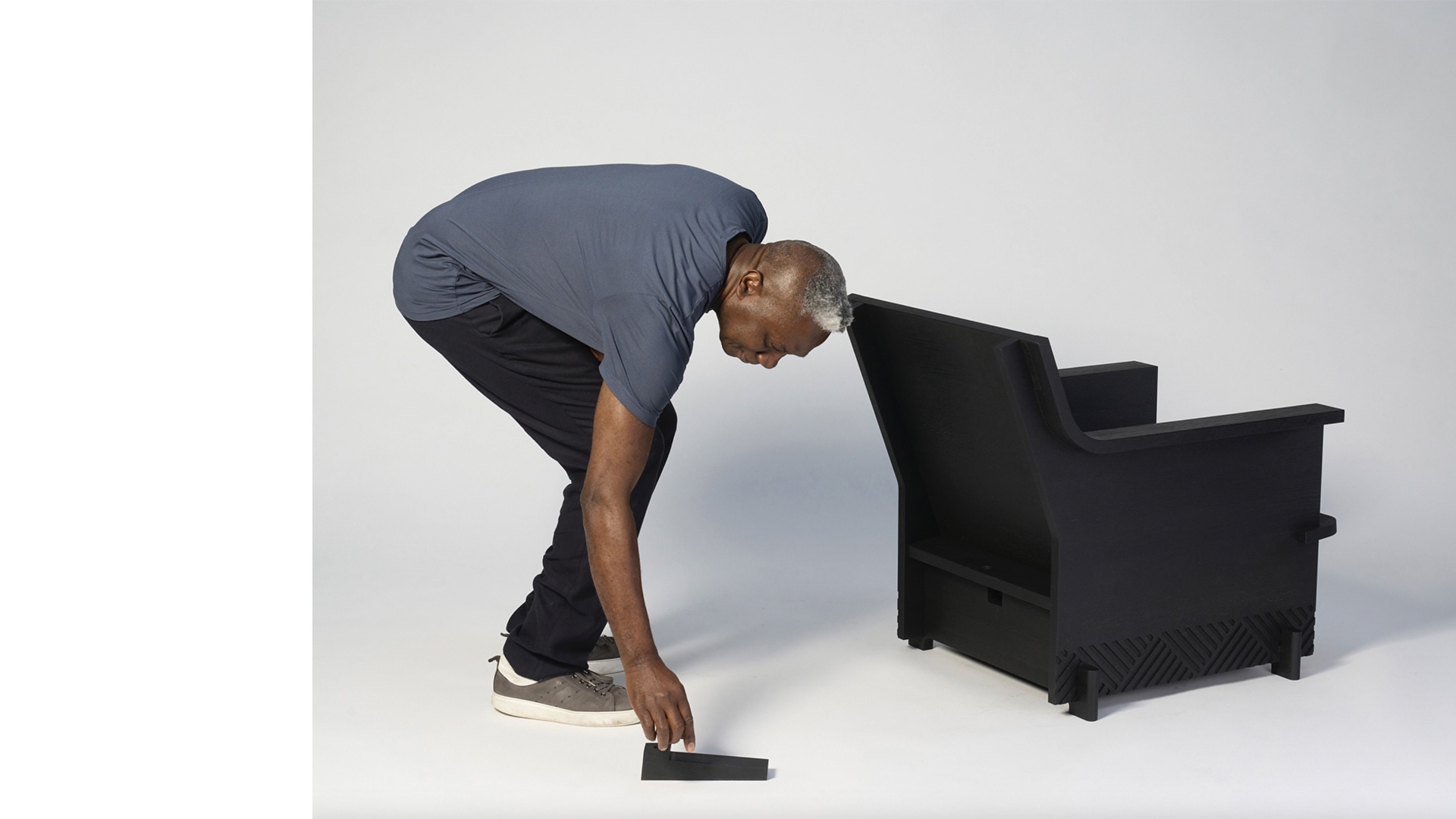 Without much effort, one piece is inserted into the other to form a cantilevered support on which to sit.