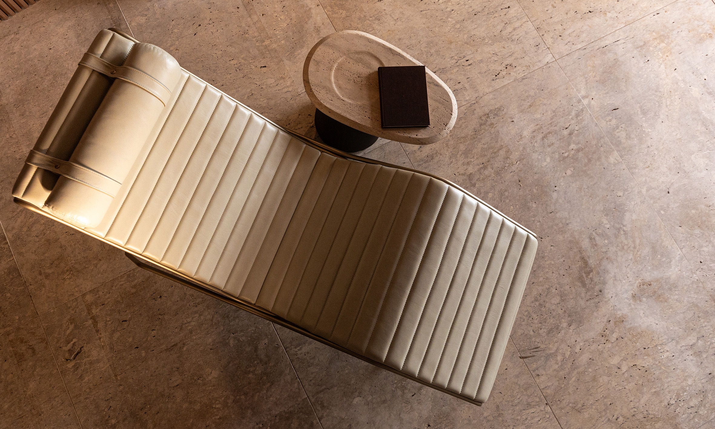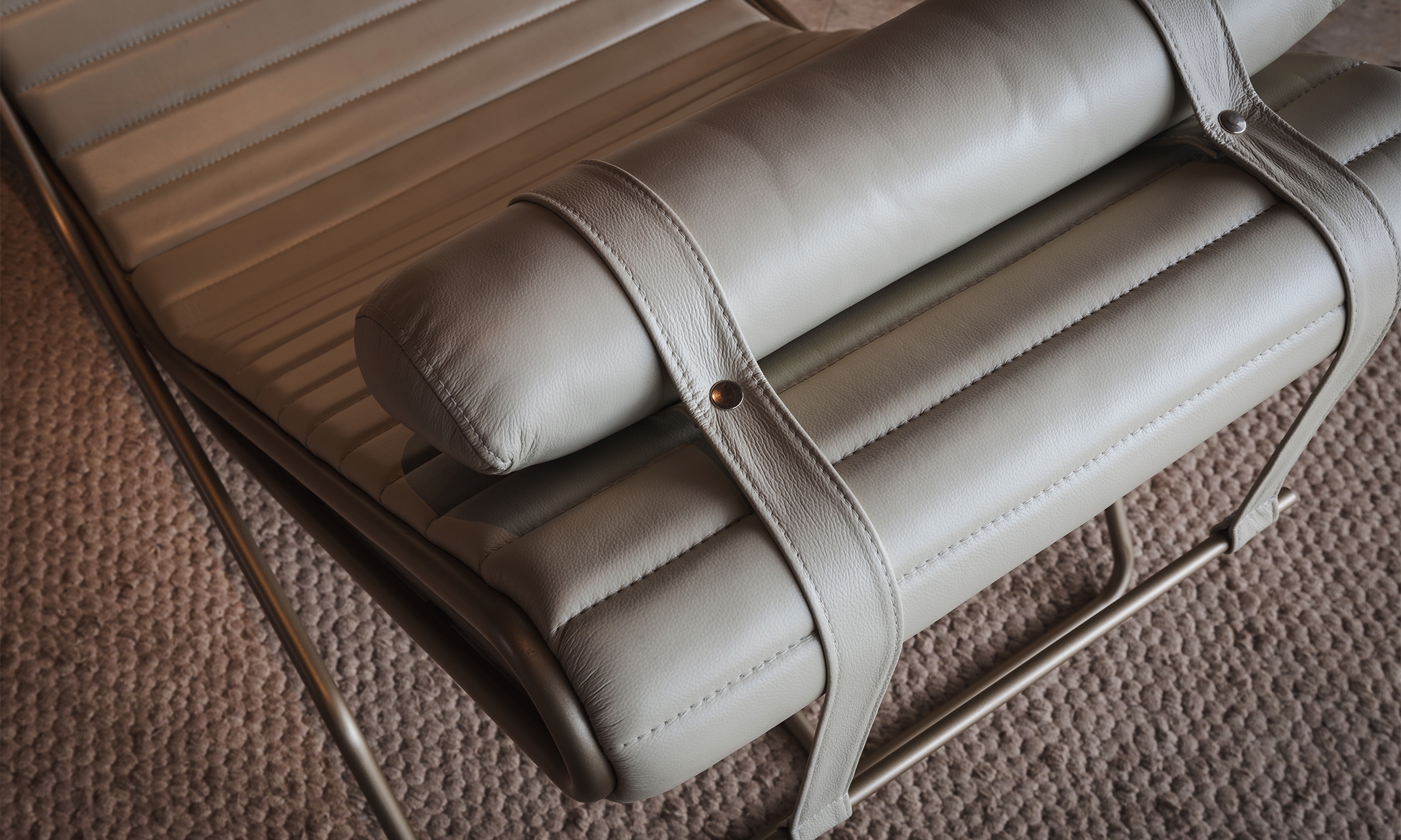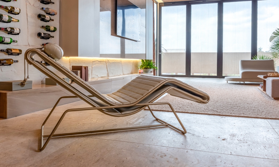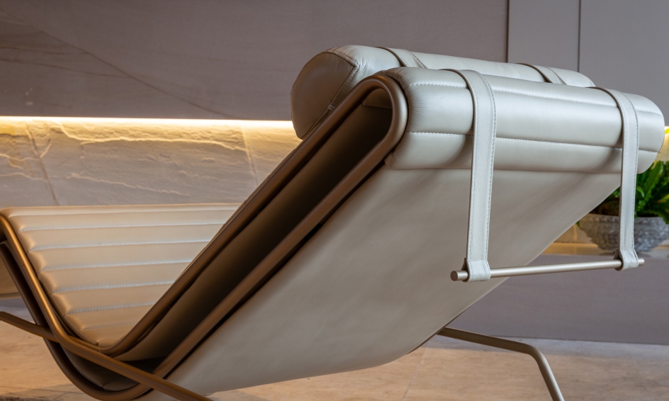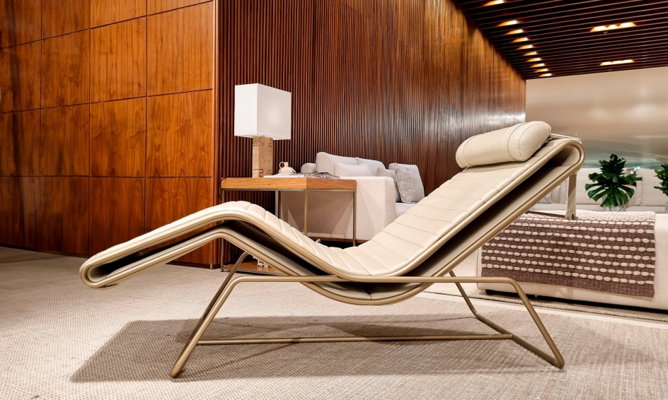 Aorist, a verb tense from ancient Greek that transcends the present, past, and future, inspires the Aor Chaise Longue, designed for moments of pause and reading, combining ergonomic and welcoming design. With a slim and multifunctional form, it serves as both a seat and a support for objects. Its cantilevered structure offers a sensation of floating, while the adjustable headrest ensures ergonomics for different body types. The Aor reflects Brazilian modernism in its curves, balancing function and expression, blending craftsmanship and technology.