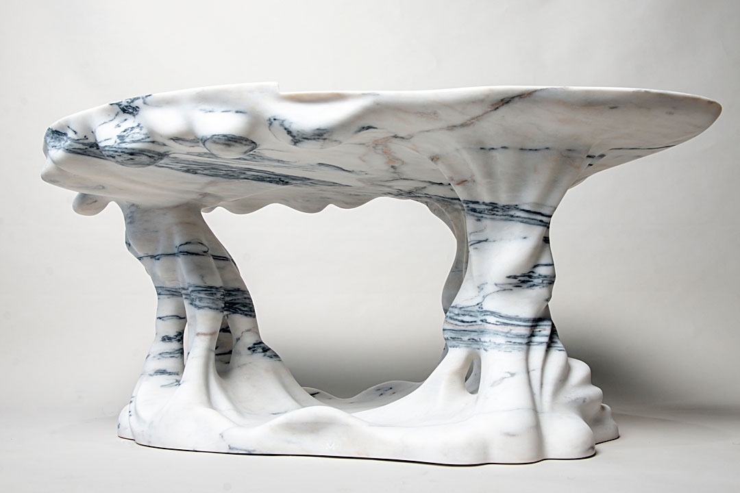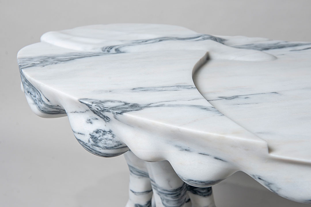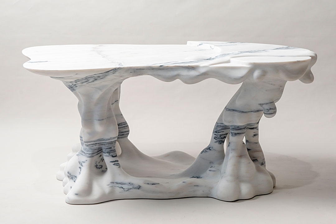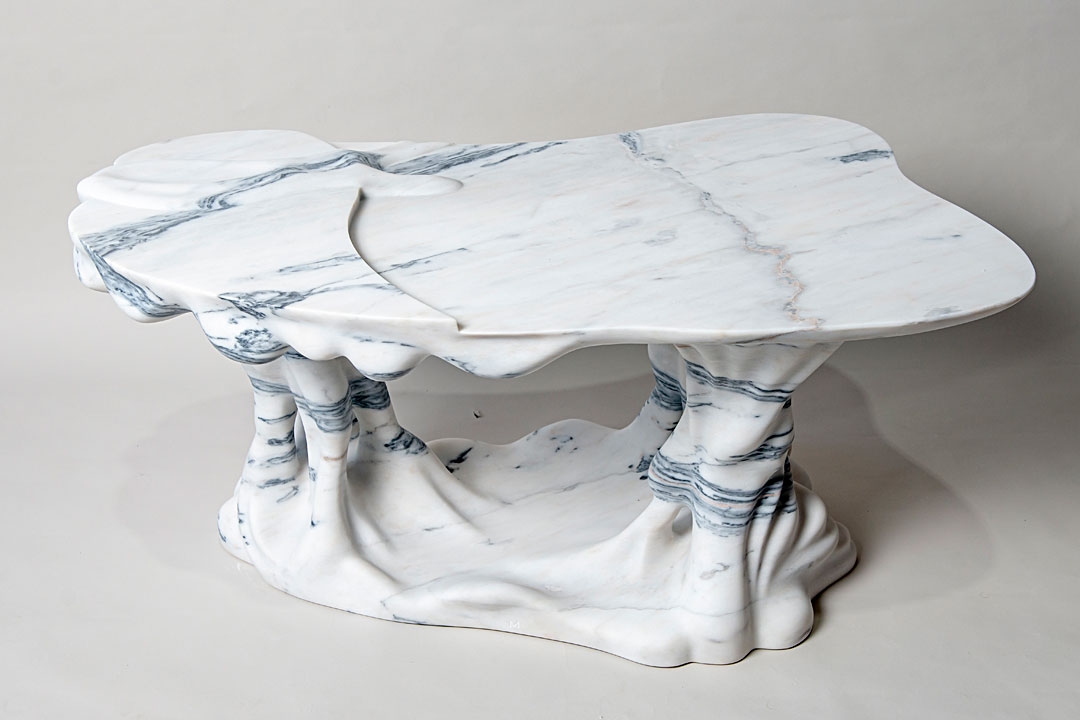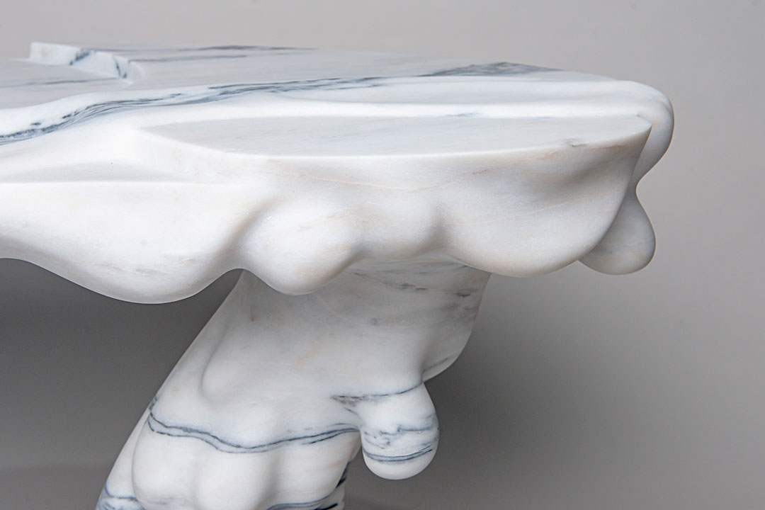 The Marsili Coffee Table pays homage to the lasting legacy of submarine volcanoes. Inspired by the instantaneous cooling of eruptive molten rock under water, these forms are based on the resulting twists. The Marsili Coffee Table with its organic fractal shapes appears with an elegant and dynamic playfulness for distinguished exclusivity. With fluid biomorphic forms and sinuous lines this creation blurs the boundaries between sculpture and furniture, suggesting an alternative versatile concept of space with a flair of mystery.