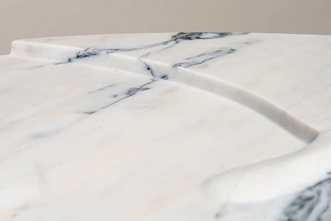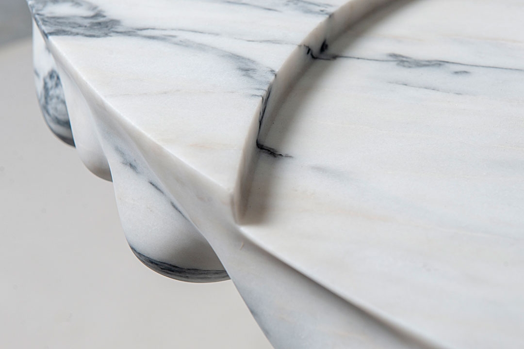 Handcrafted from a single block of marble with meticulous attention to details, this object stands as a manifesto of strength, aesthetic beauty and resilience.
