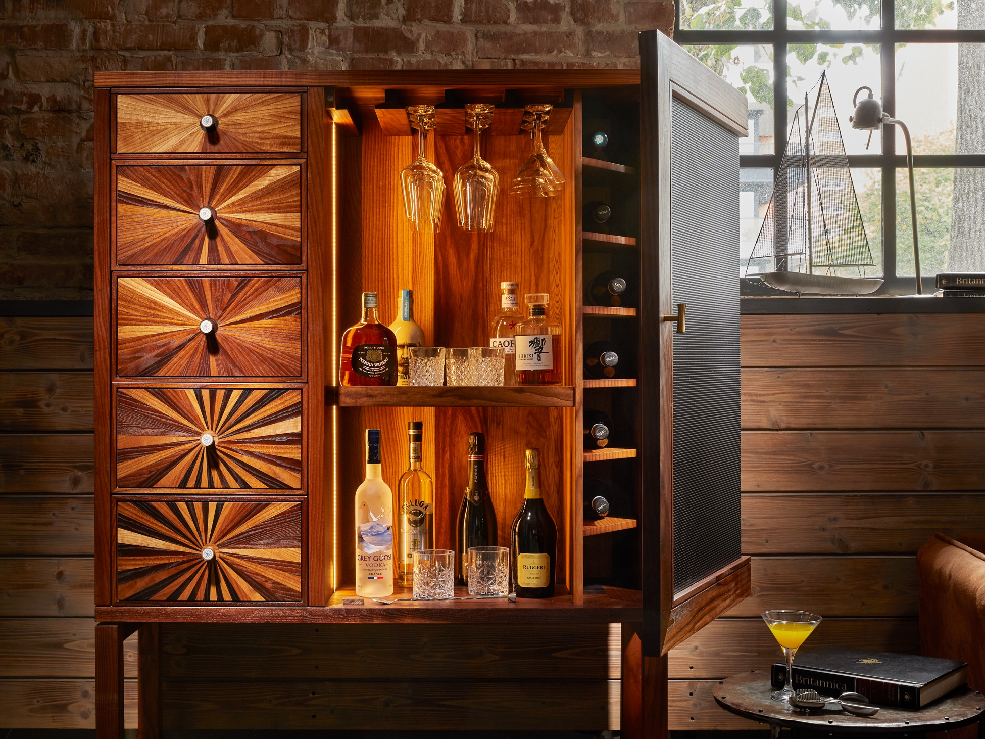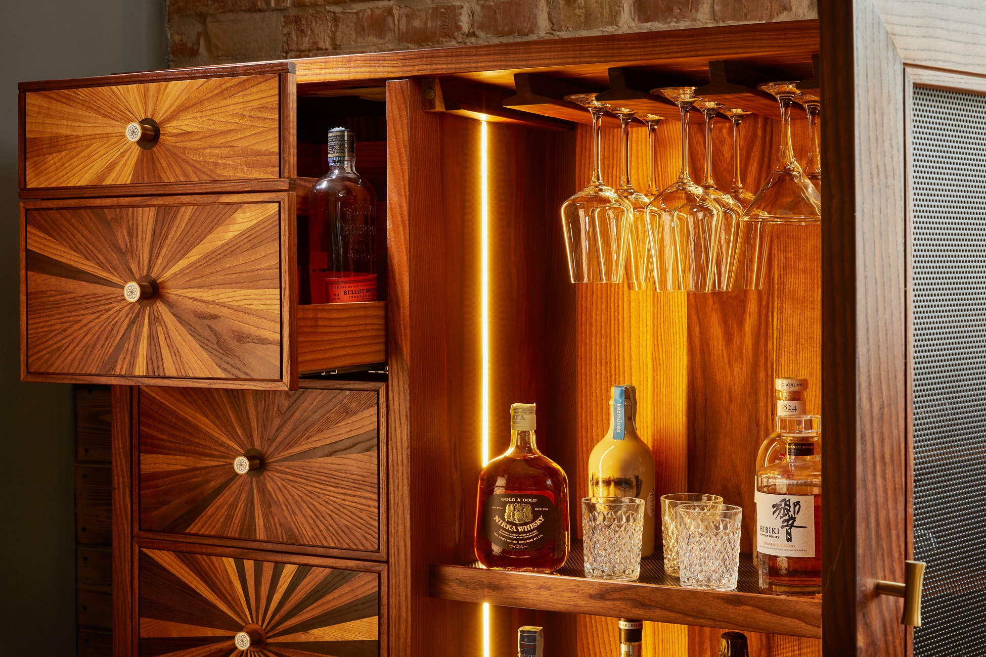 Our three unique bar cabinets - Touch, Hedonist, and Iris - are works of art with functionality in mind: they not only delight the eye, but also evoke emotions.
