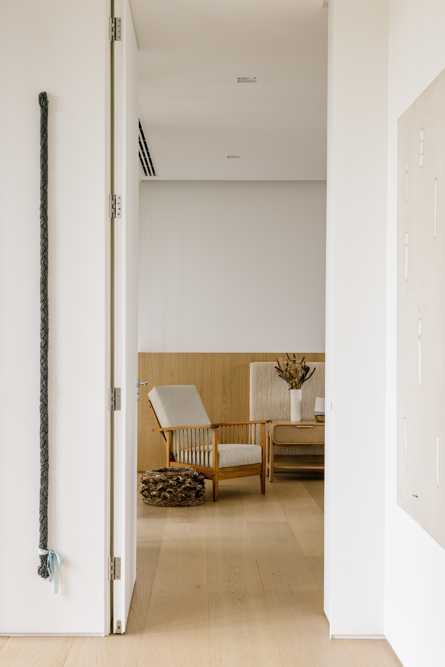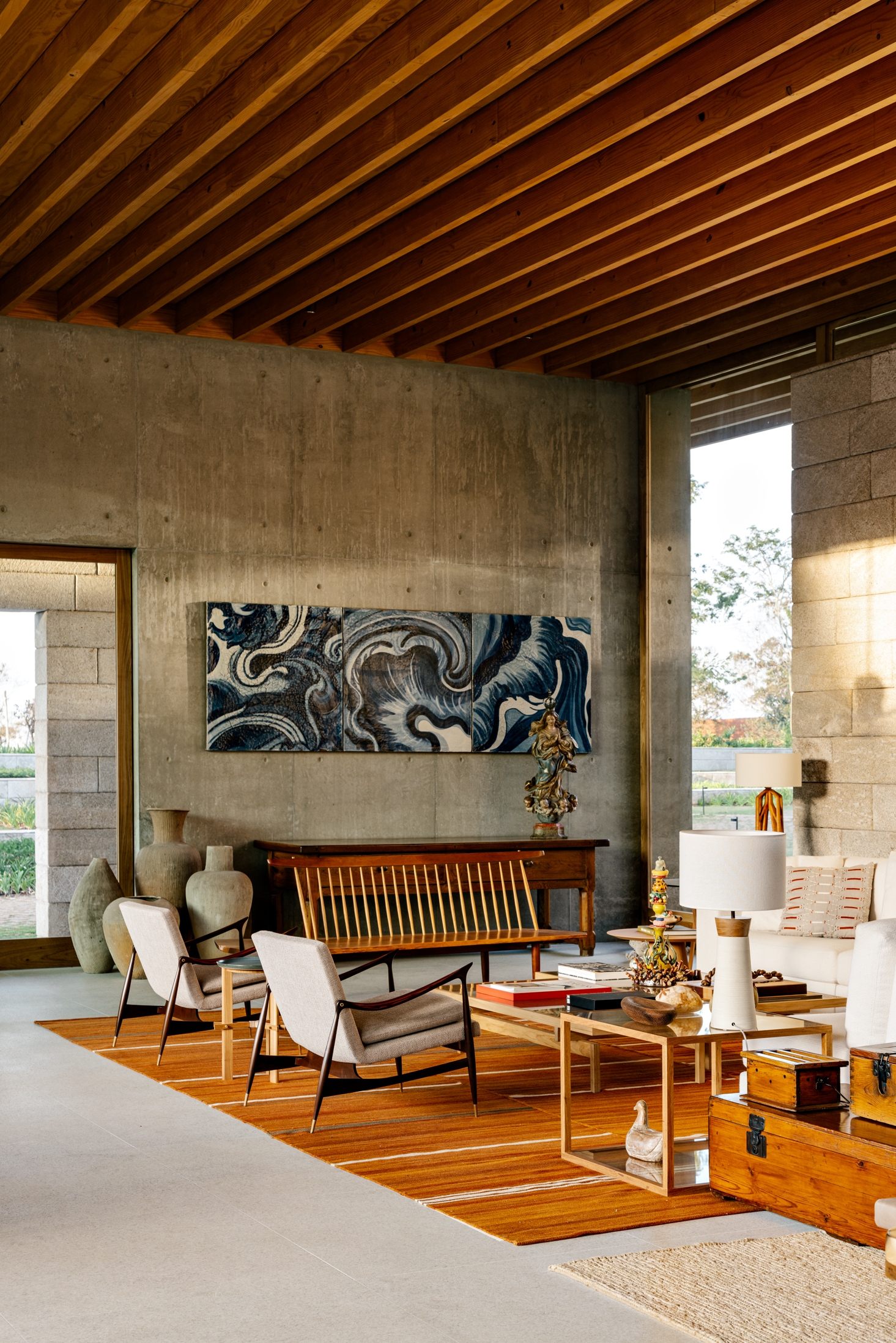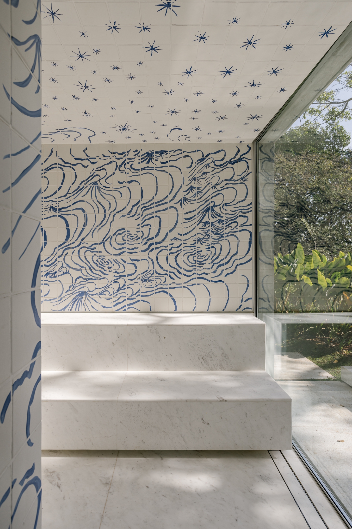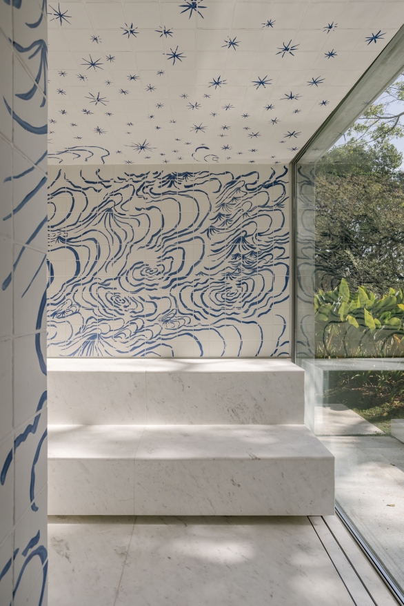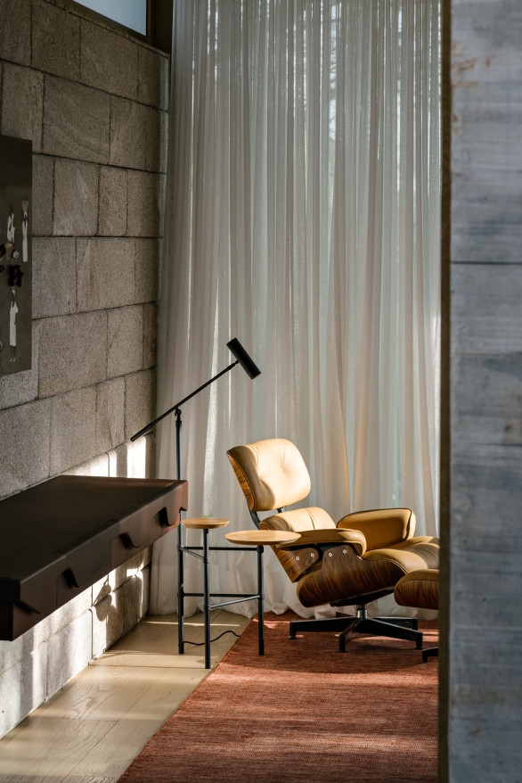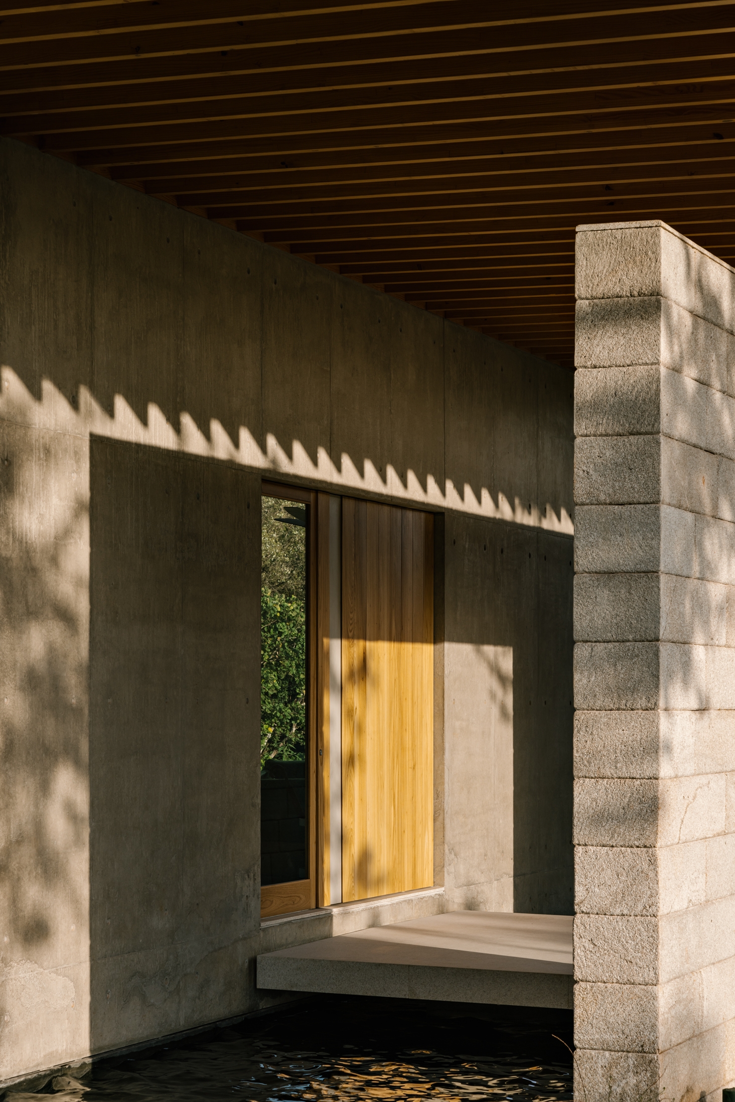 Adult and sculptural trees fill the central portion of this 14,000 m² plot in the countryside of São Paulo, Brazil. The slope takes on important proportions across the entire site. The trees and the unevenness form the basis of the occupation strategy. With an extensive program, the house spreads over the space, embracing the vegetation and creating diverse paths and landscapes. Straight lines run through the terrain, defining a central park. The slope adds volume to these lines, transforming them into stone gables that reveal the topography and support pavilions. As these gables enter the main body of the house, they provide continuity to the landscape design and help organize the spaces, along with exposed concrete planes. Wood, introduced as a major covering material, joins the stone and concrete, reinforcing gaps for passage or views. Besides the small pavilions on the ground, a large pavilion perches above the main block, defining the upper floor with rooms, creating an expressive overhang in the courtyard. The continuity between internal and external spaces emphasizes patios of various sizes, where large sculptures showcase the client’s appreciation for Brazilian art.