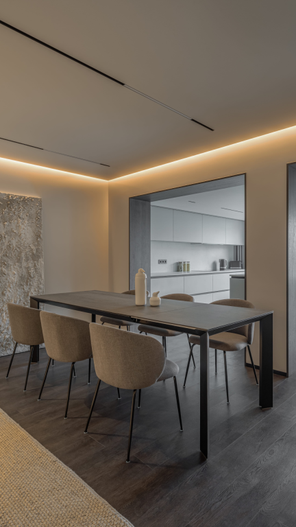 "Absolute minimalism" - this is how the chosen style was defined. The main emphasis was placed on natural materials and carefully thought-out high-quality lighting.