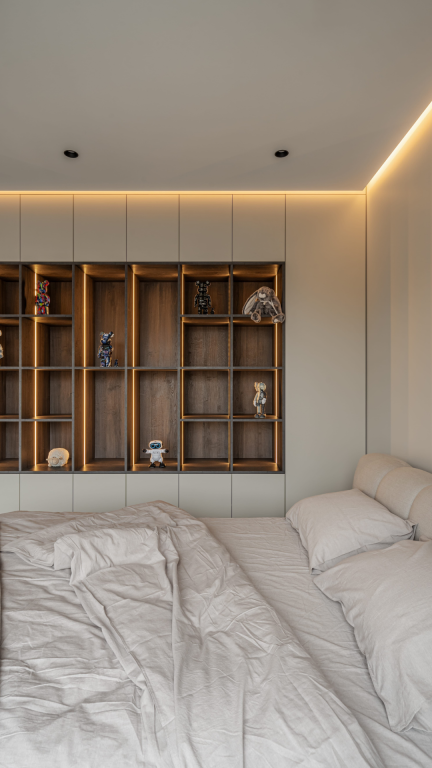 The owner of the studio created a minimalist yet functional living space for herself, gently calling it a "comfortable den." Its individualism is in calm shades and a separate space for each member of the family and guests.