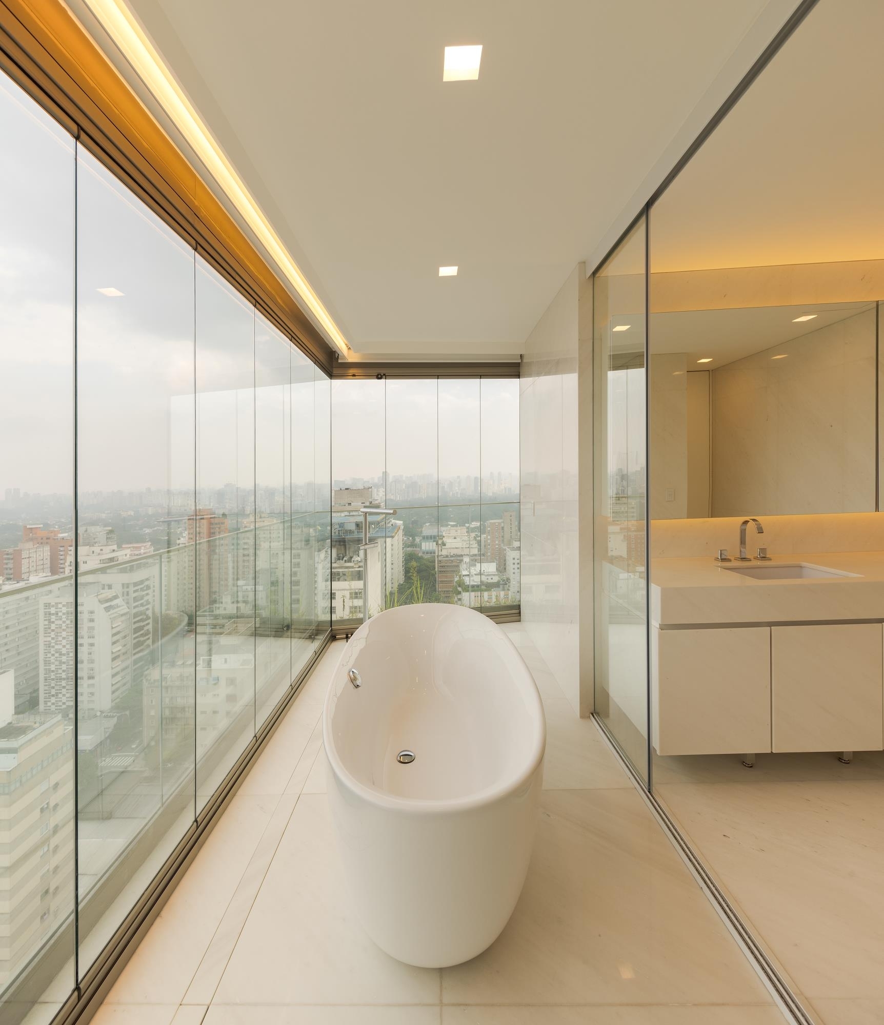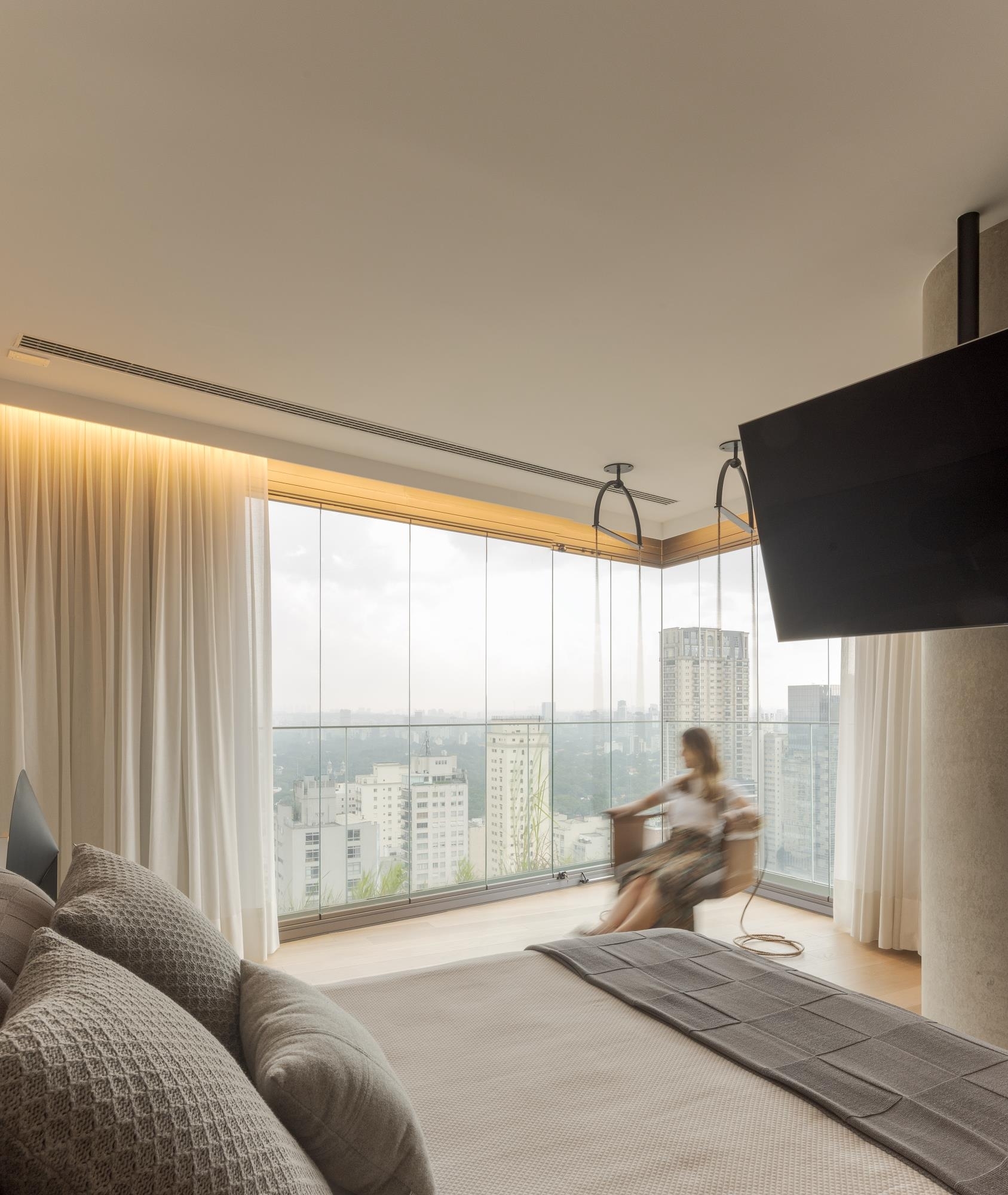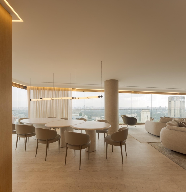 This 520m² apartment, located in São Paulo, was designed with a focus on circulation and the integration of wide, interconnected spaces. The minimalist decor, featuring iconic design pieces from Brazil and abroad, highlights the privileged views: on one side, Jardim Europa, and on the other, the bustling Avenida Paulista. Home to a couple of entrepreneurs and their three children (two girls, aged 26 and 22, and a boy, aged 20), the space is ideal for family and social gatherings, especially on the large balcony, which connects to the living and dining areas.