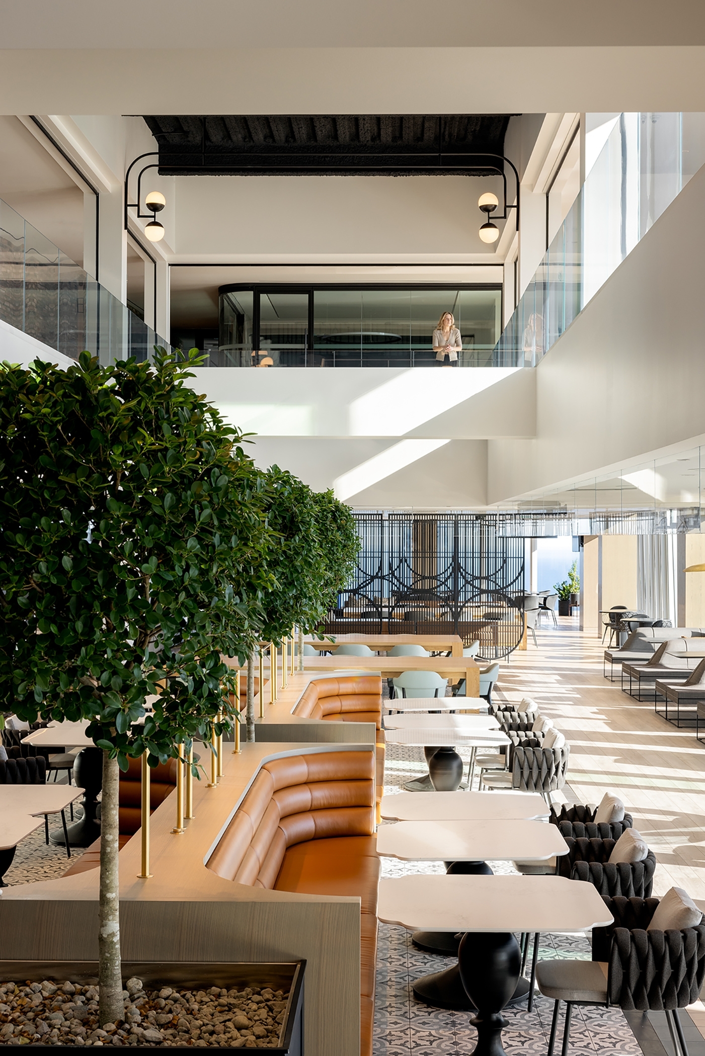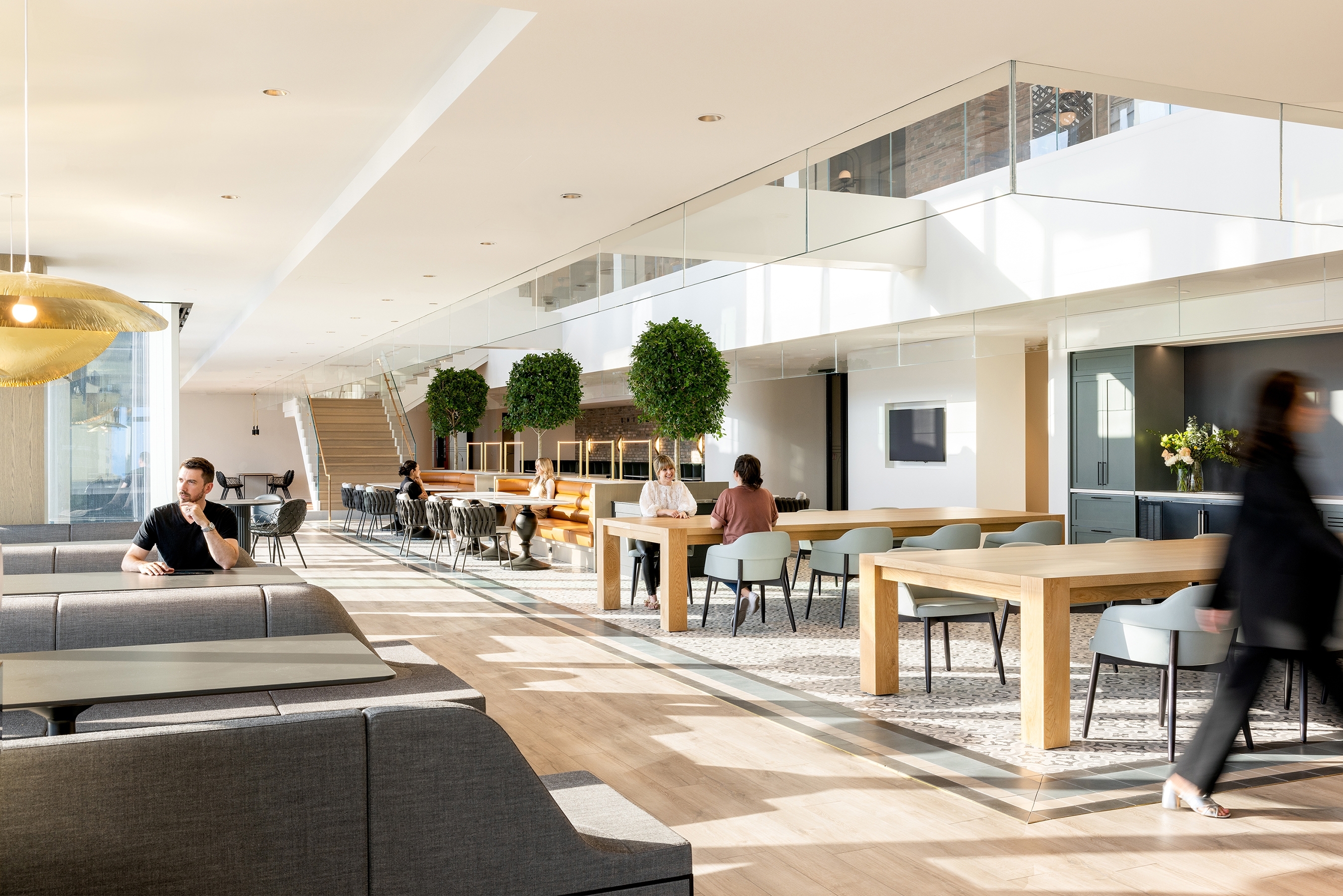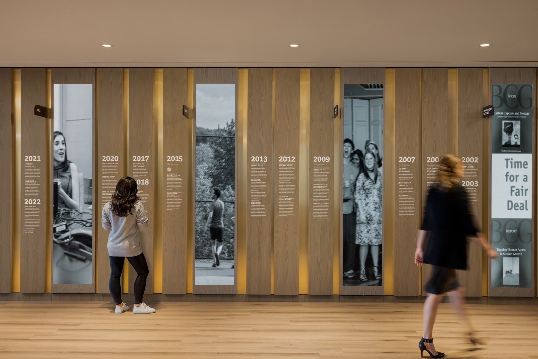 Boston Consulting Group is a fast-paced environment where staff work in teams, together with clients, to build sustainable competitive advantage, transform their businesses, and achieve positive societal change. The team designed a reimagined destination office that is an inclusive, bespoke, high-performing workplace encouraging the brand's best work. This office allows people to come together to innovate, increase productivity, and foster a positive work culture.