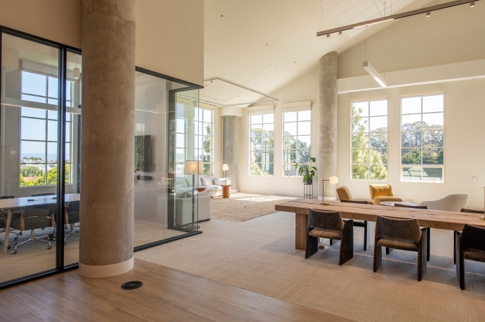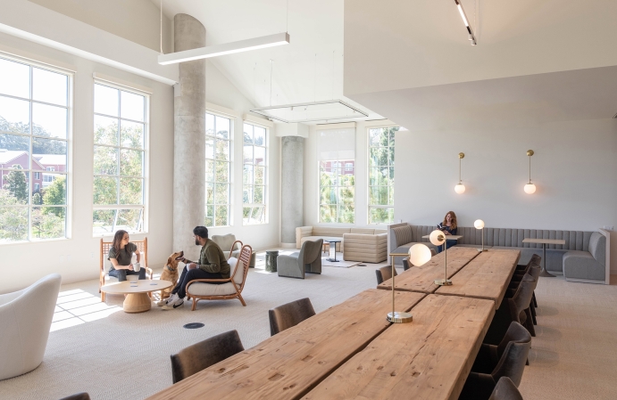 It’s unique to have a family-run tech company, and they wanted to lean into this with an office that is overwhelmingly warm, inviting, and reminiscent of their family home. In 2021, Annie Hockey fell in love with a space in San Francisco’s Presidio, where the interior is filled with light on even the gloomiest day.