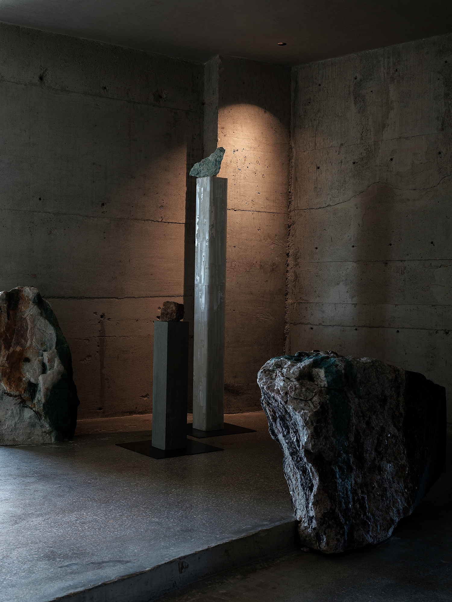 The space uses marble stone and concrete as the sole primary materials, Utilizing the malleability of stone, raw marble blocks are cut into different sizes and proportions, integrating various techniques into architecture and interior spaces to create a space that is purely defined by stone.