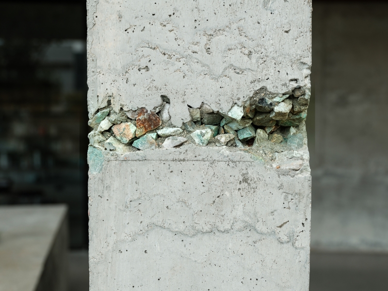 Based on the advantages of being close to the raw material storage yard, the project reduced transportation costs by sourcing materials on-site. The recycling and reuse of scrap marble stone materials were utilized as concrete aggregates for casting walls and diamond grinding concrete floors. This promotes sustainable development in construction and advocates for environmentally sustainable design concepts.