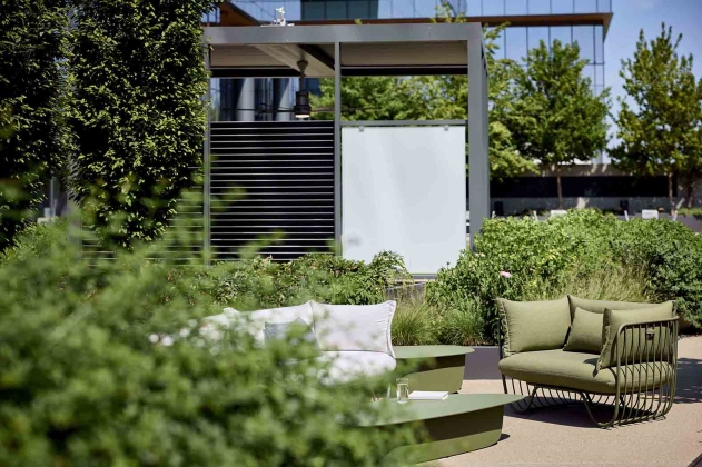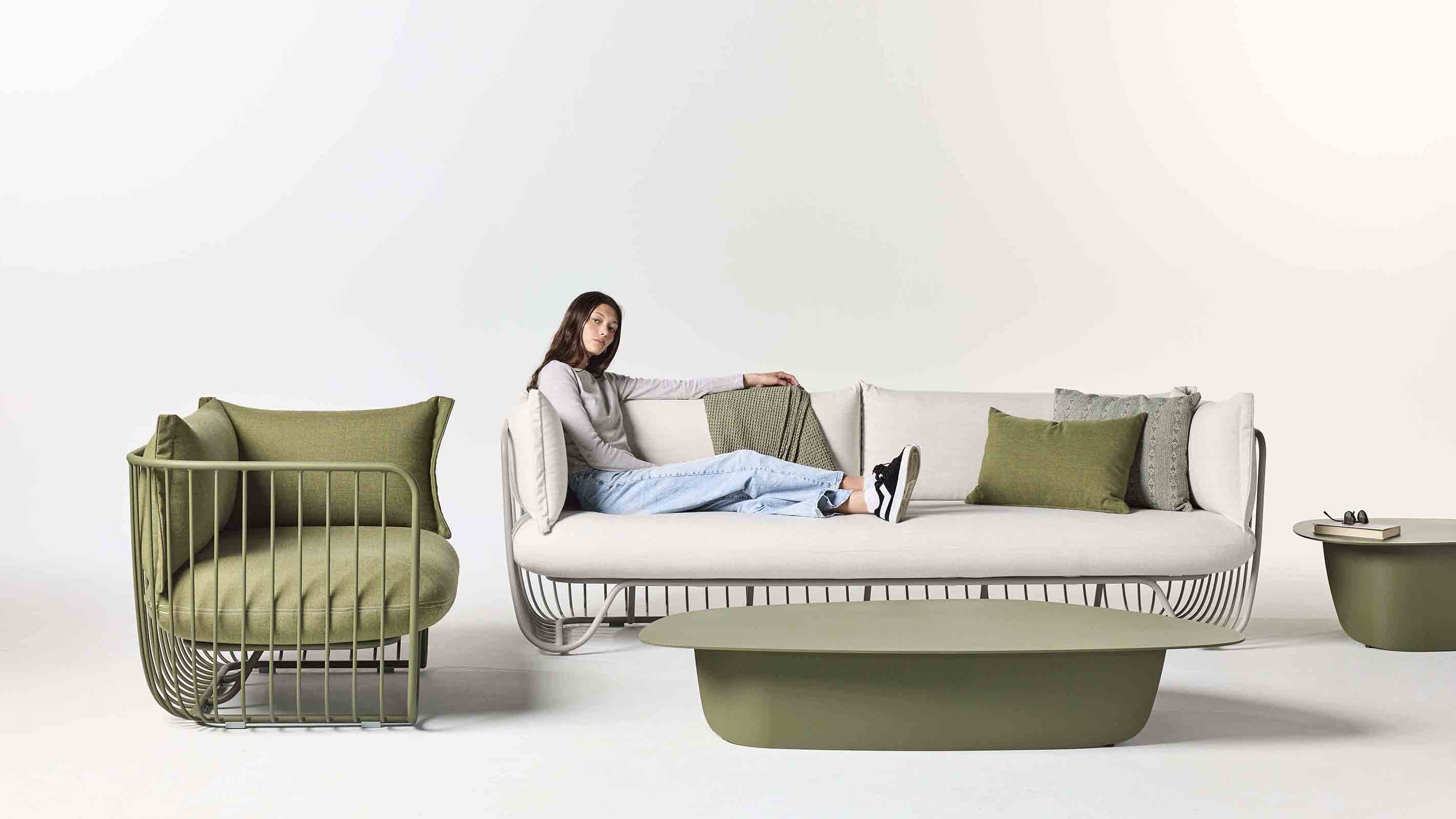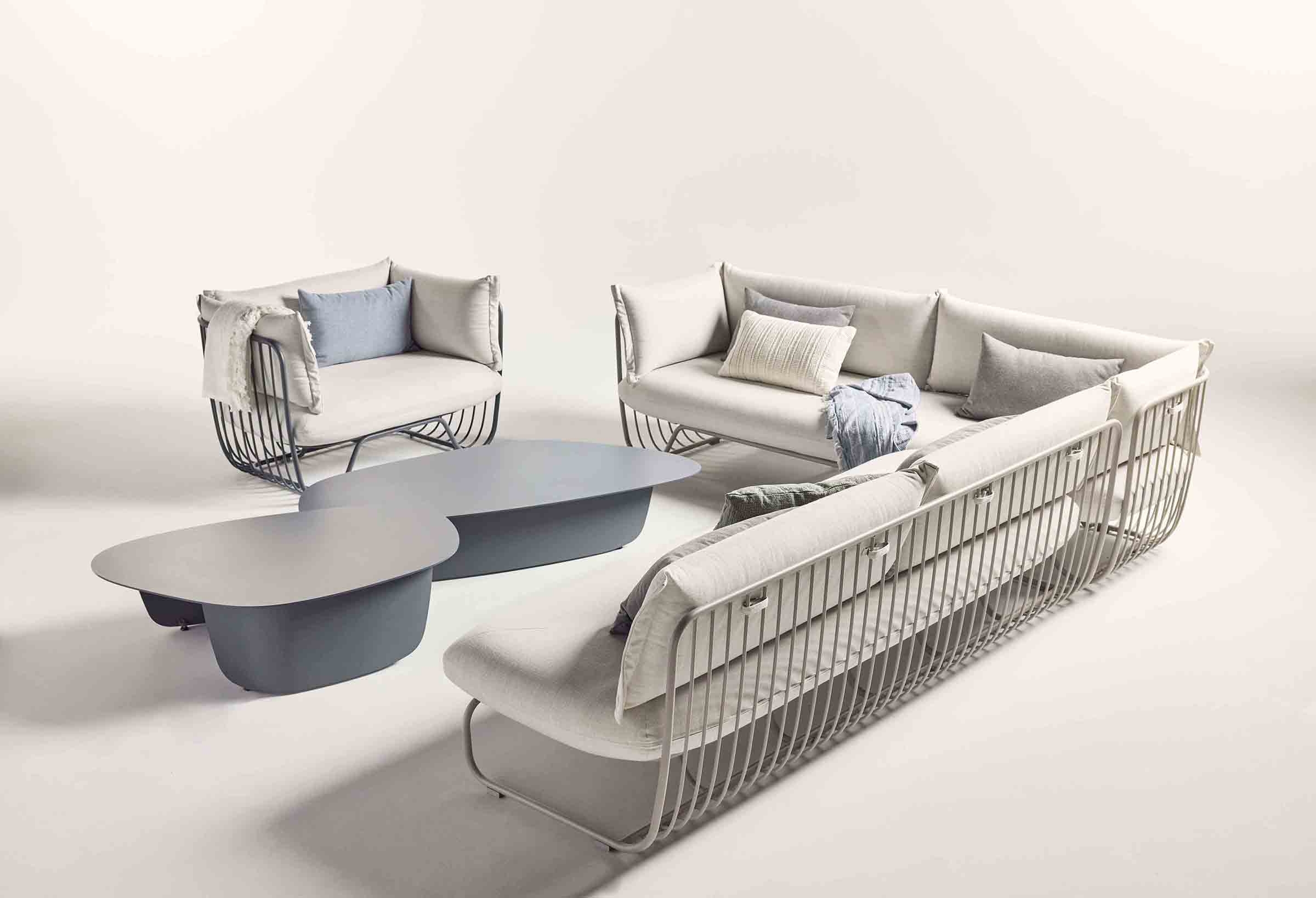Crafted to bring the elegance and comfort of interior spaces outside, the Monterey line by Landscape Forms offers singular sophistication in the cushioned outdoor seating category. Including a club chair, a sofa and left, right and U-shaped sectionals, the line is soft in its forms and soft in its seating surfaces, featuring welded and powdercoated metal rod frames that cradle its plush yet durable upholstered seats and backs. With gently rounded corners and continuous curvature, Monterey communicates exceptional outdoor comfort in a refined, high-design idiom.