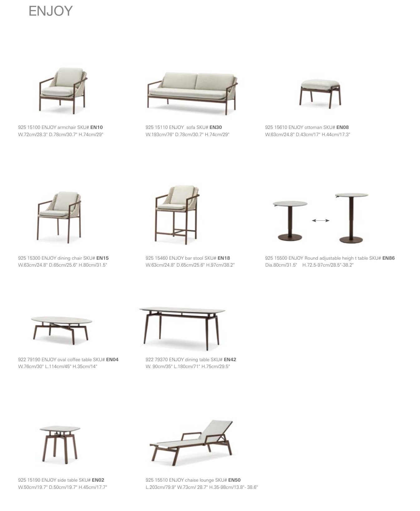 In conclusion, ENJOY brings to the market a refined, luxurious and timeless collection that could be enjoyed as well indoor and outdoor.
