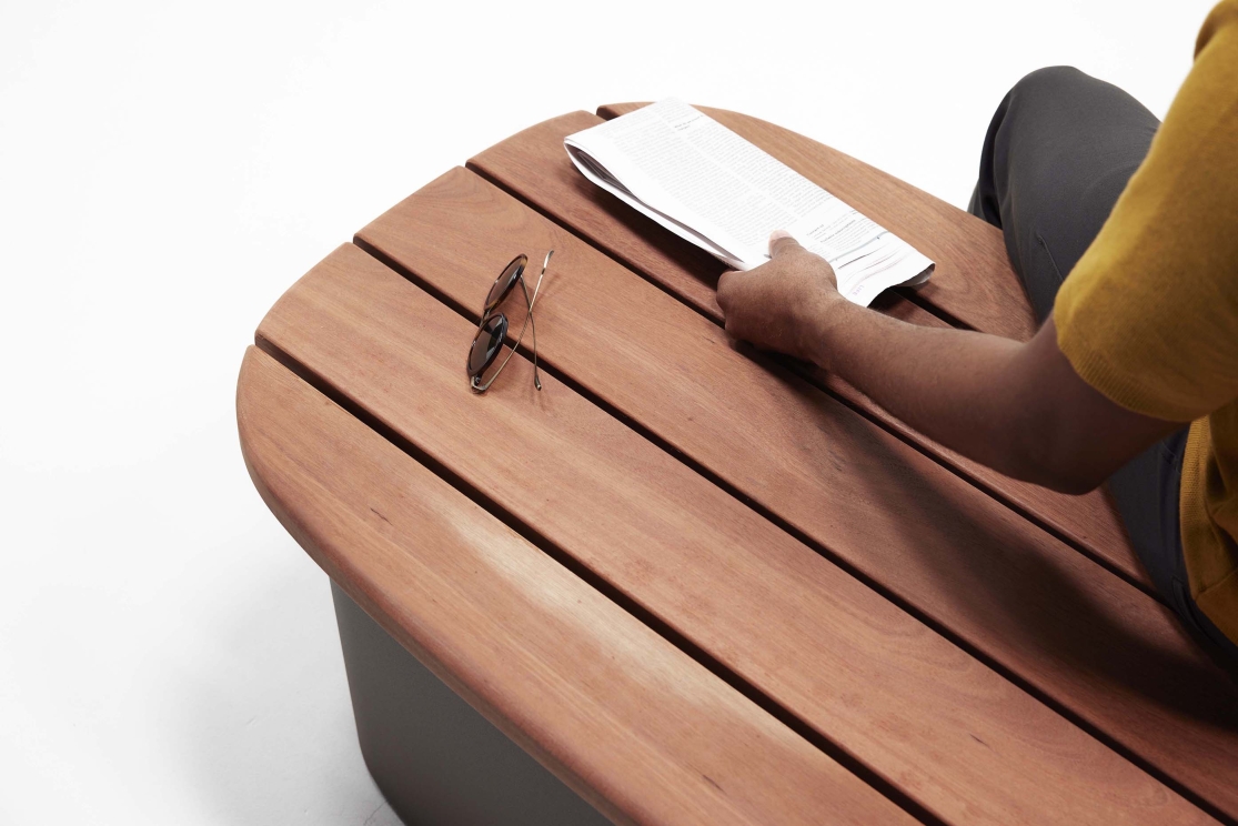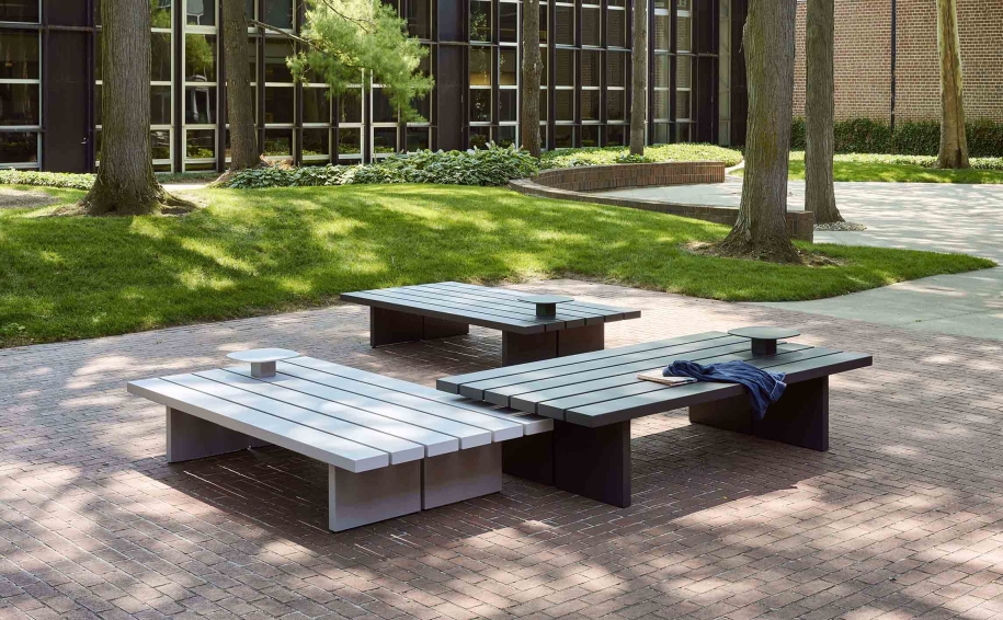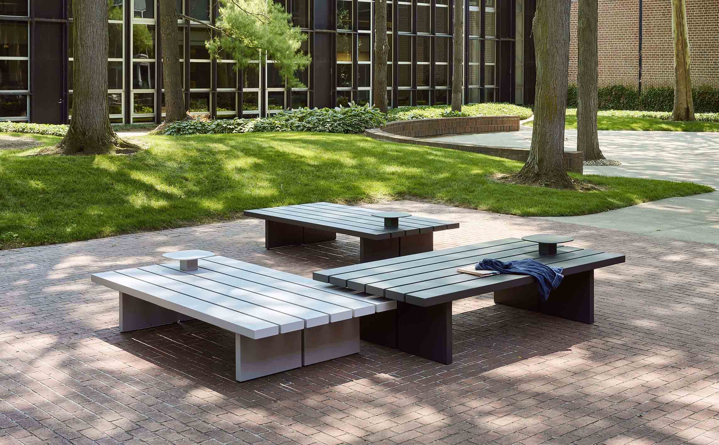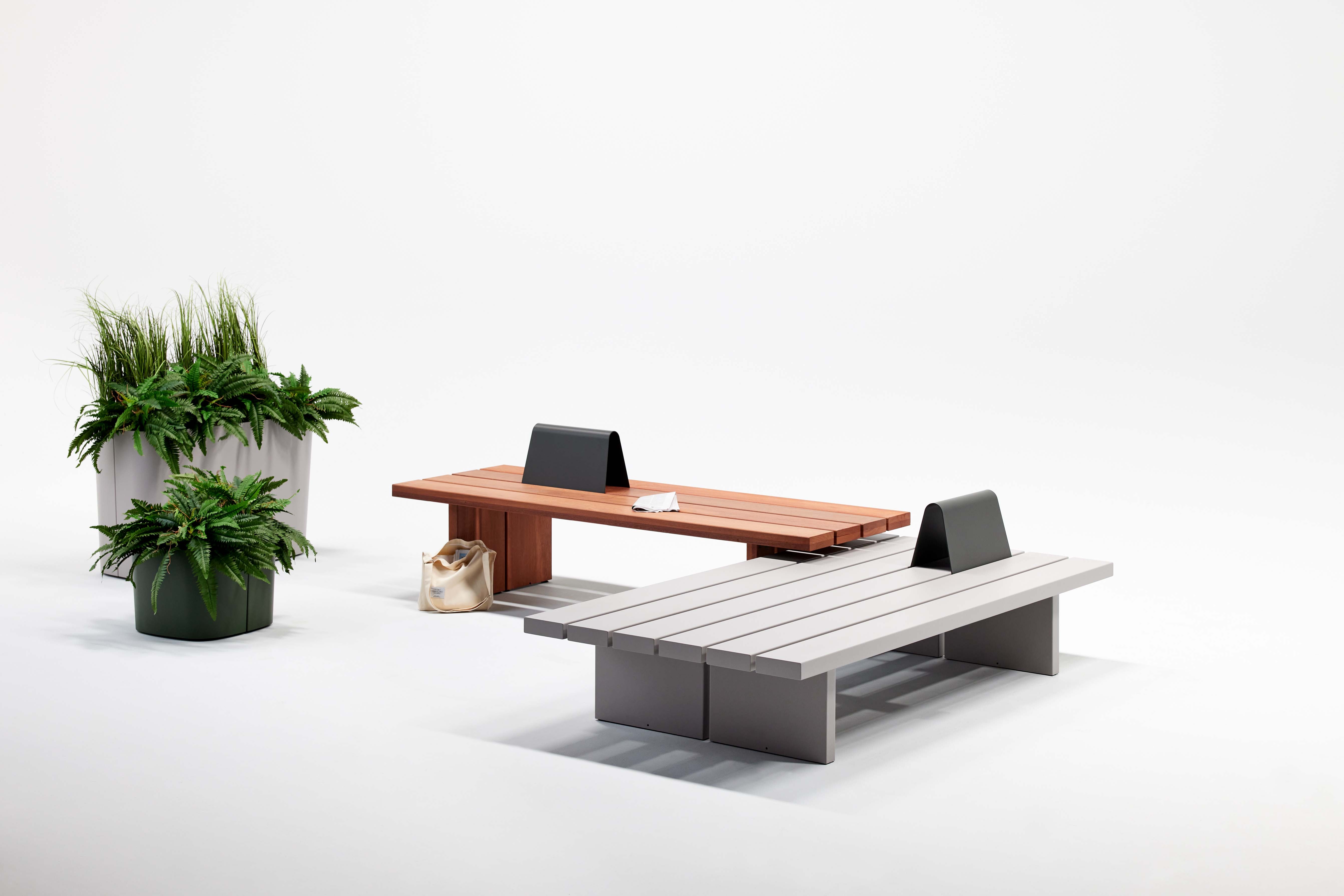 Plains are large-format beams and platforms that vary in height and width to create multifaceted settings that speak to their users’ individuality. Activities that might feel counterintuitive on a ‘conventional’ bench feel natural on Plains. Optional metal backs and attaching side tables lend installations additional degrees of detail and specificity.