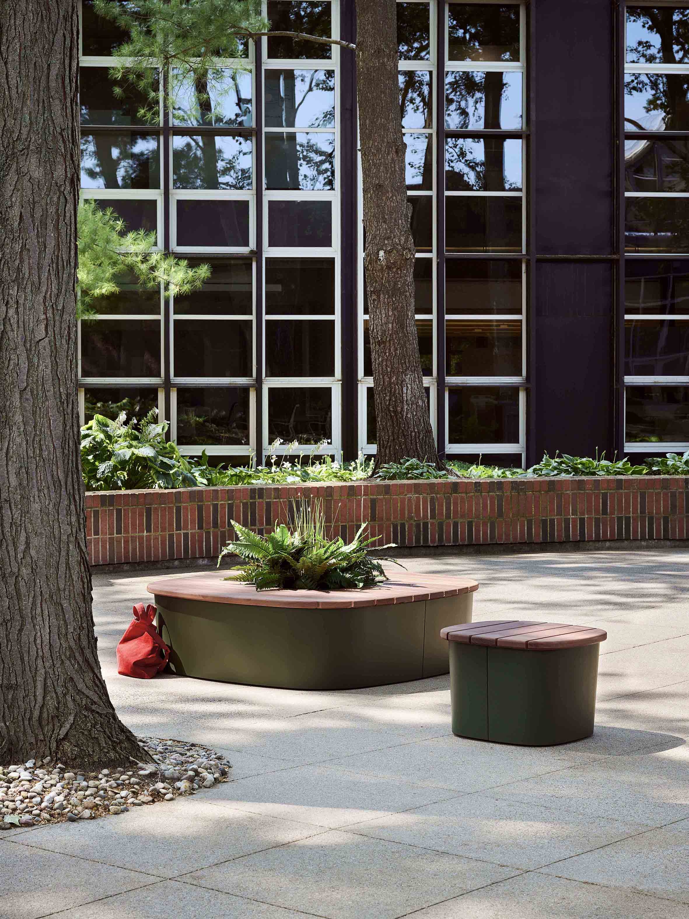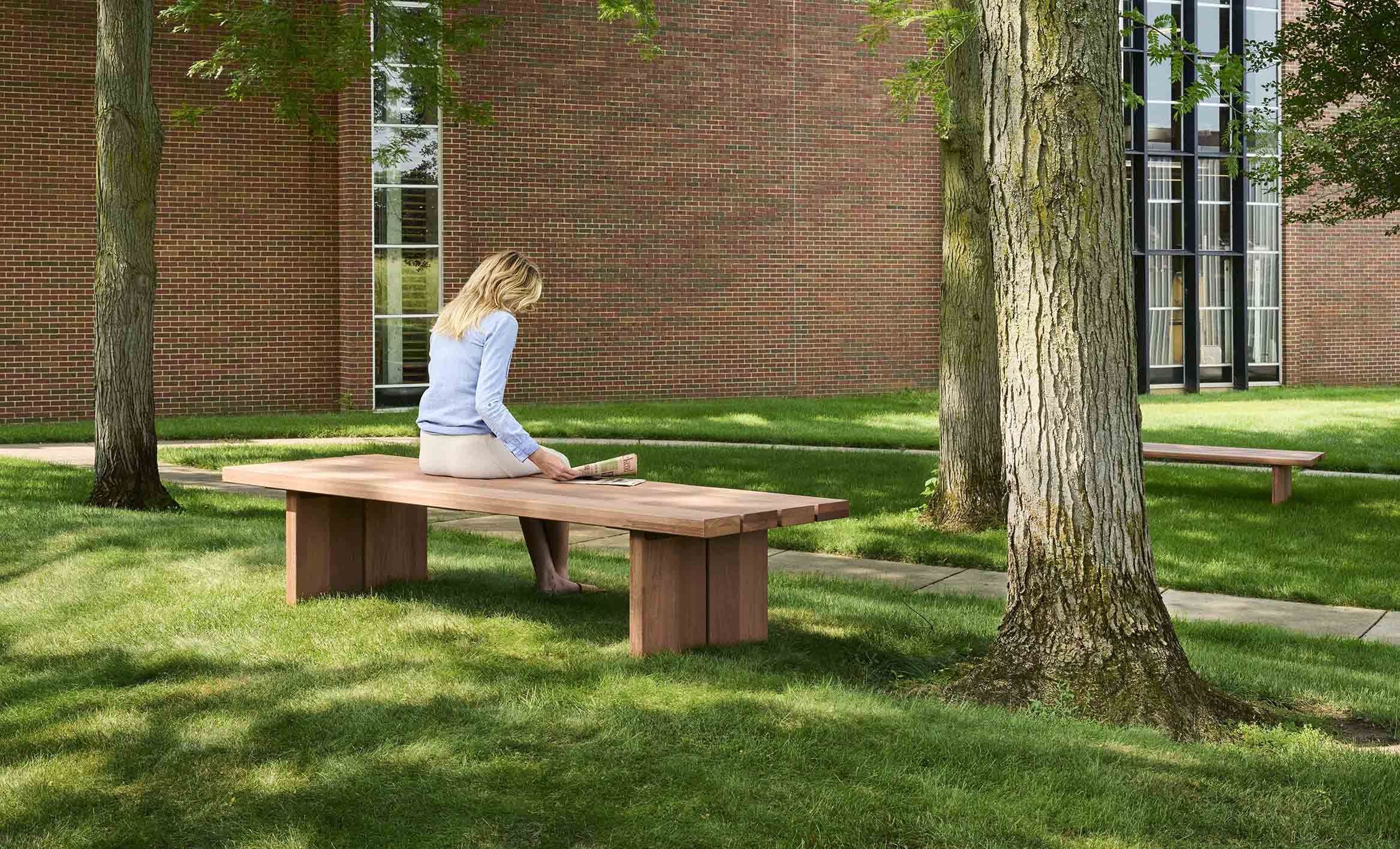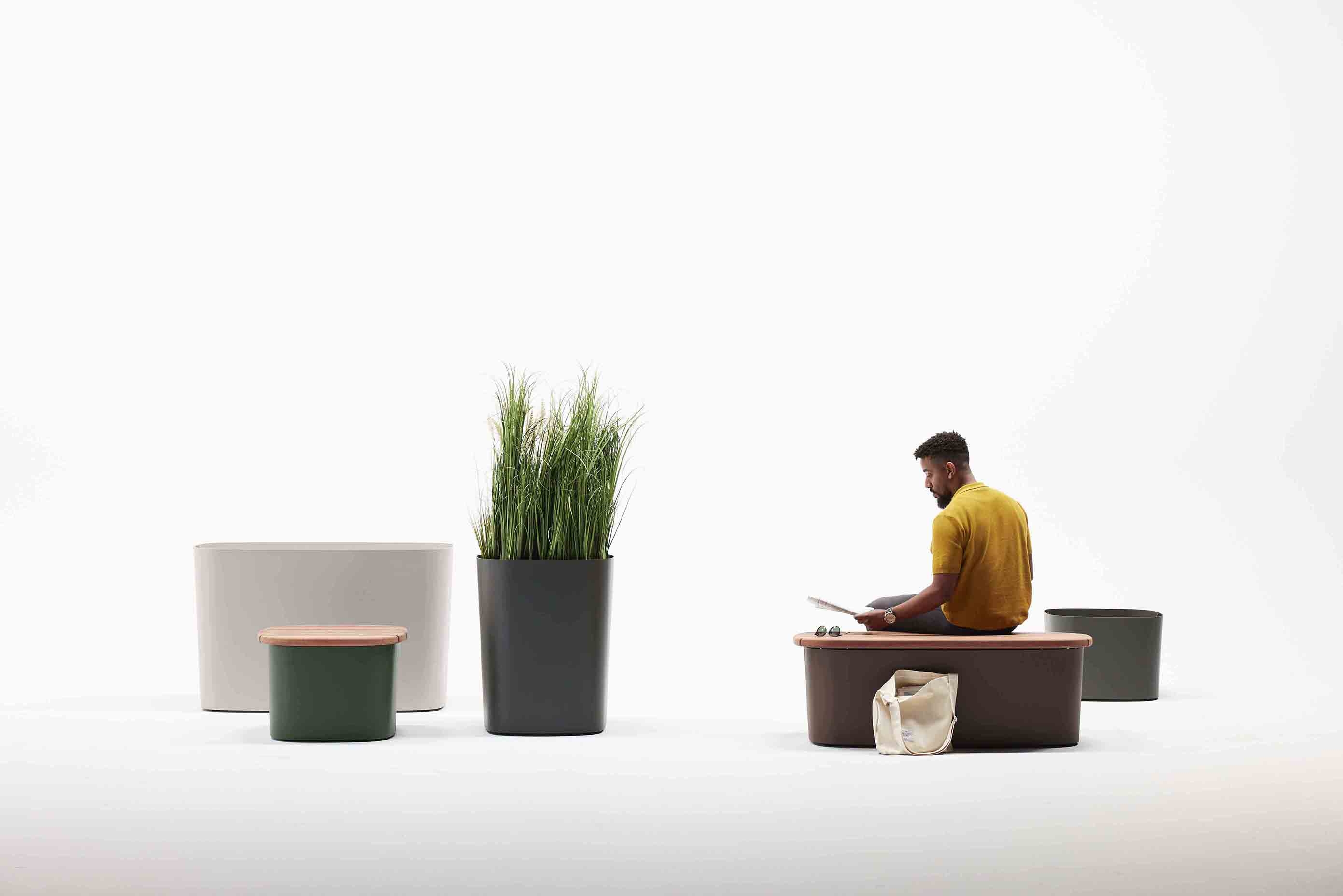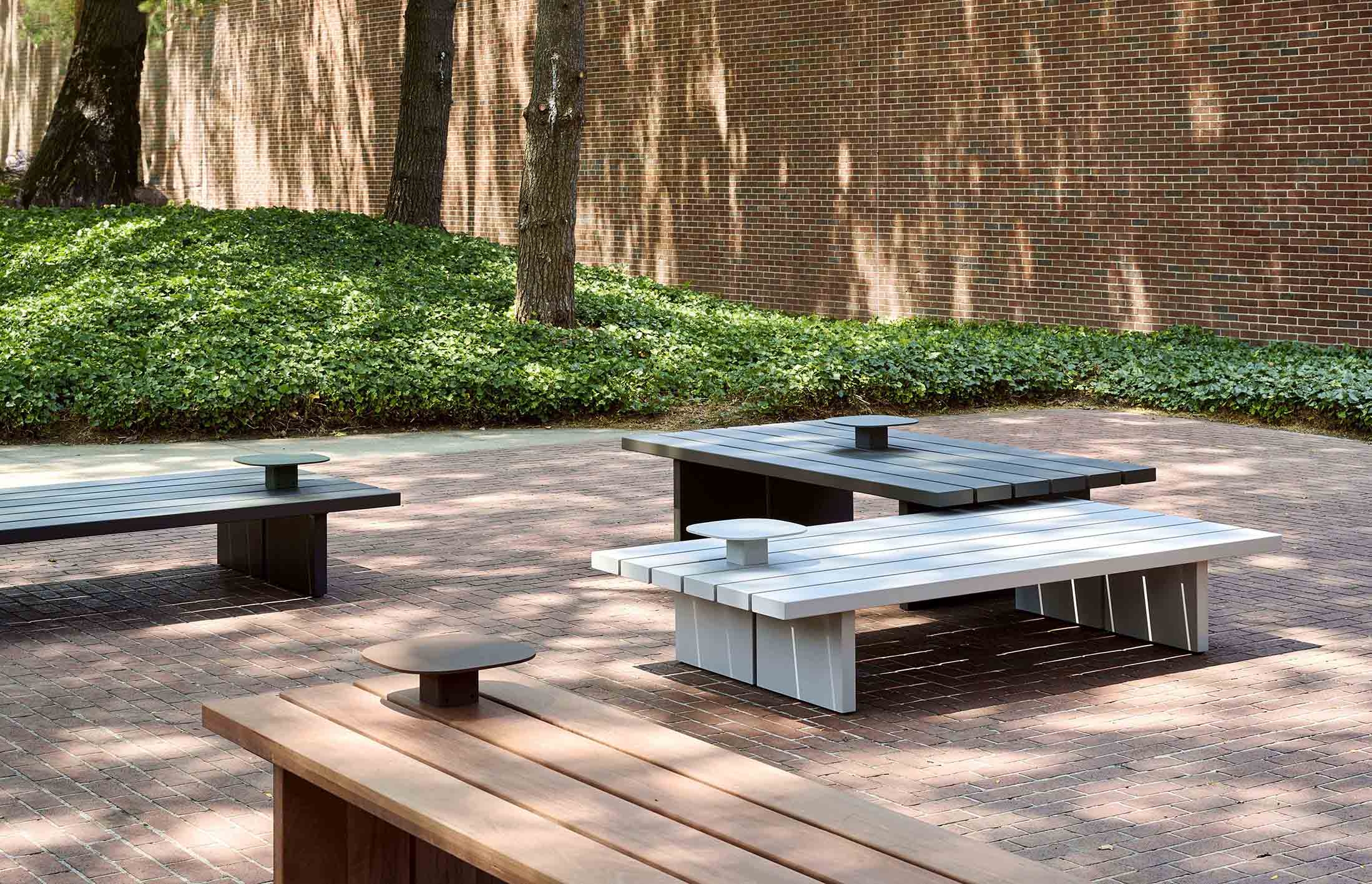 Plains are large-format beams and platforms that vary in height and width to create multifaceted settings that speak to their users’ individuality. Activities that might feel counterintuitive on a ‘conventional’ bench feel natural on Plains. Optional metal backs and attaching side tables lend installations additional degrees of detail and specificity.