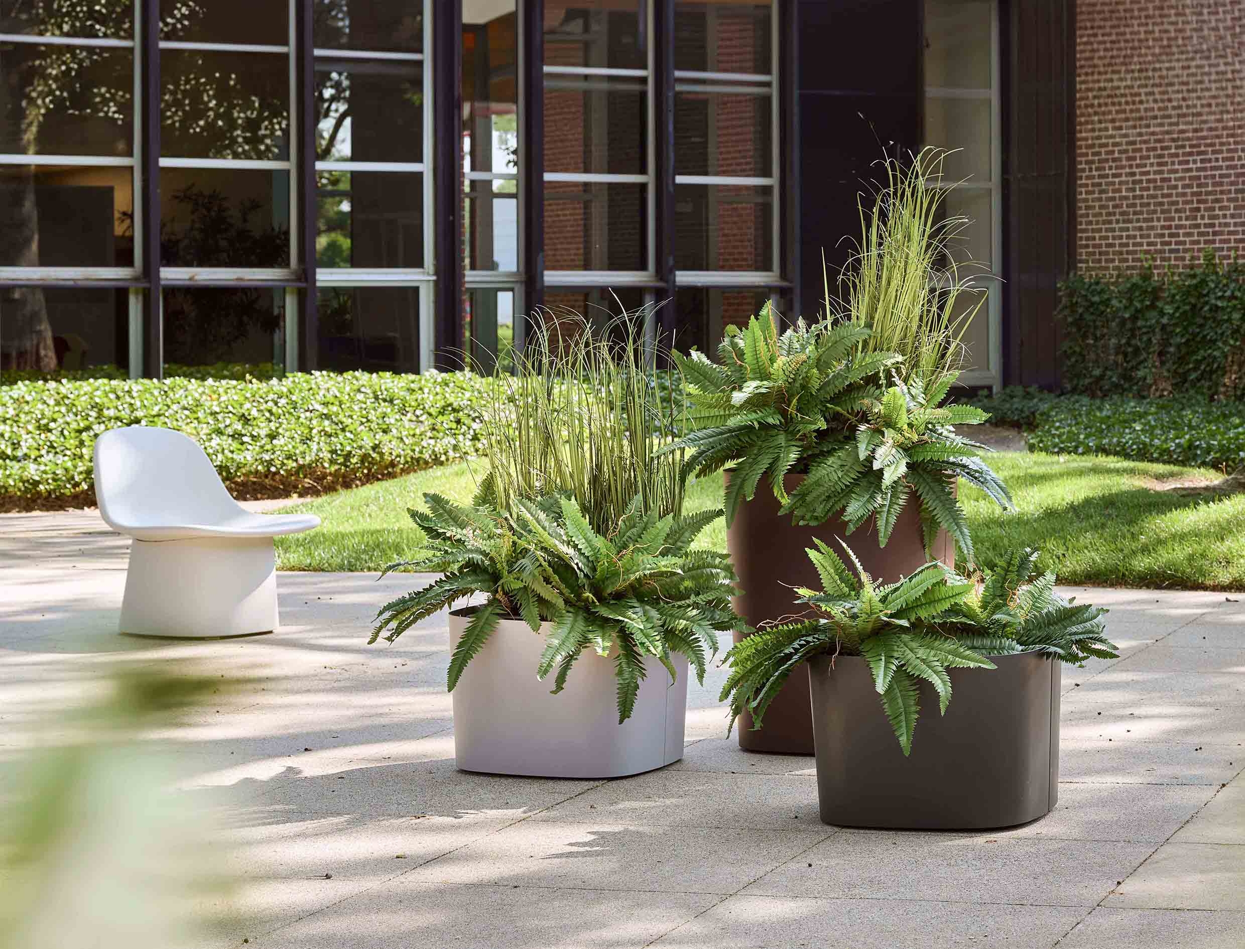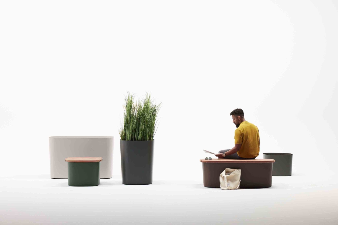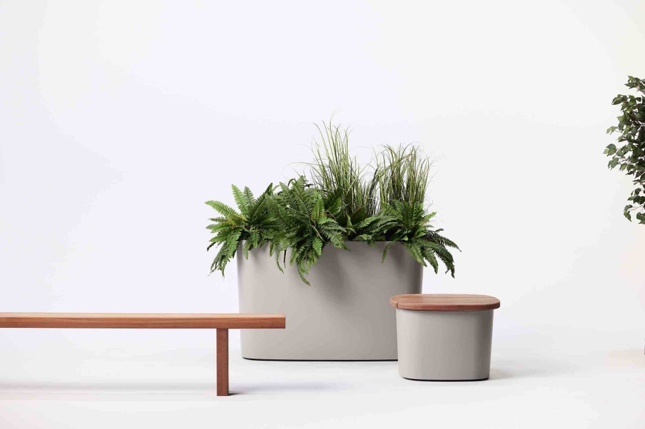 Pods seats and planters are designed to be grouped together in tiered clusters of respite space and greenery. Pods modules give users the opportunity to determine how they interact with space and with one another. From welcoming communal zones, to areas for single seating, to quick touch-down points, Pods groupings bring social and aesthetic depth to the landscape.