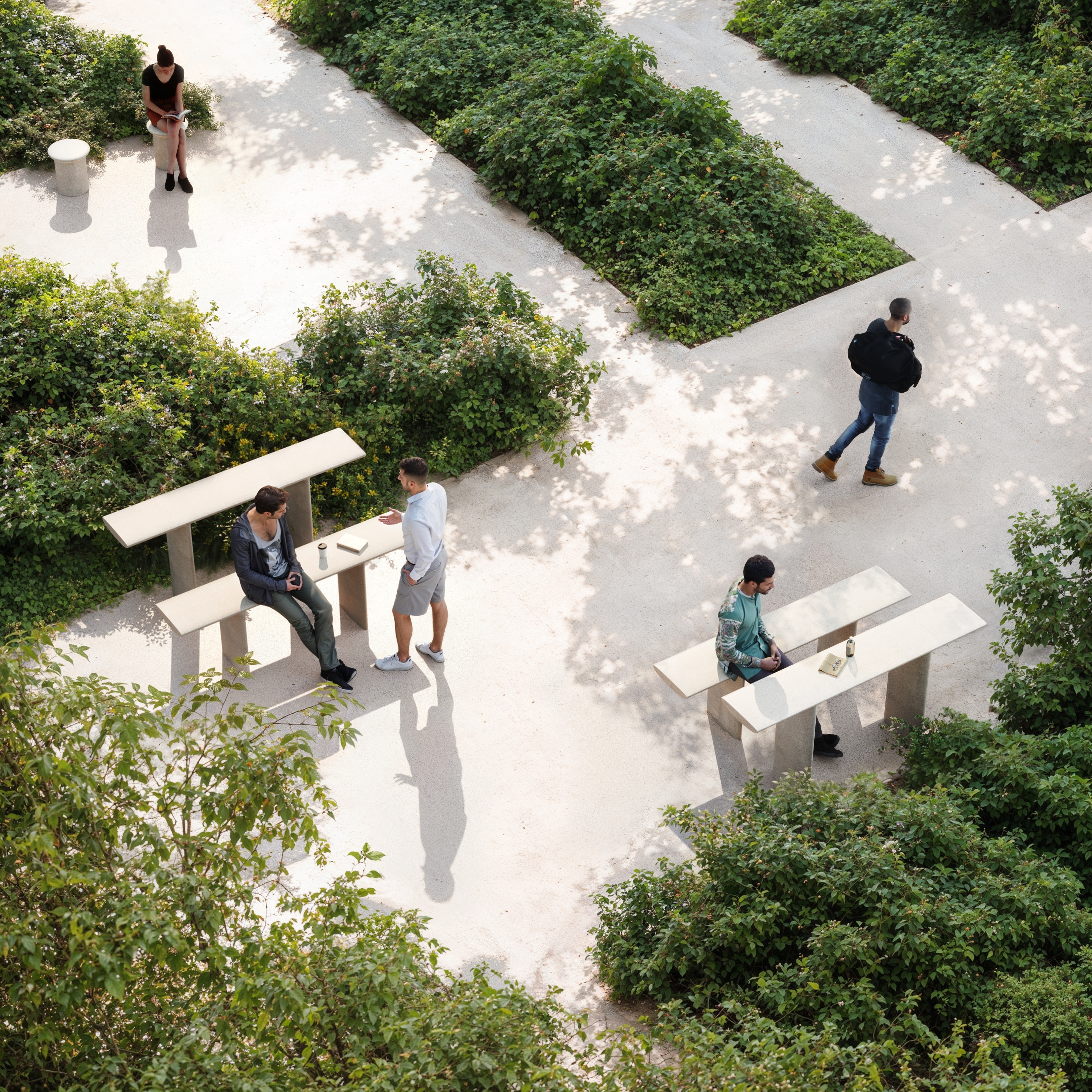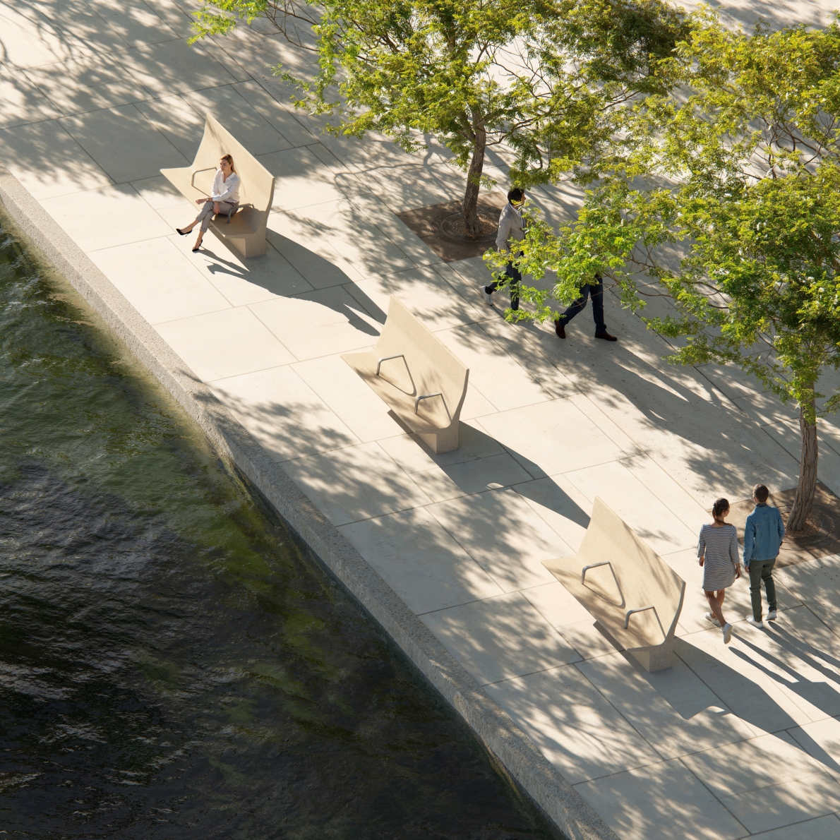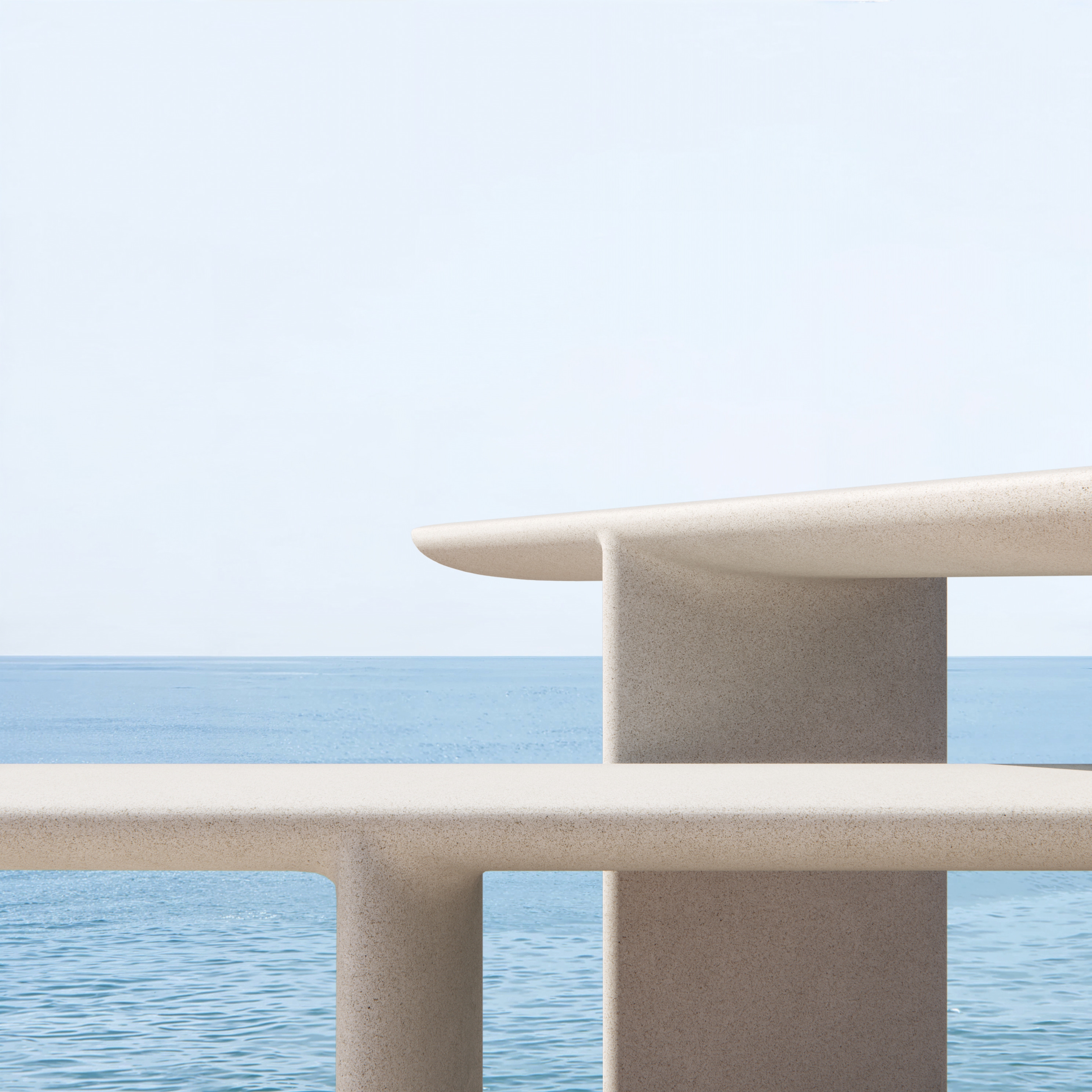 Gather and Tiers are outdoor furniture collections with ESCOFET, a Barcelona-based company that works with urban elements and architectural concrete to transform cities and promote the use of public space. The collection’s durable elements are made from ultra-high-performance concrete (UHPC) for a sleek and thin profile.