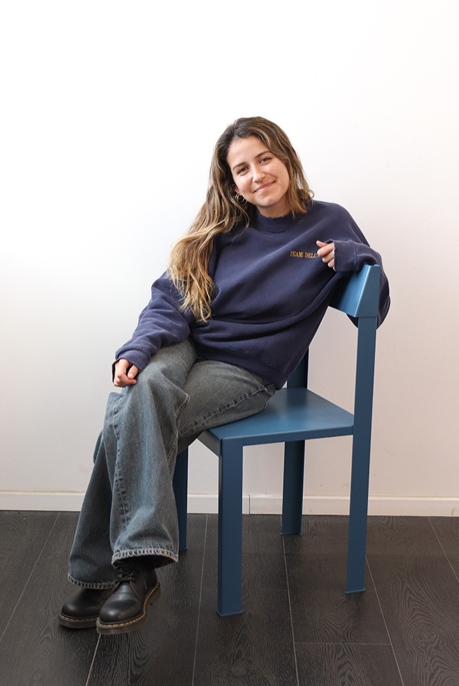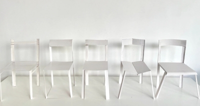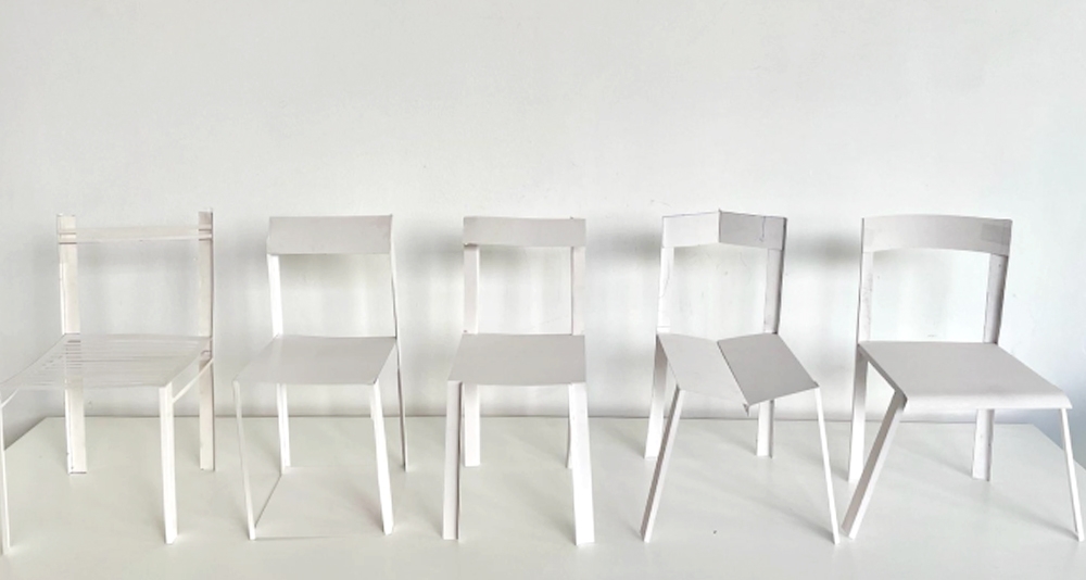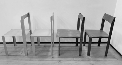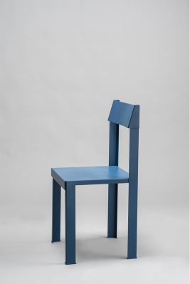 Hand crafted chair made from 2mm iron sheets.The design brings the 90 degree angle to the forefront, using it as the overall theme of the chair. A modern reframing of the basic chair, emphasizing exquisite detail, and harmonious proportions.