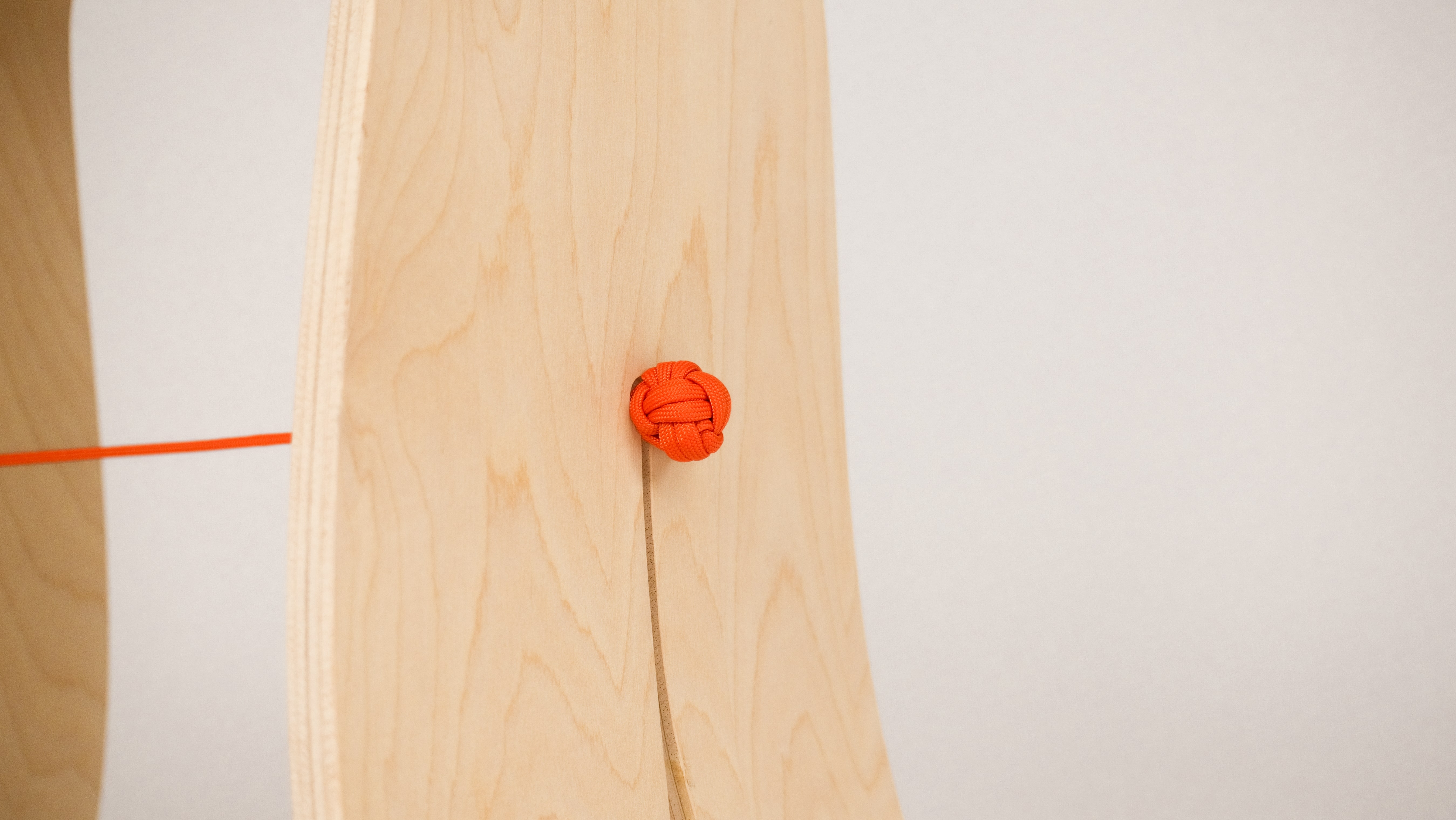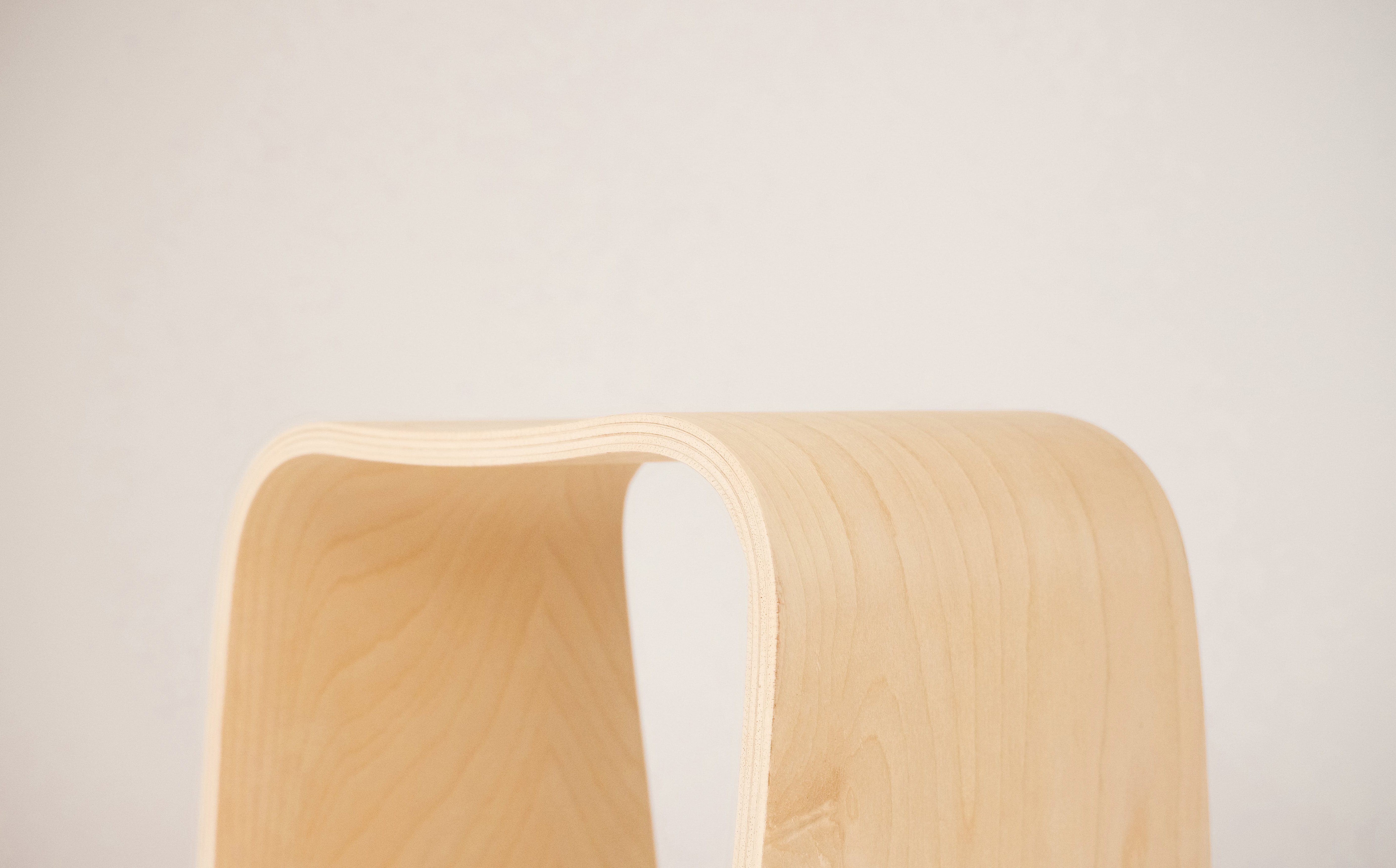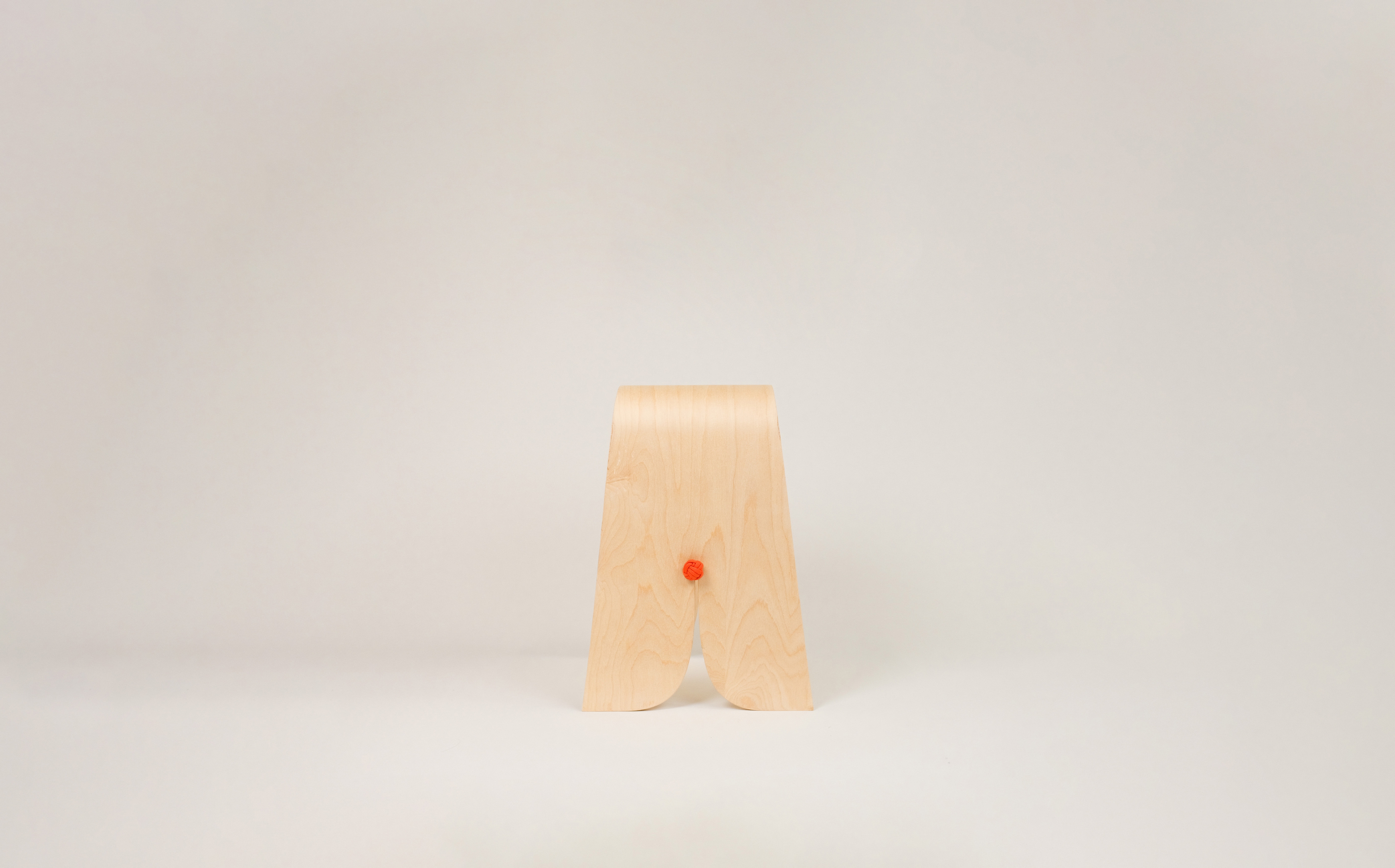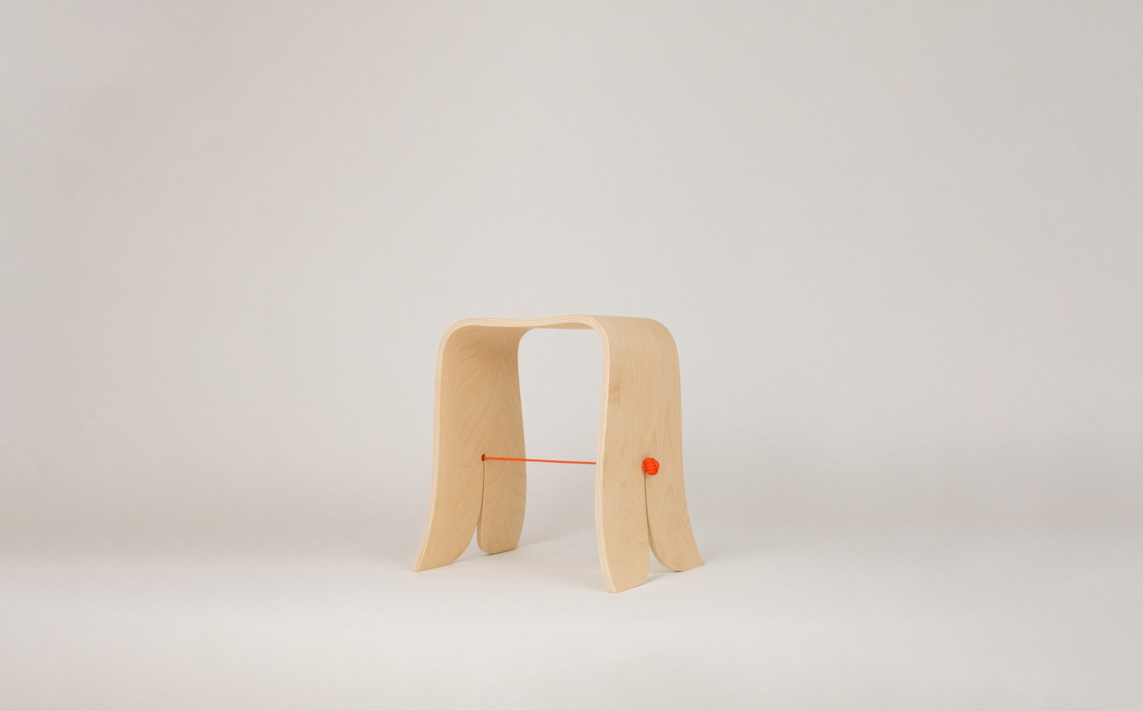 "Bound" playfully explores the interplay of materials, pairing bent birch plywood with a central rope that completes the stool both structurally and visually. The rope counteracts outward force, while the flex of the wood creates tension that holds the rope in place, highlighting the interdependence of the two materials.