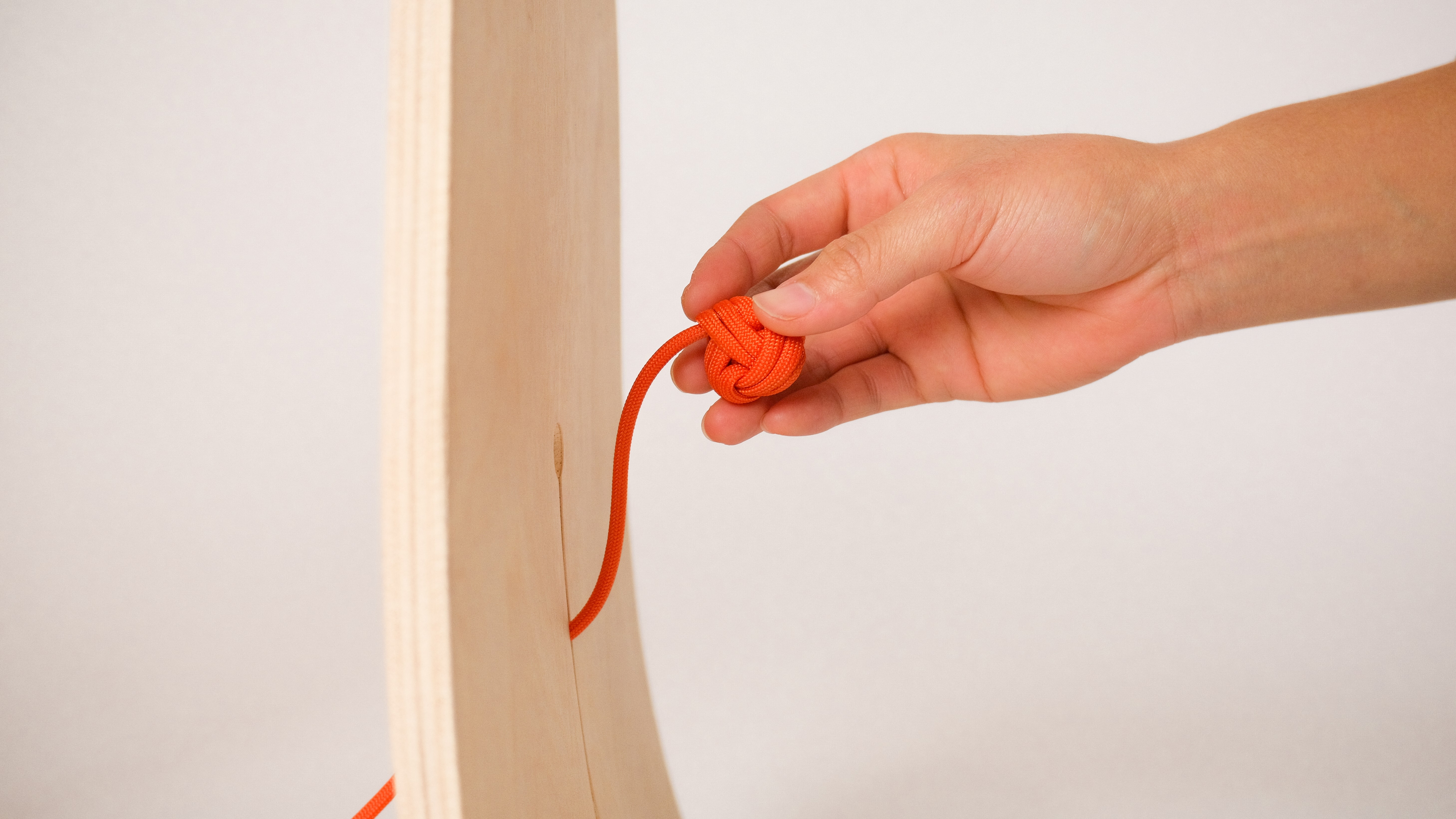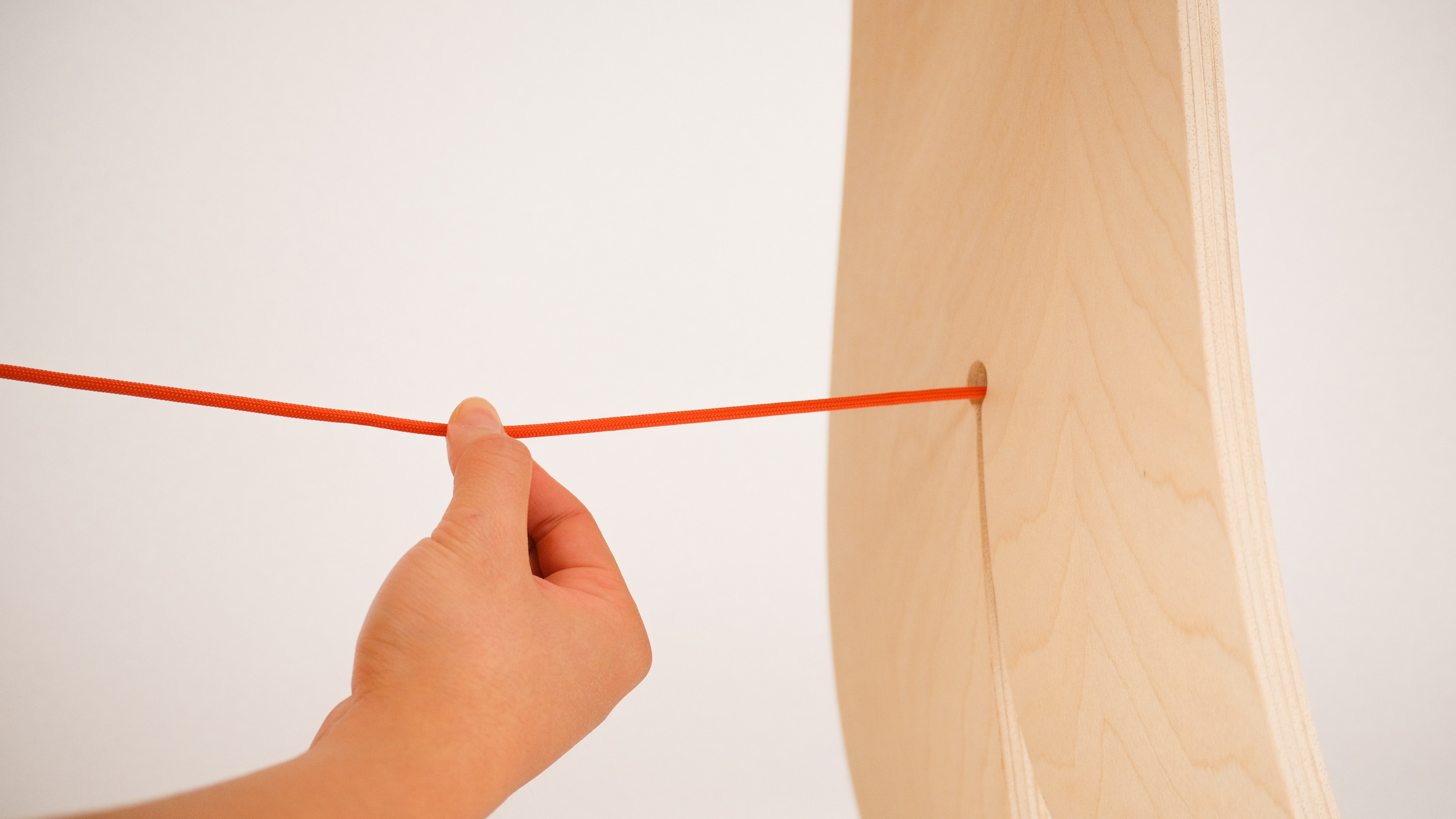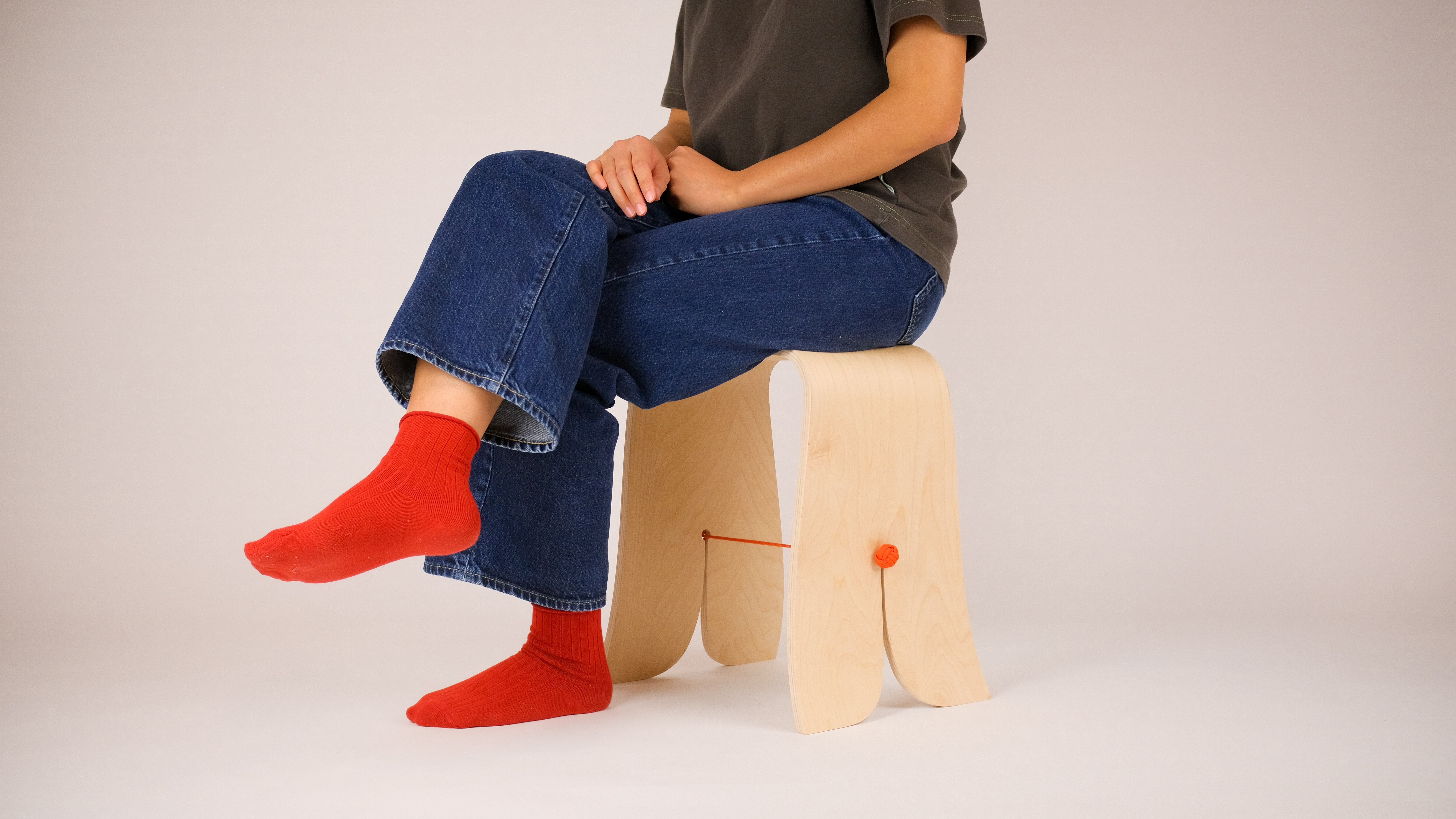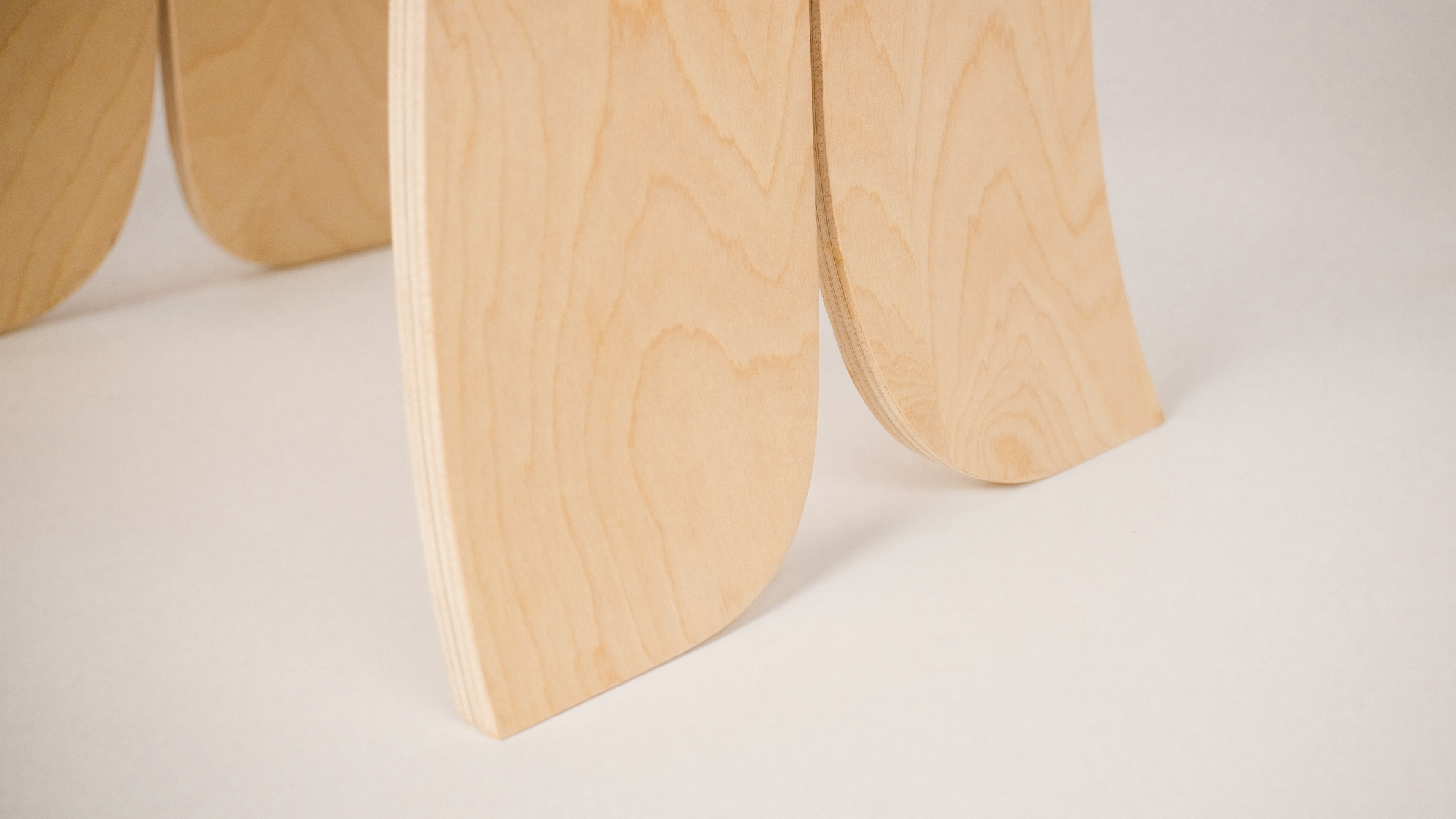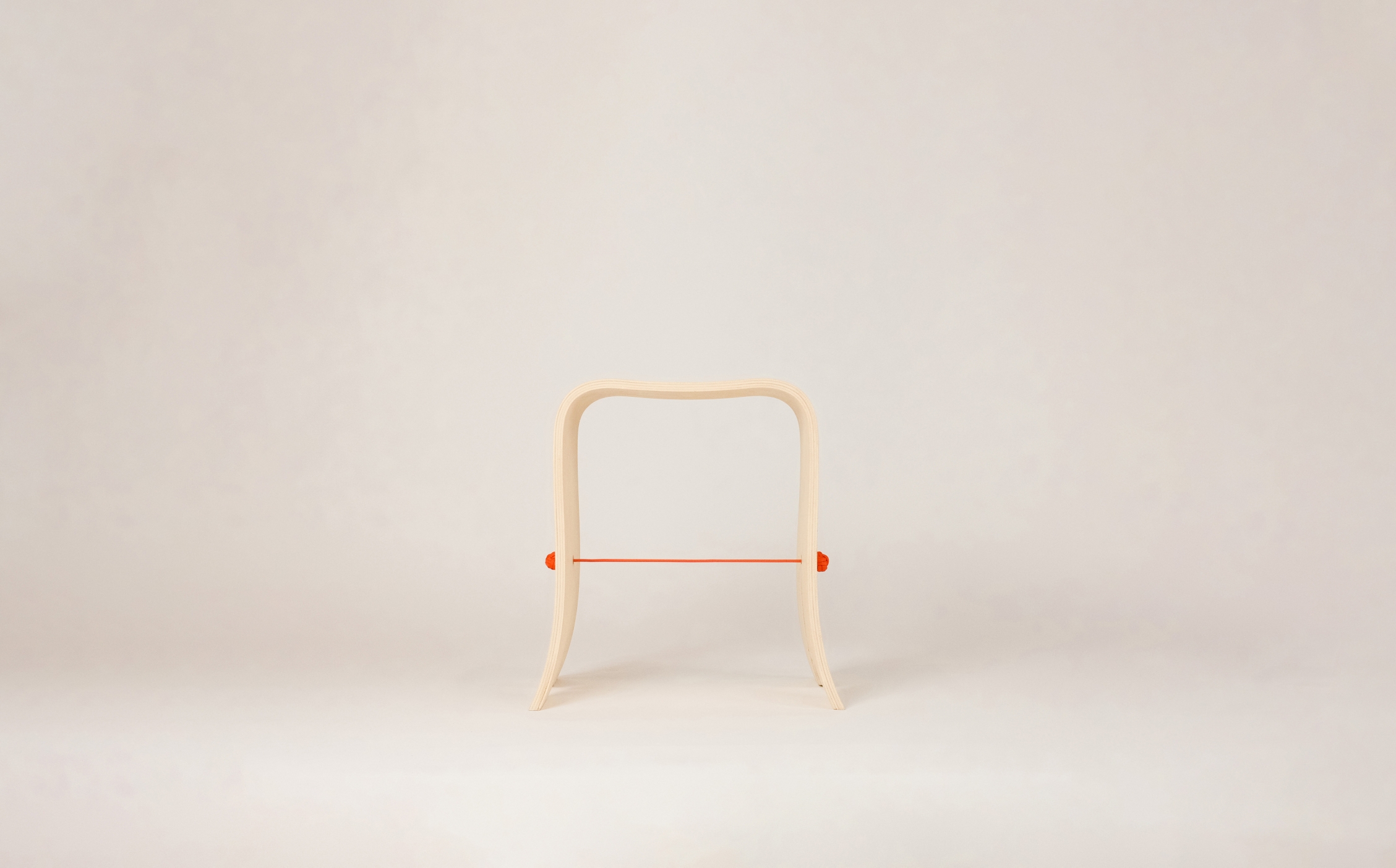 "Bound" playfully explores the interplay of materials, pairing bent birch plywood with a central rope that completes the stool both structurally and visually. The rope counteracts outward force, while the flex of the wood creates tension that holds the rope in place, highlighting the interdependence of the two materials.