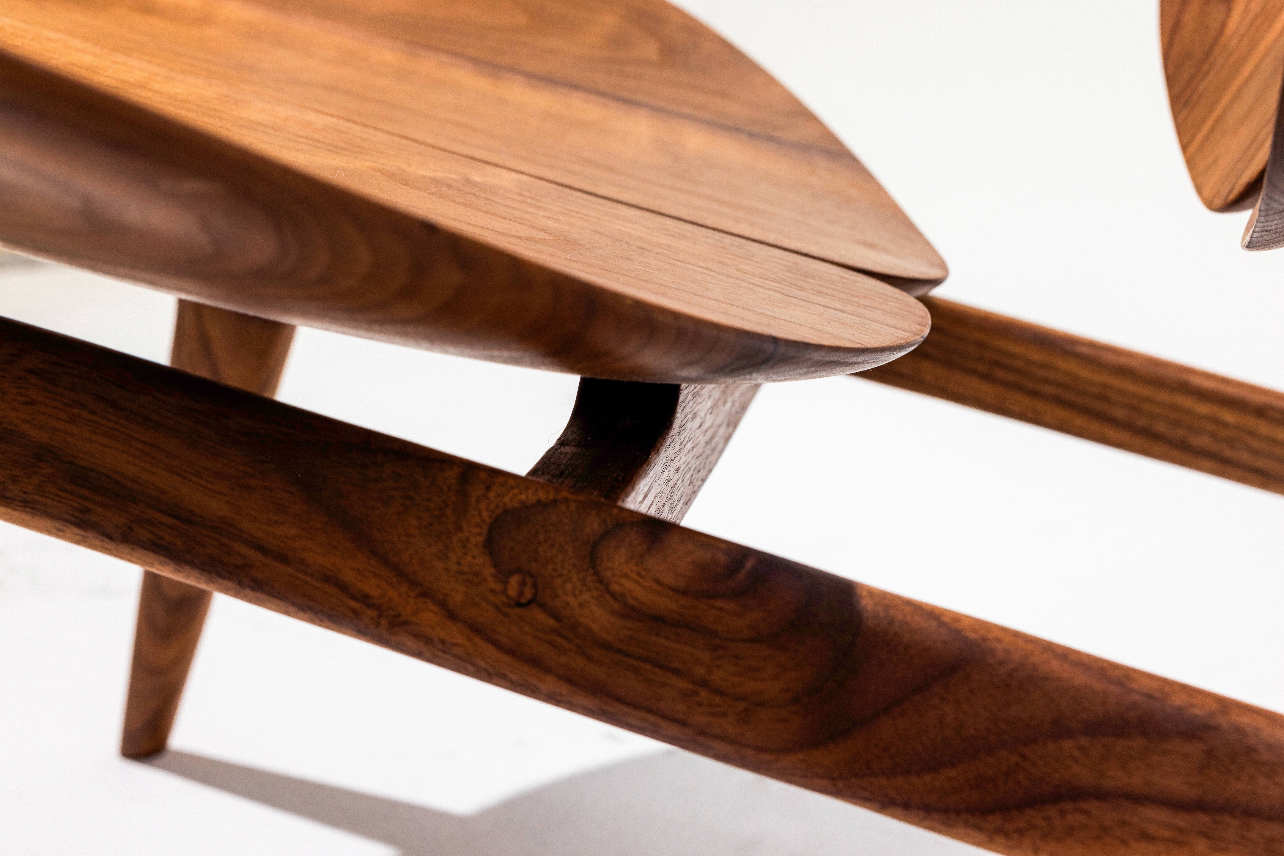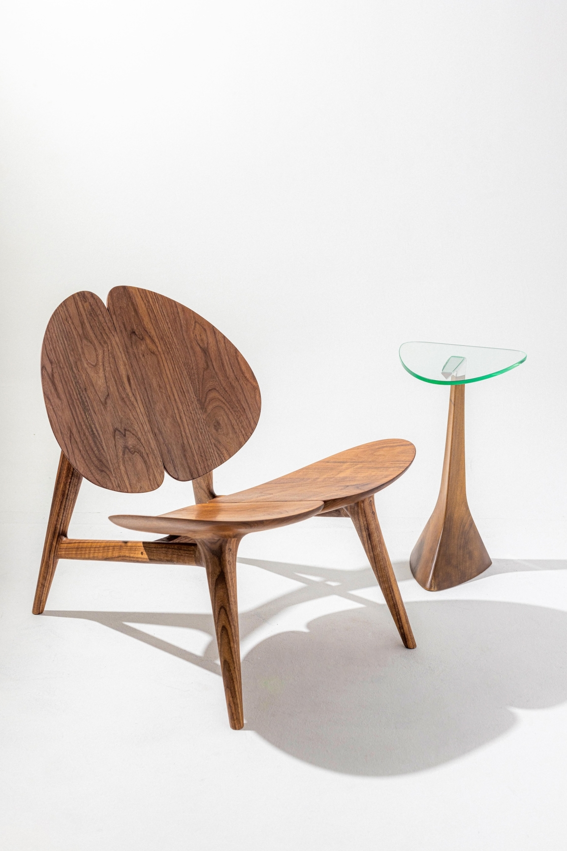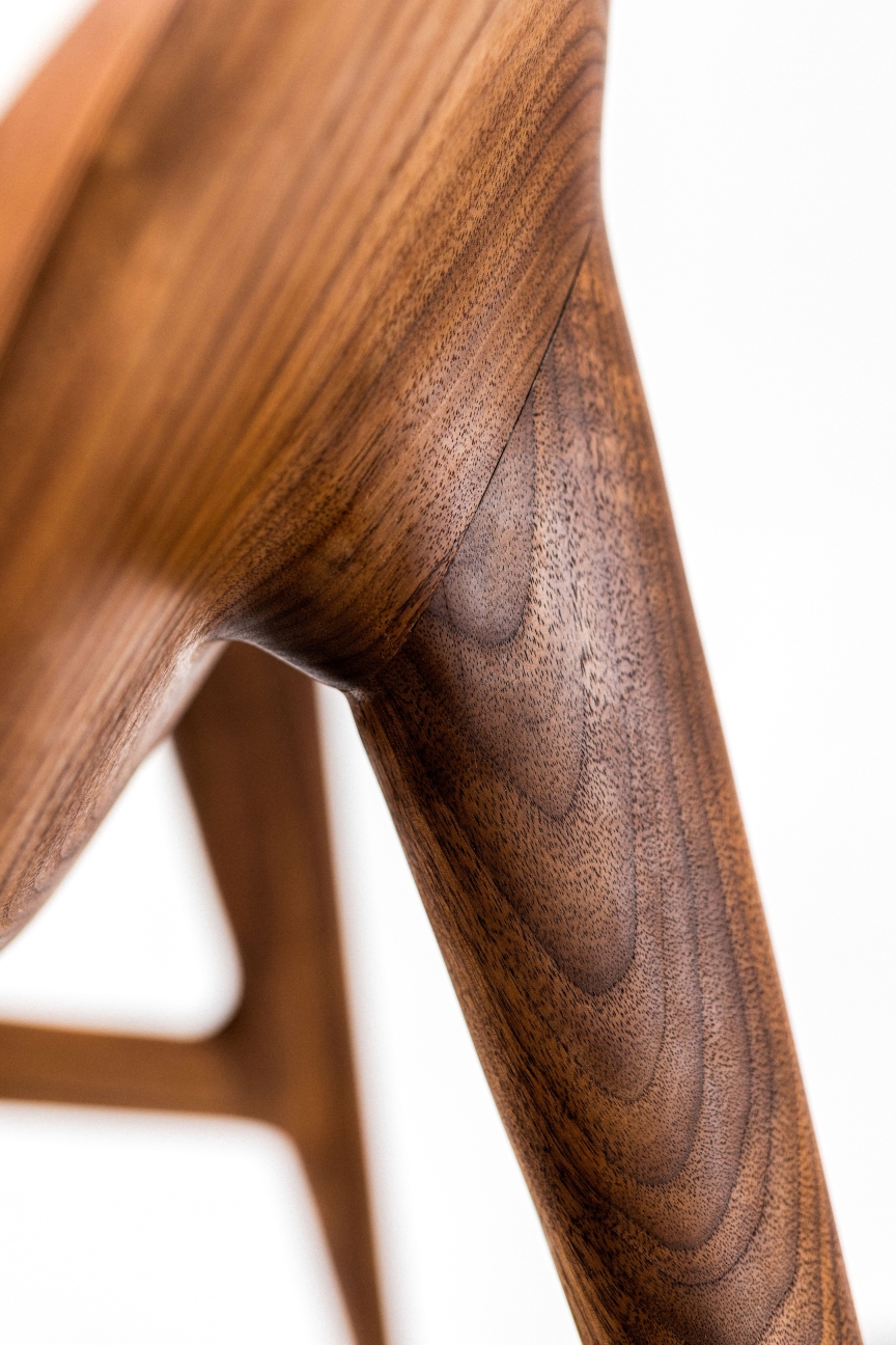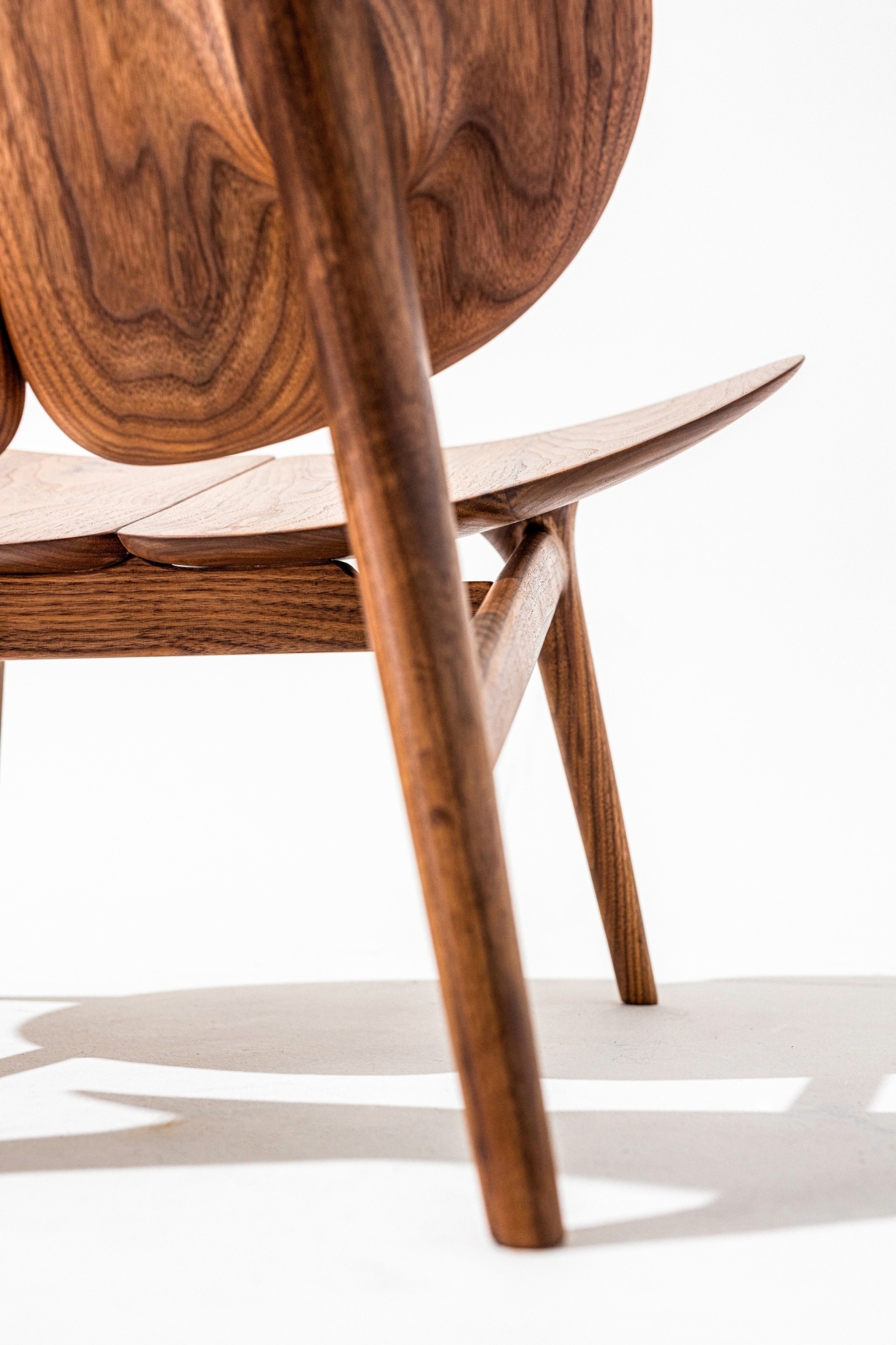 The Lamina Chair is a luxurious lounge chair inspired by the four-leaf clover, symbolizing luck and harmony. It embodies the essence of retreat, relaxation, and recharge, seamlessly integrating the tranquility of nature into your home environment. Its design strikes a delicate balance between form and function, offering a unique blend of comfort and elegance, making it an ideal sanctuary for unwinding and reconnecting with the essence of life. Crafted from walnut wood, the chair brings the warmth and richness of natural materials into space, further enhancing the connection to nature and creating a soothing atmosphere for relaxation.