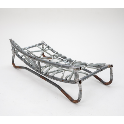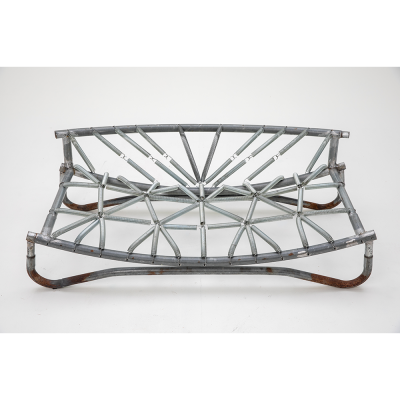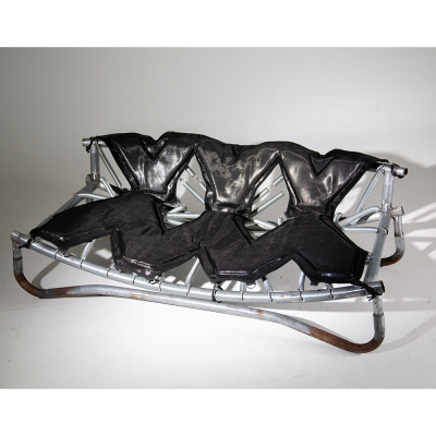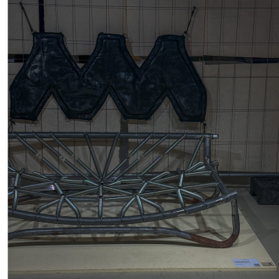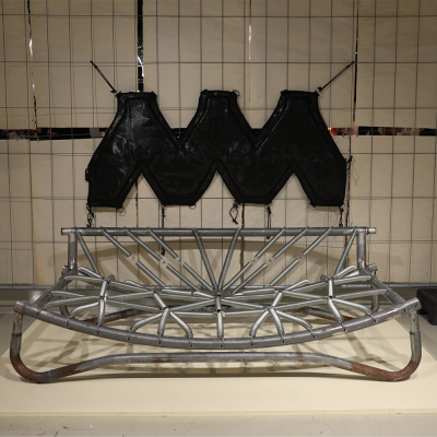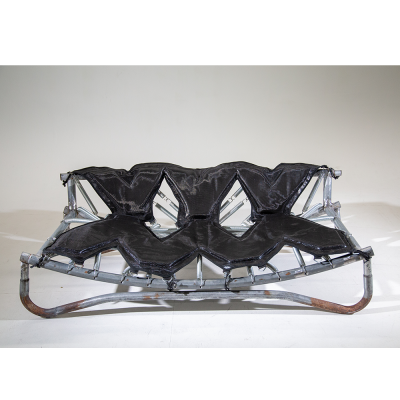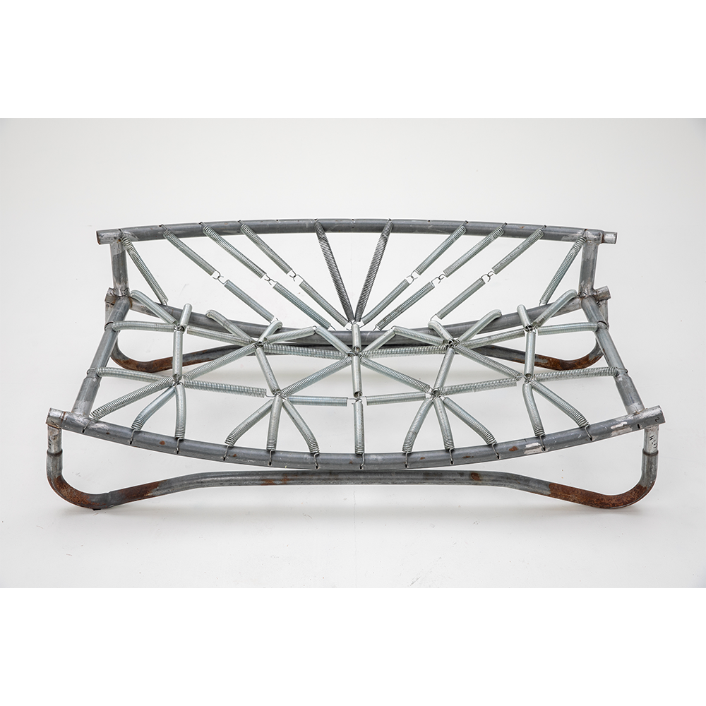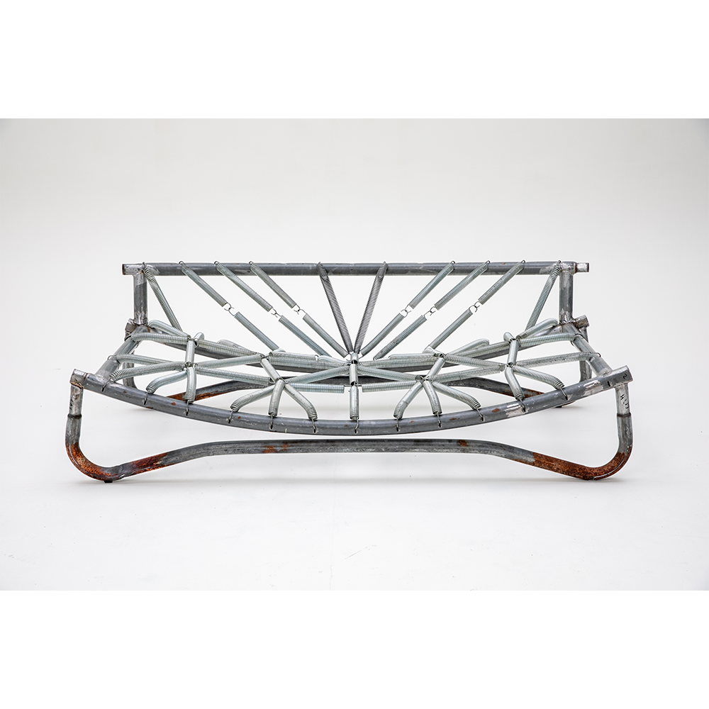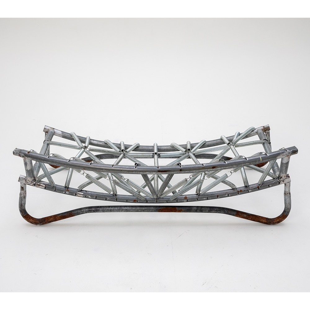 Designed for playful seating with bouncing springs that invite both laughter and active focus. The entire piece is made from parts of a worn-out trampoline that I was given. The padding and fabric also come from the trampoline—I want to show that the materials we discard around us have life and potential that we often fail to see.