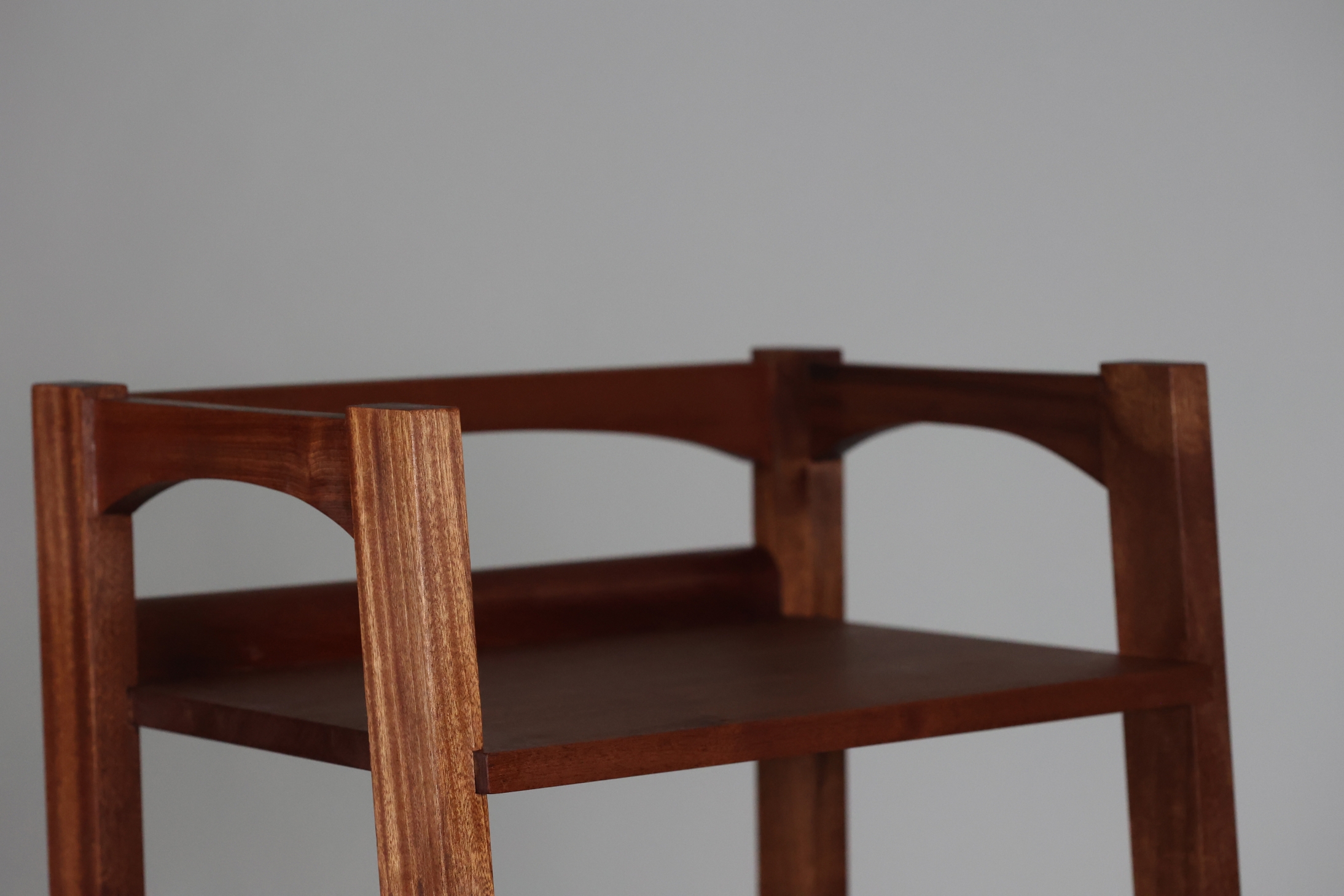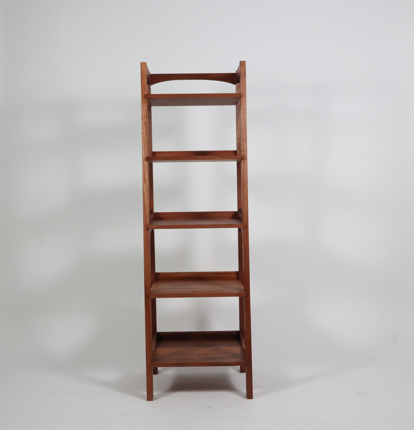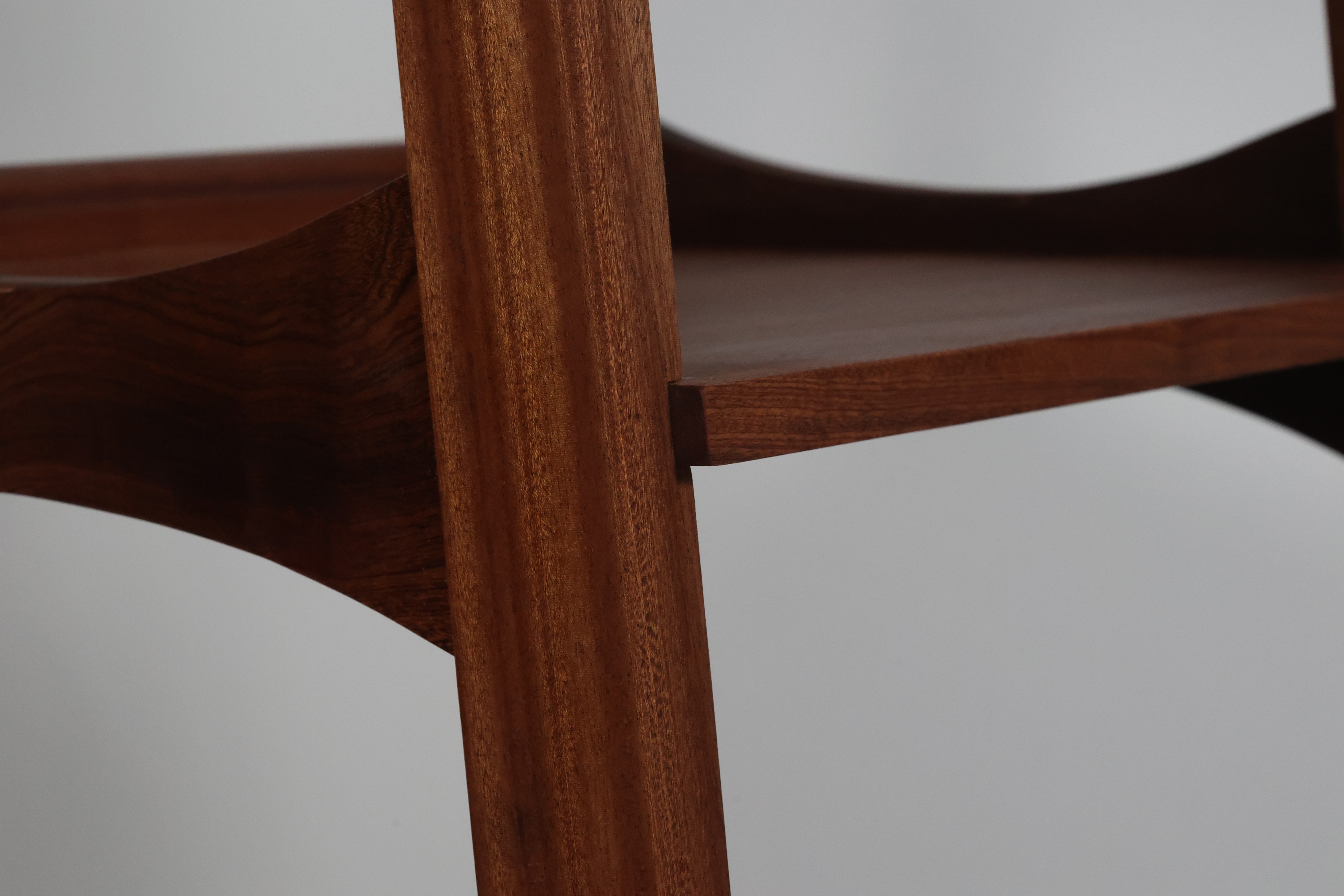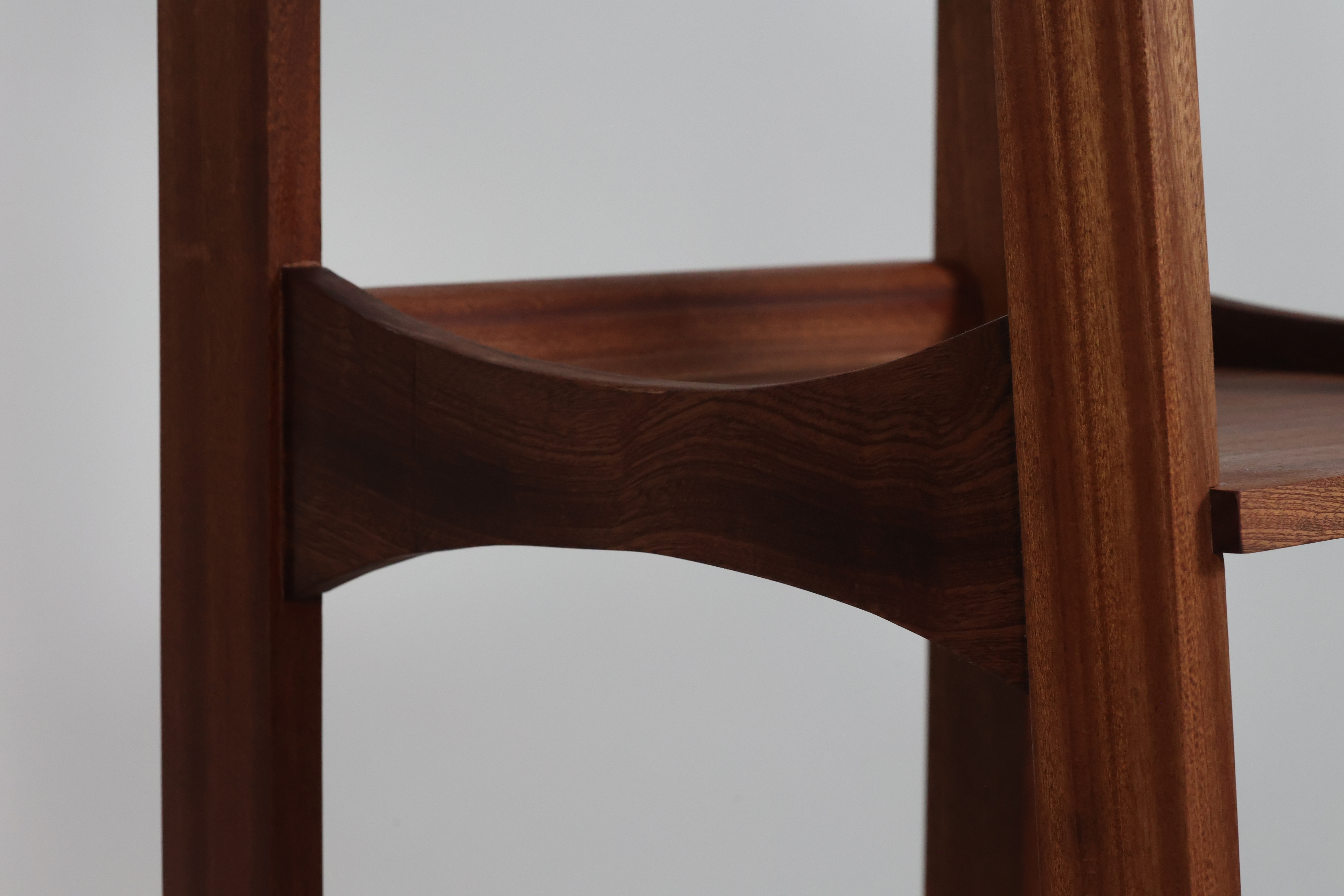 Jumar is a ladder-style bookshelf built out of sapele wood cutoffs from a local cabinet shop's scrap bin. It's designed to be simple to build and easy to integrate into any living space. It's a companion to other pieces in the room, as well as anything it holds, elevating its surroundings and contents alike, as any good bookshelf should.
