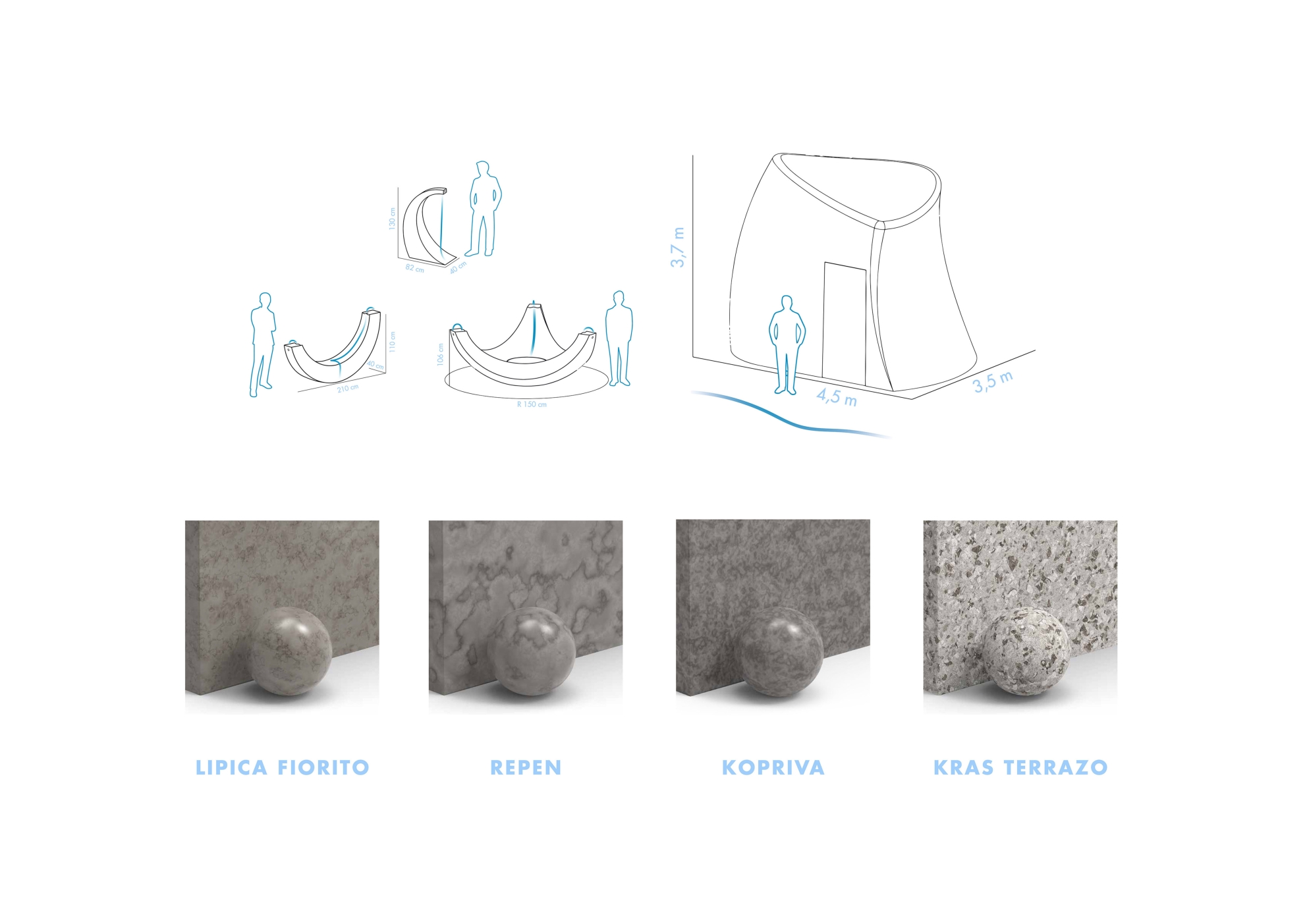 In their creative approach, they sought to mirror the water features that define the landscape of Slovenia, incorporating them into the design elements along the trail. Opting for a material that resonates most with the essence of this nation, they chose to create these elements from Kras stone, symbolizing the unique character of Slovenia.