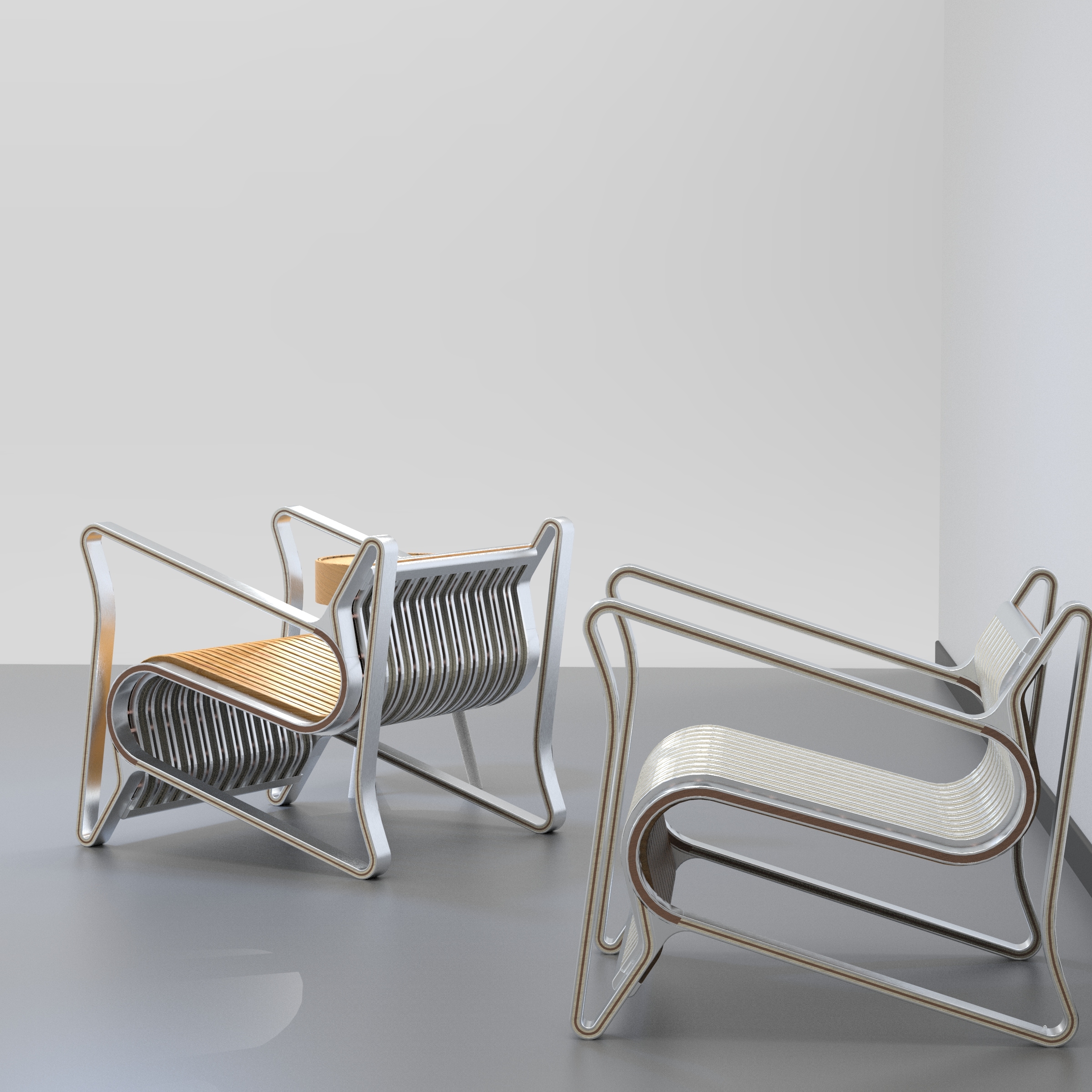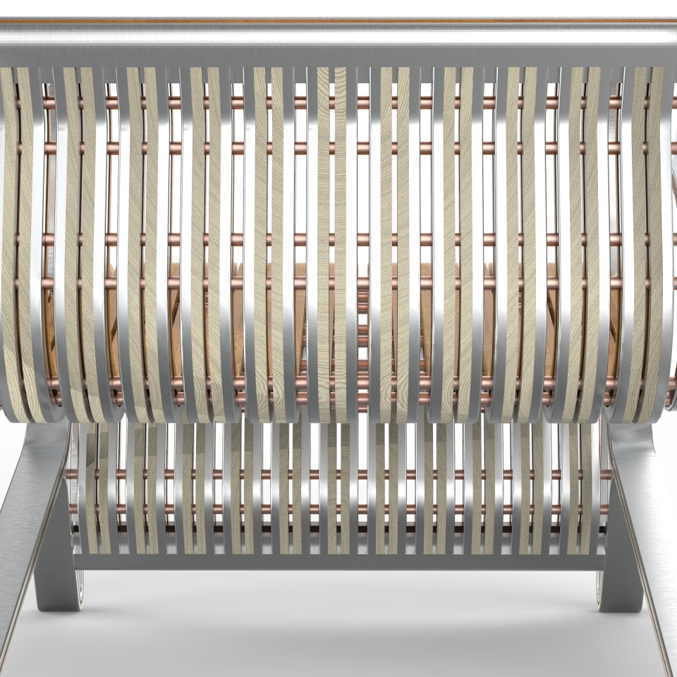 "IZZI Ambigram Chair" reimagines the traditional lounge chair with its innovative 180-degree rotation. Inspired by the art of ambigram, this unique piece challenges conventional design. Crafted from a fusion of aluminum, solid wood, and brass, "IZZI" seamlessly blends form and function. More than just a seat, it's a captivating object that invites user interaction and sparks curiosity. A testament to design's potential to spark curiosity, "IZZI" seamlessly merges aesthetic sophistication with ergonomic functionality.