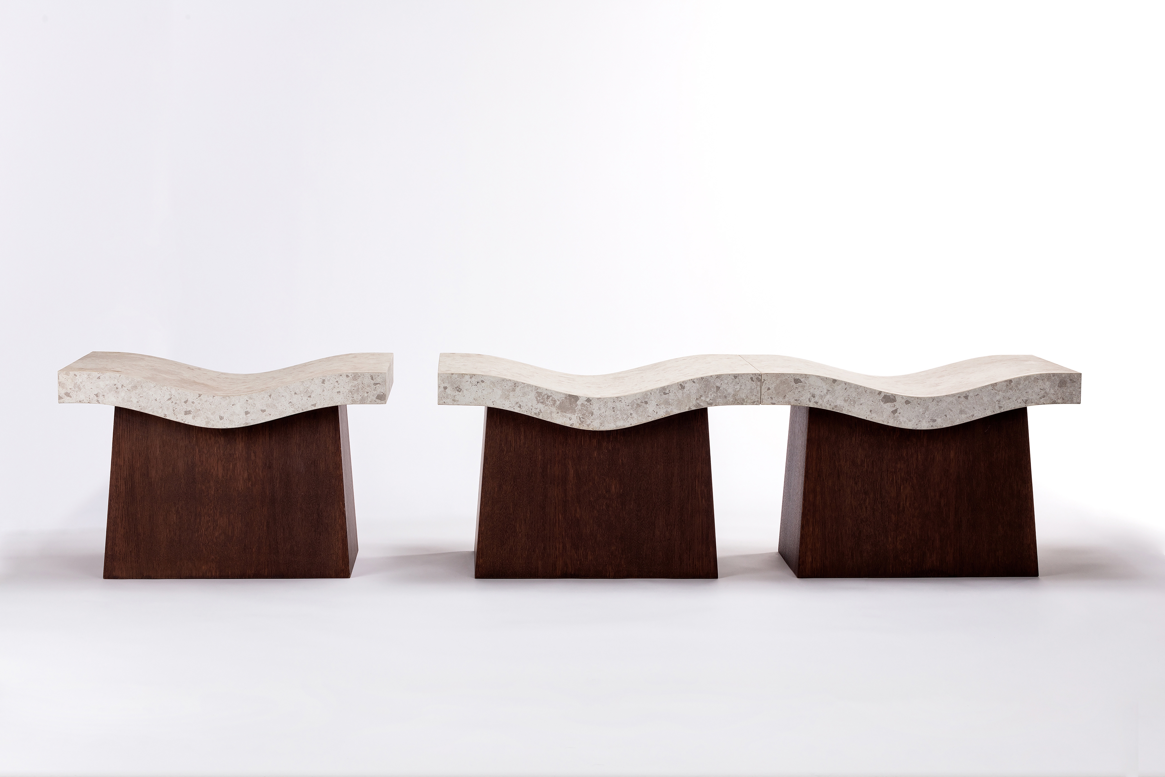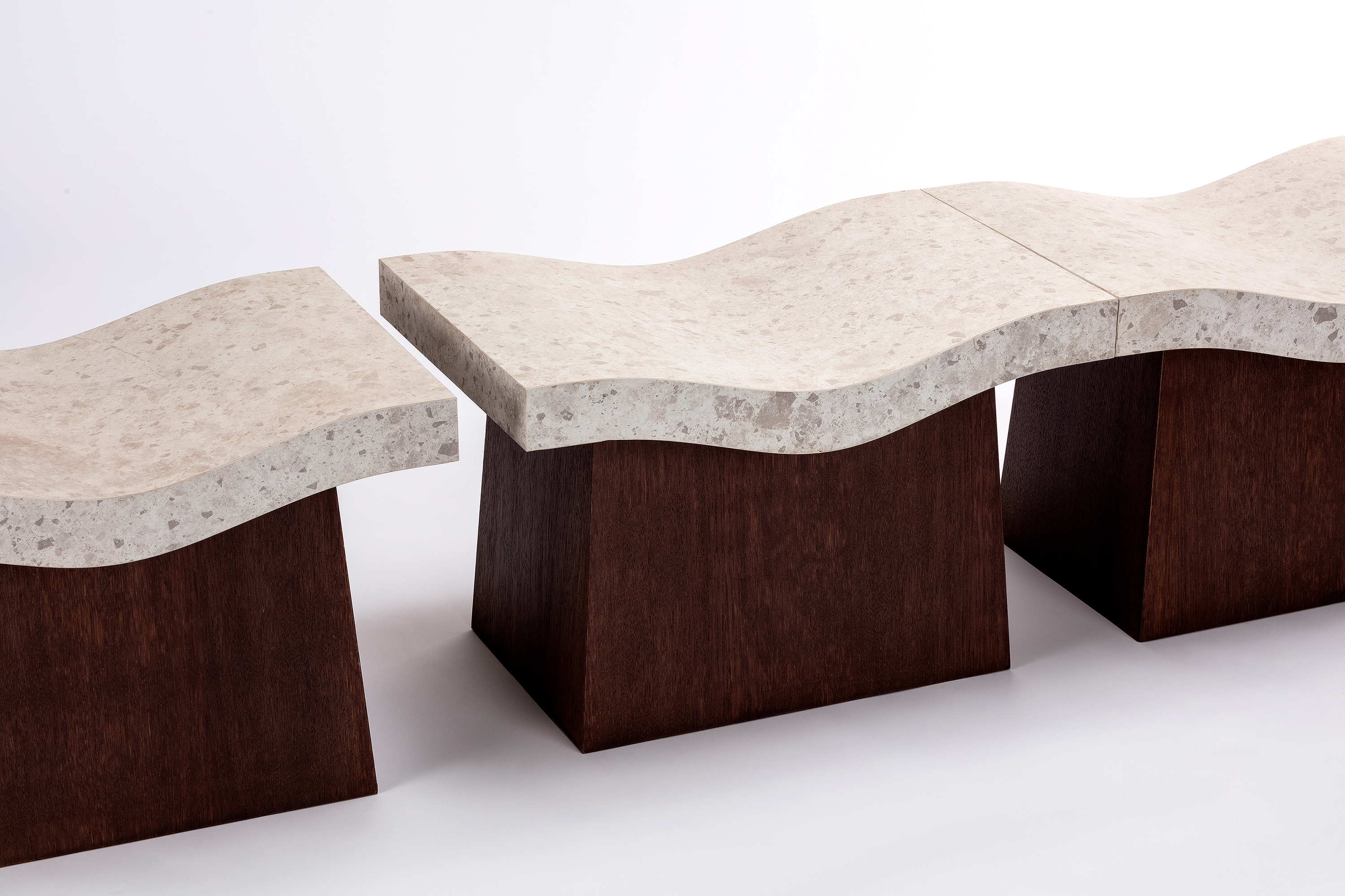 Più Uno is a modular element that invites the combination of multiple units to generate a continuous curved line that ideally expands infinitely. This gesture suggests the propagation of a wave, the gentle slopes of a hill, the dunes of the desert, an imaginary that become music, frequency, sinusoidal movement.