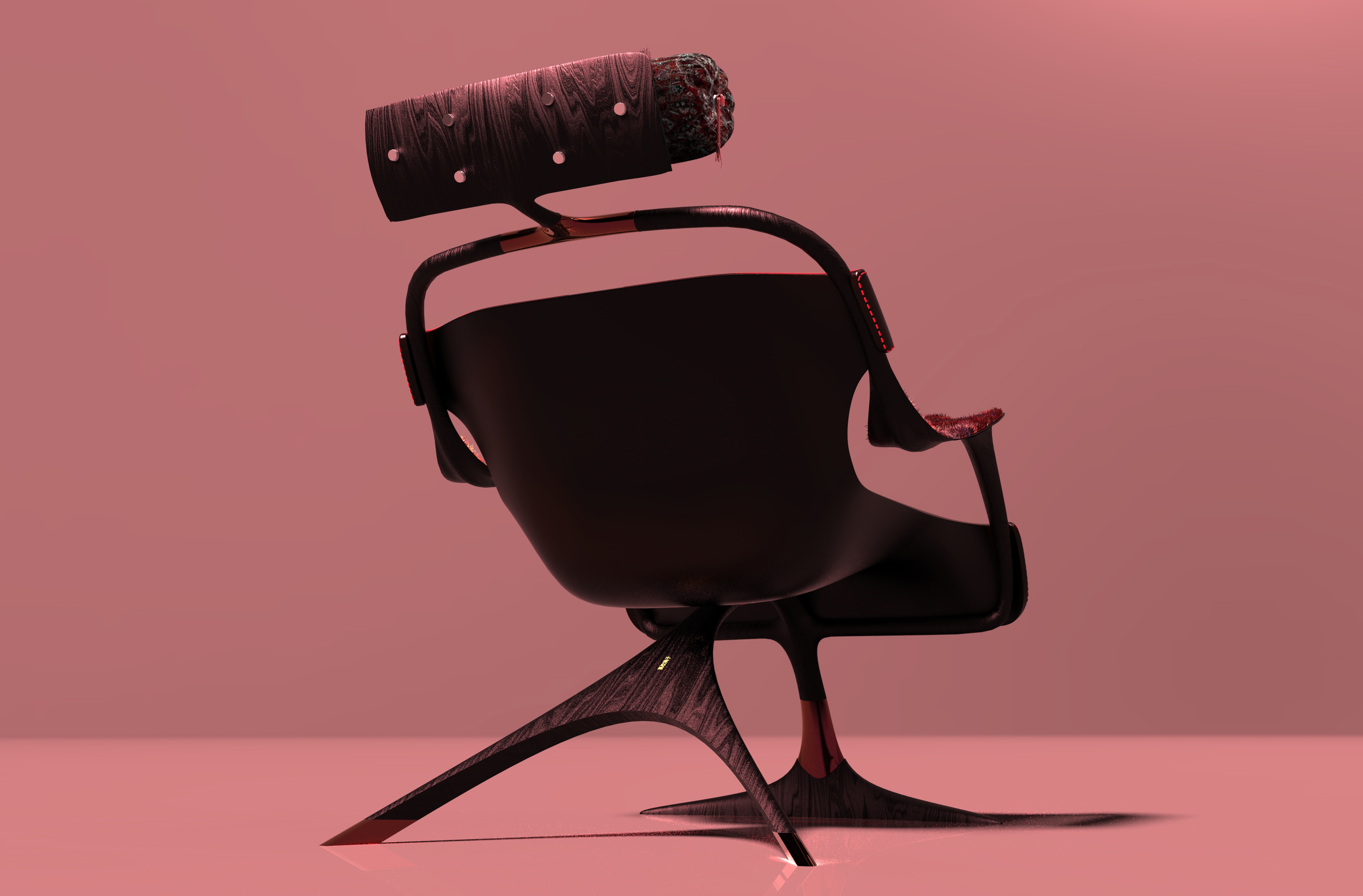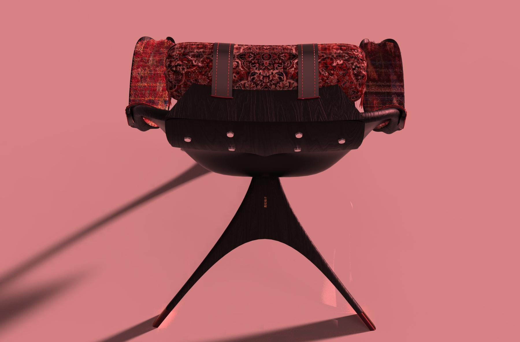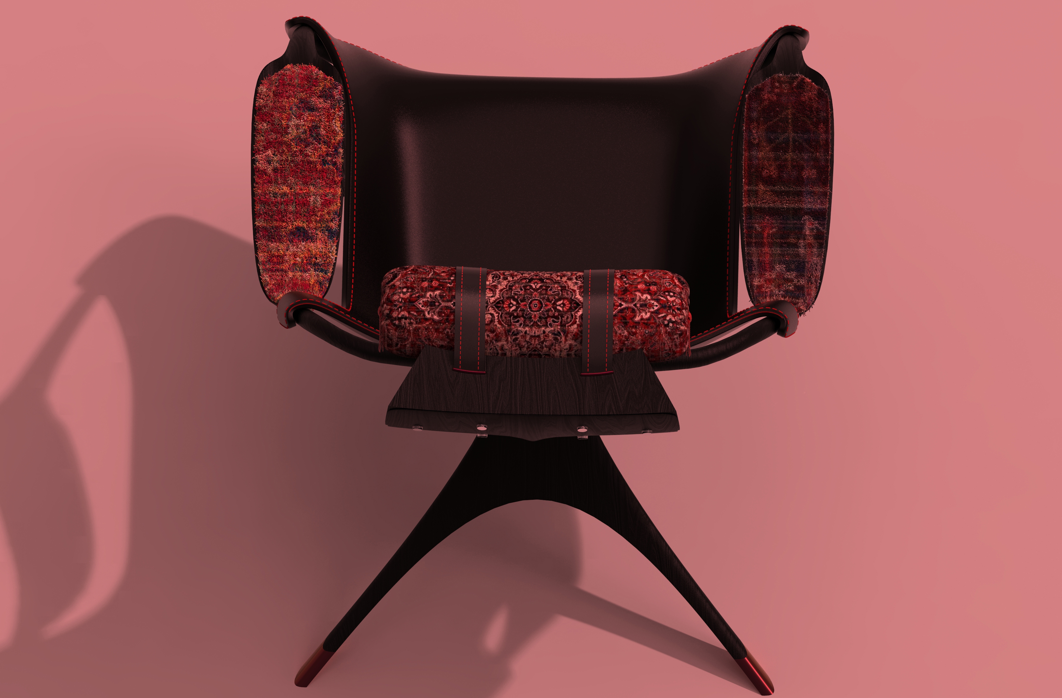 The "TAKAMAKURA" armchair is a blend of cultures, where tradition meets modernity. Inspired by the Japanese Takamakura pillow, the headrest preserves the essence of long-standing comfort, while the chair’s refined modern design brings a contemporary aesthetic. To further enrich this cross-cultural dialogue, upcycled Persian carpet has been incorporated into the headrest pillow and armrests, adding warmth, heritage, and sustainability to the design. This piece is more than just furniture—it’s a celebration of craftsmanship, history, and innovation, seamlessly blending influences from Japan and Persia into a unique, modern expression.