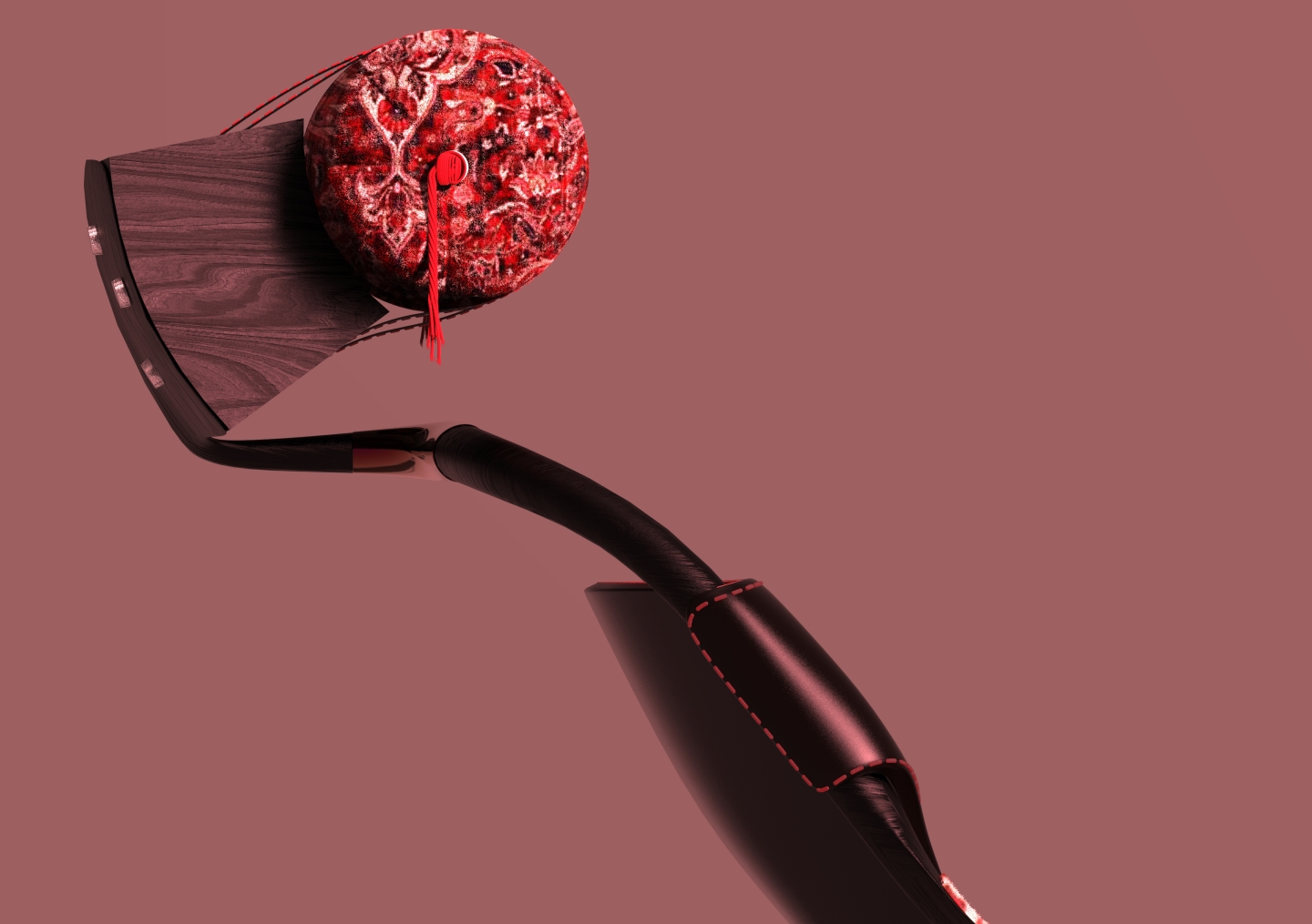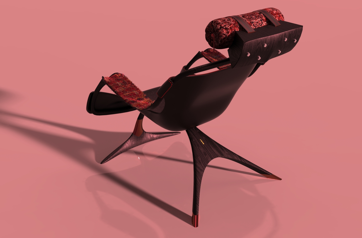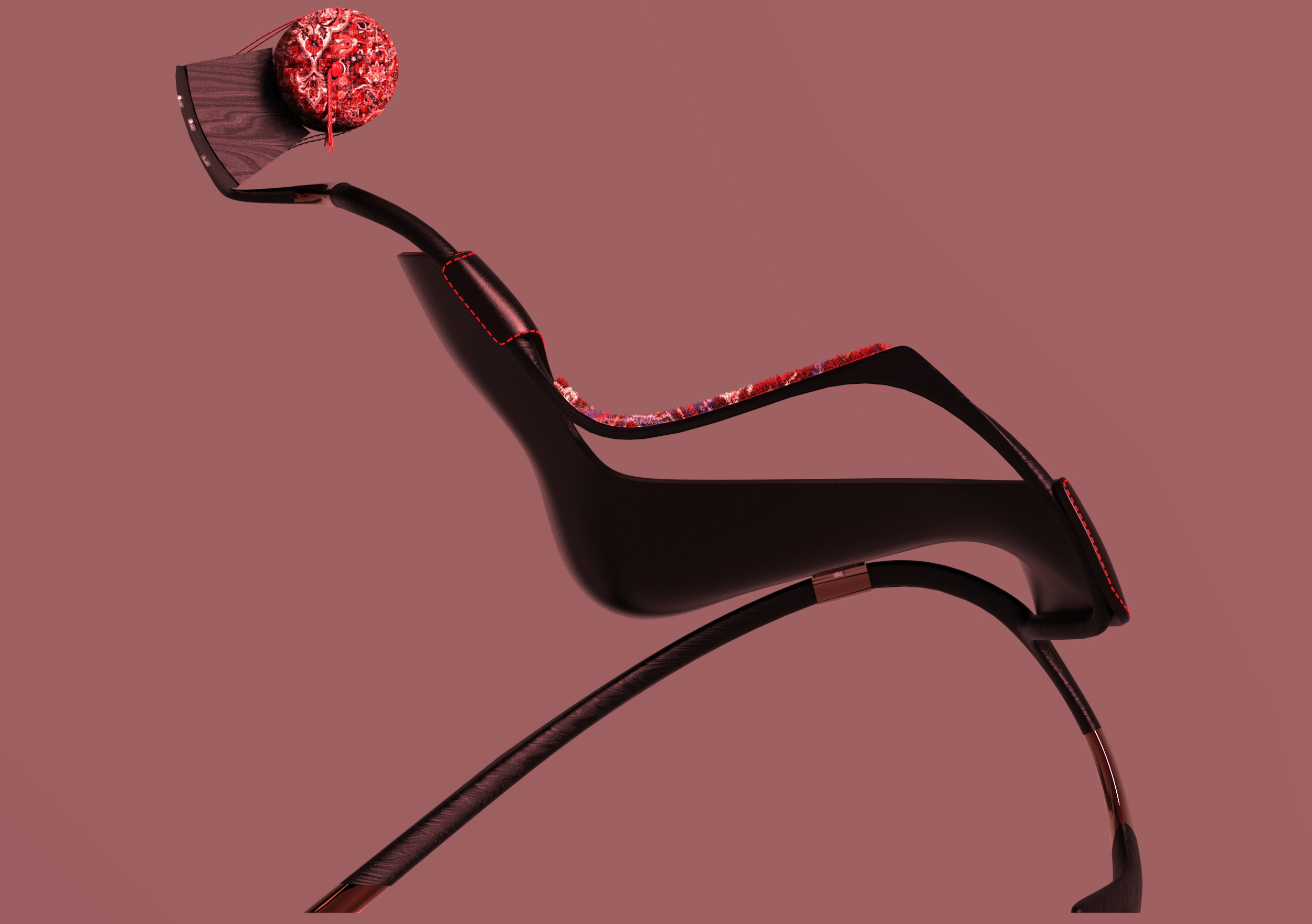 The "TAKAMAKURA" armchair is a blend of cultures, where tradition meets modernity. Inspired by the Japanese Takamakura pillow, the headrest preserves the essence of long-standing comfort, while the chair’s refined modern design brings a contemporary aesthetic. To further enrich this cross-cultural dialogue, upcycled Persian carpet has been incorporated into the headrest pillow and armrests, adding warmth, heritage, and sustainability to the design. This piece is more than just furniture—it’s a celebration of craftsmanship, history, and innovation, seamlessly blending influences from Japan and Persia into a unique, modern expression.