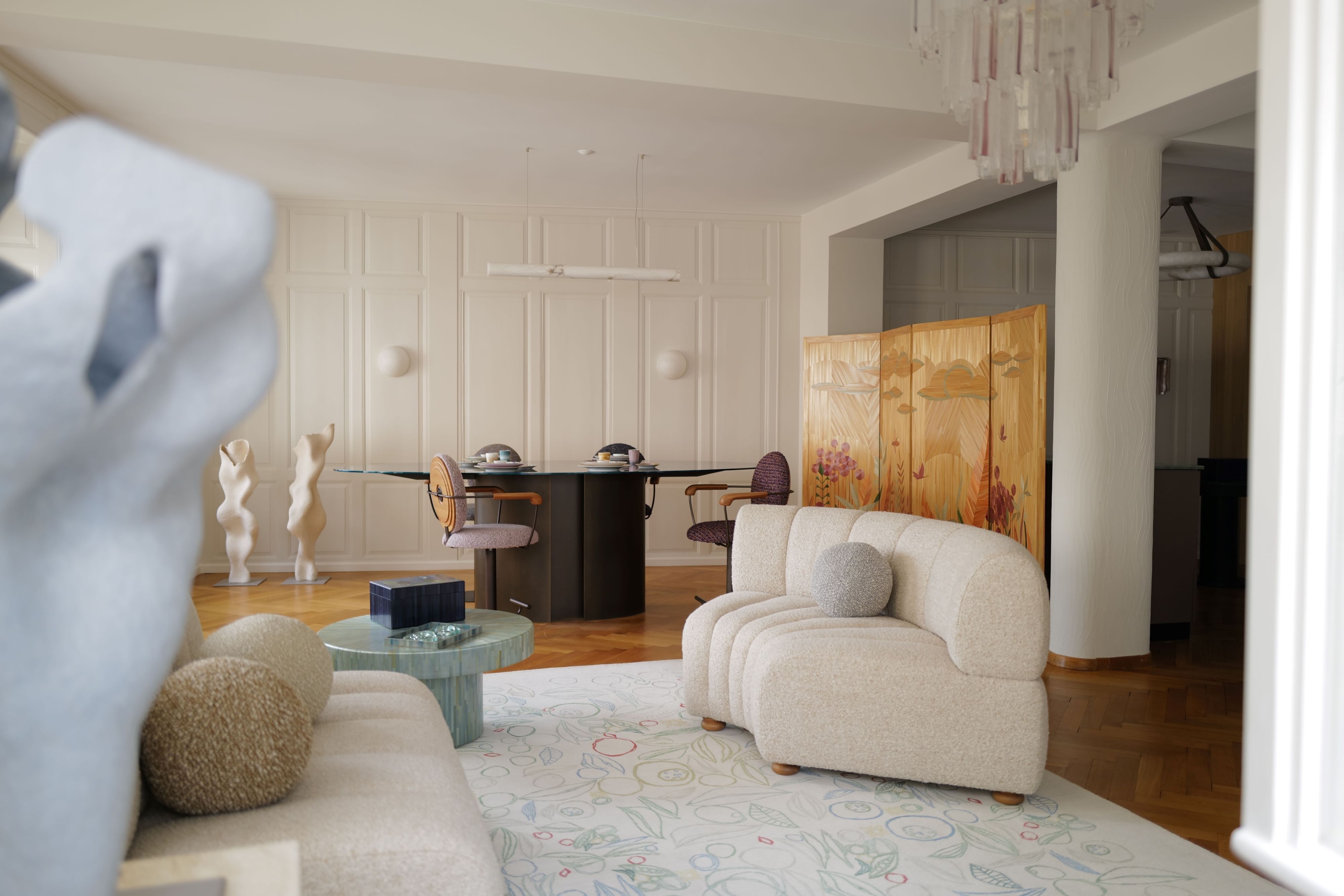 Breaking away from the traditional showroom concept, the studio is designed as a welcoming apartment, allowing guests to experience its designs in a home-like setting. Constantly evolving, it showcases a curated selection of furniture, lighting, and objects influenced by Art Deco and the 1970s.
