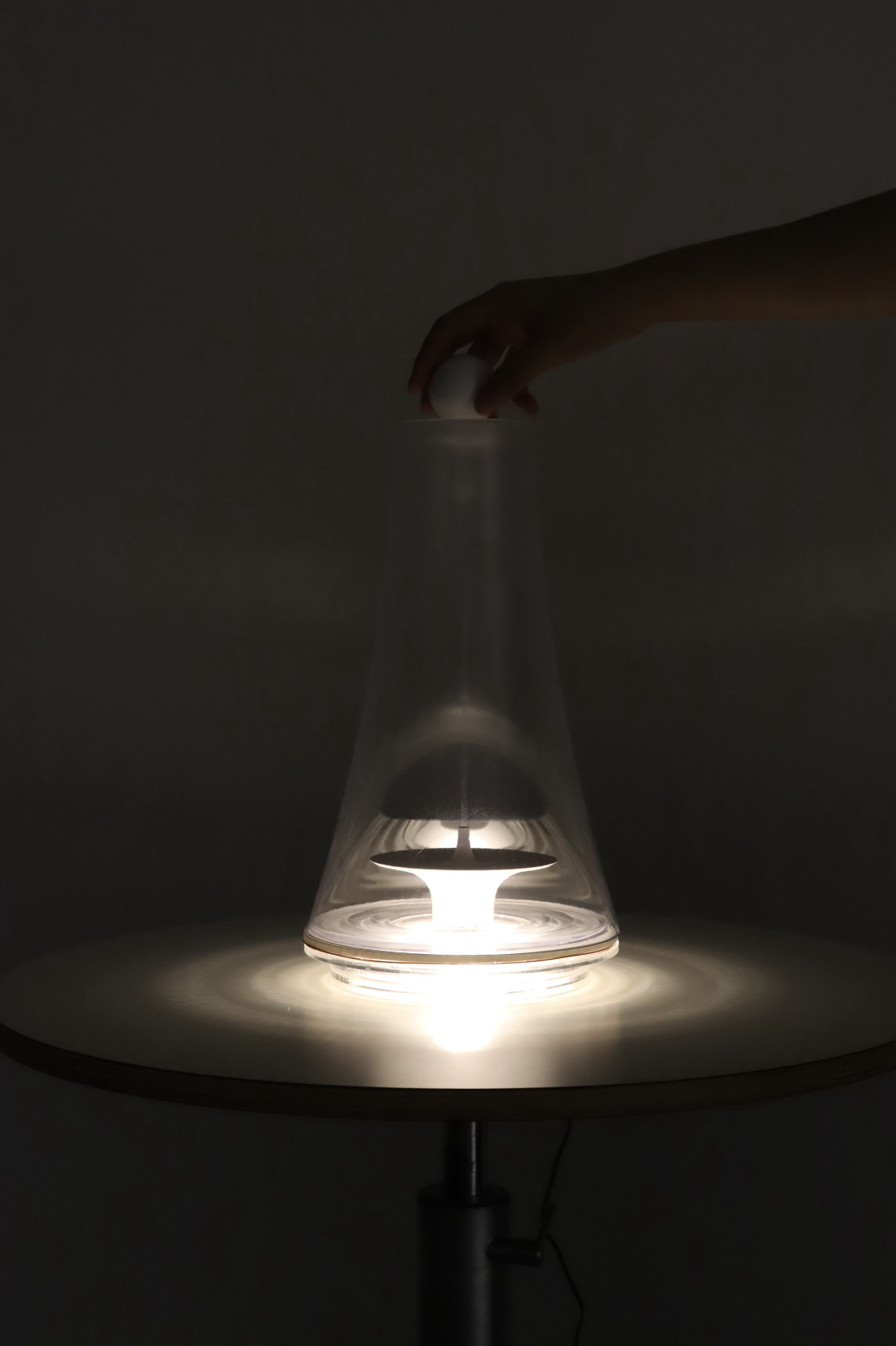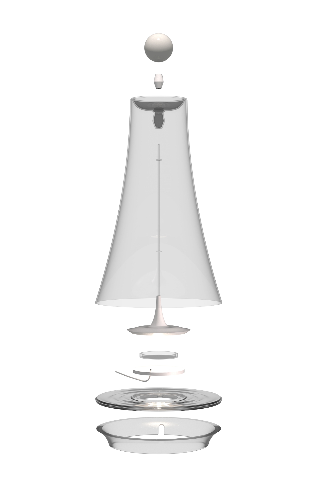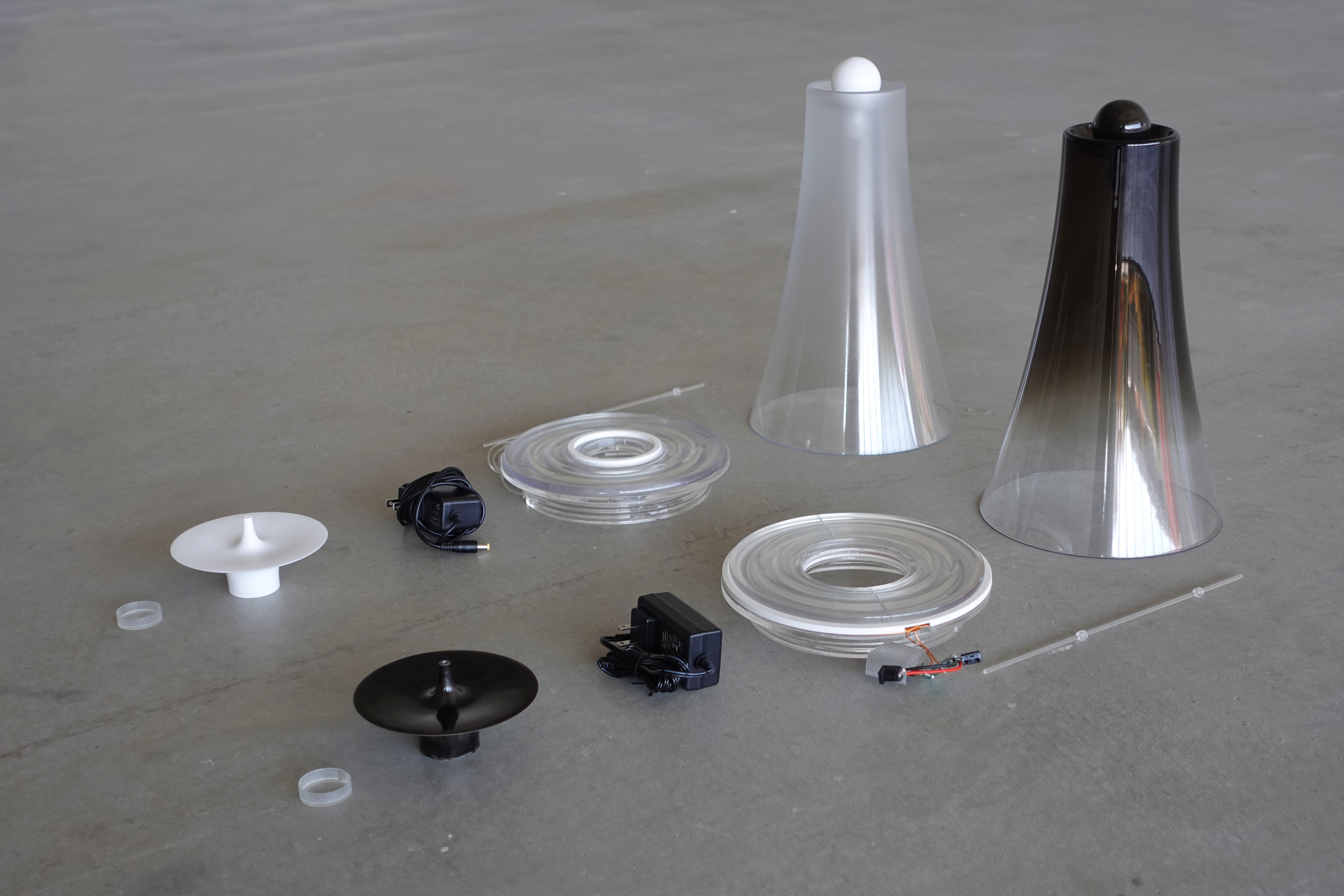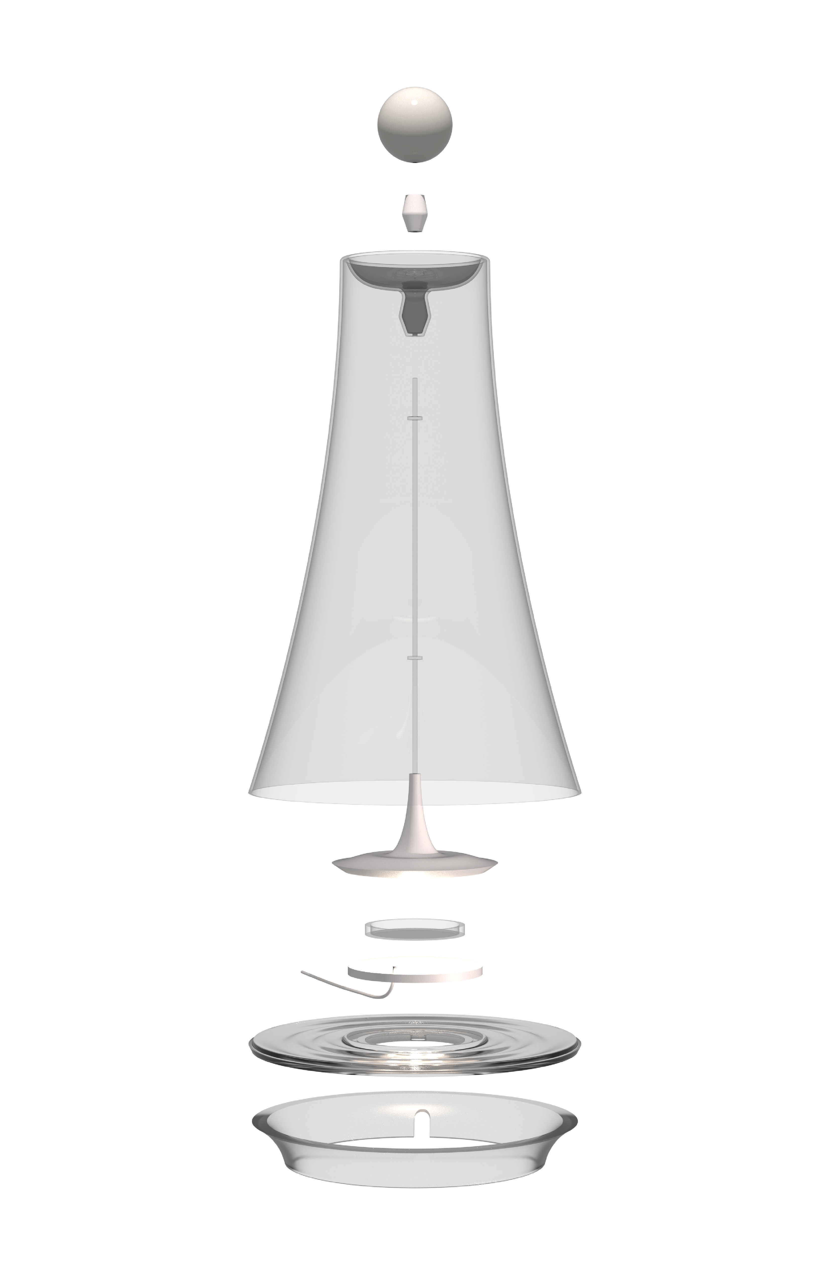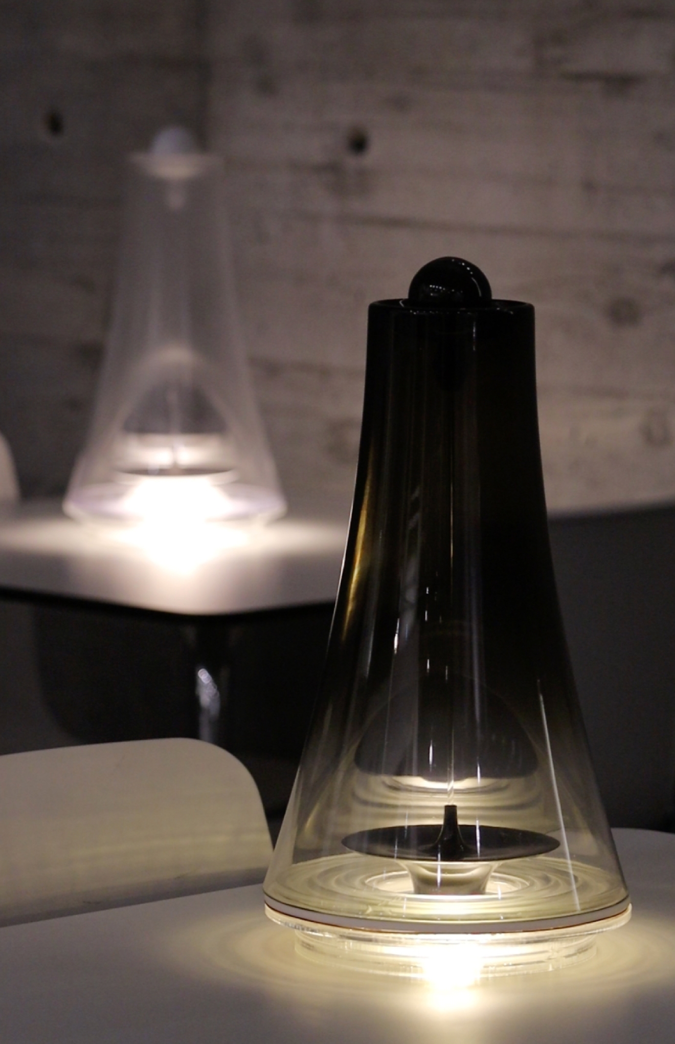 The design embraces a sleek, modern aesthetic with a minimalist approach. The internal fixture enhancing the sense of suspension. Soft, diffused light gently filters through the gradient matte or glossy cover, casting a serene and inviting glow. The two lamps feature distinct finishings, thoughtfully chosen to offer a diverse and captivating visual experience.