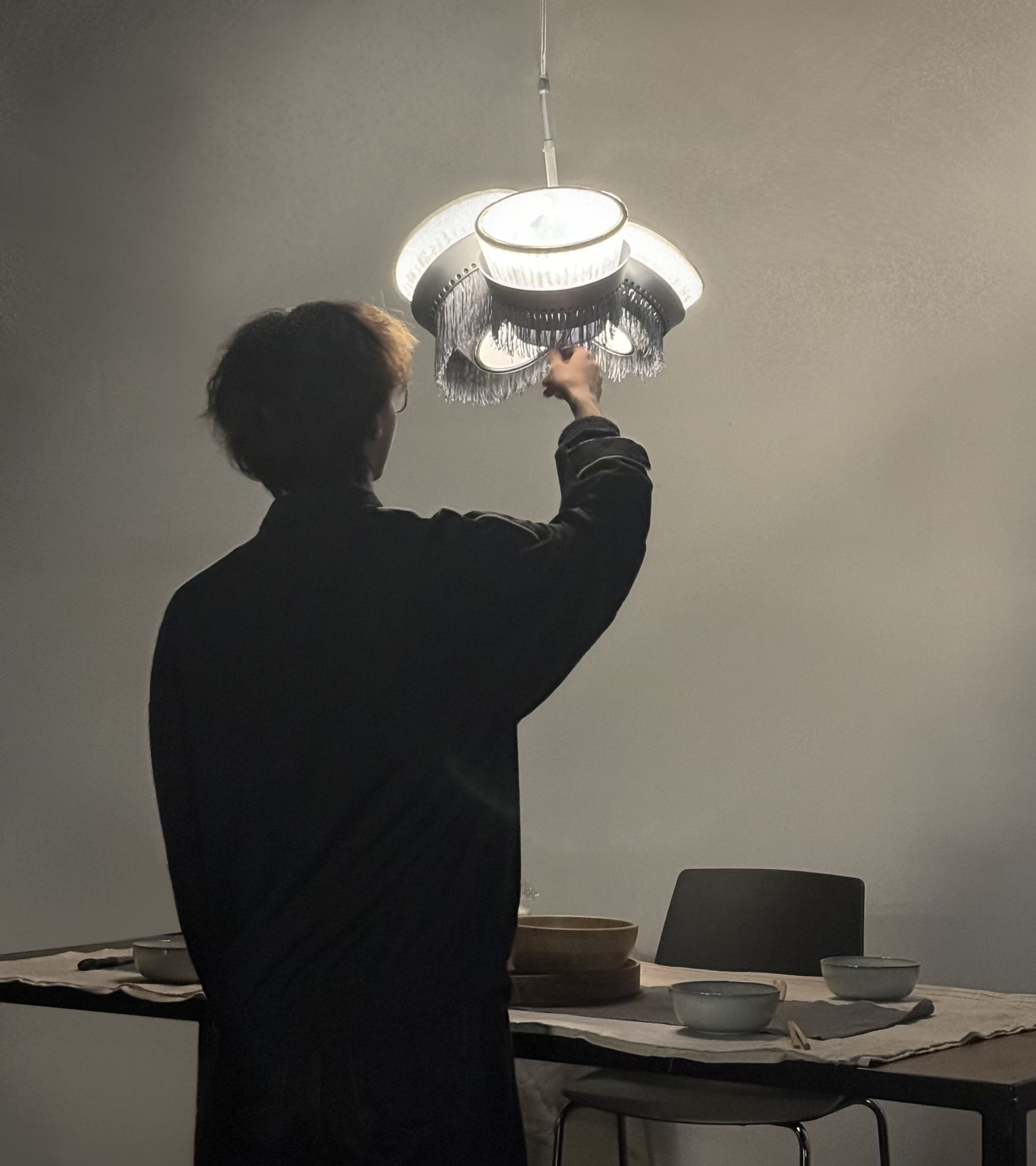 Yir Bbop is a restaurant pendant lamp inspired by cultural elements from China's ethnic minorities. There are 56 ethnic groups in China, and I have two very close friends, called Api and Mahai, who are from one of them—the Yi ethnic group. I incorporated two of the most well-known Yi elements, silver crown and Fire Torch Festival to design this lamp. The most challenging part of the design process was balancing culture and modernity. It is really difficult to refine the transformation of these cultural elements. Yir Bbop can be hung in any restaurant with an ethnic ambiance, enhancing the dining experience while promoting the unique Yi culture of China.