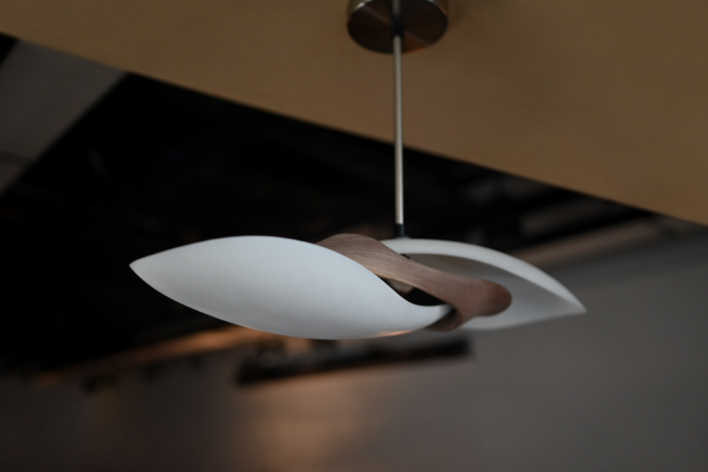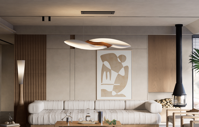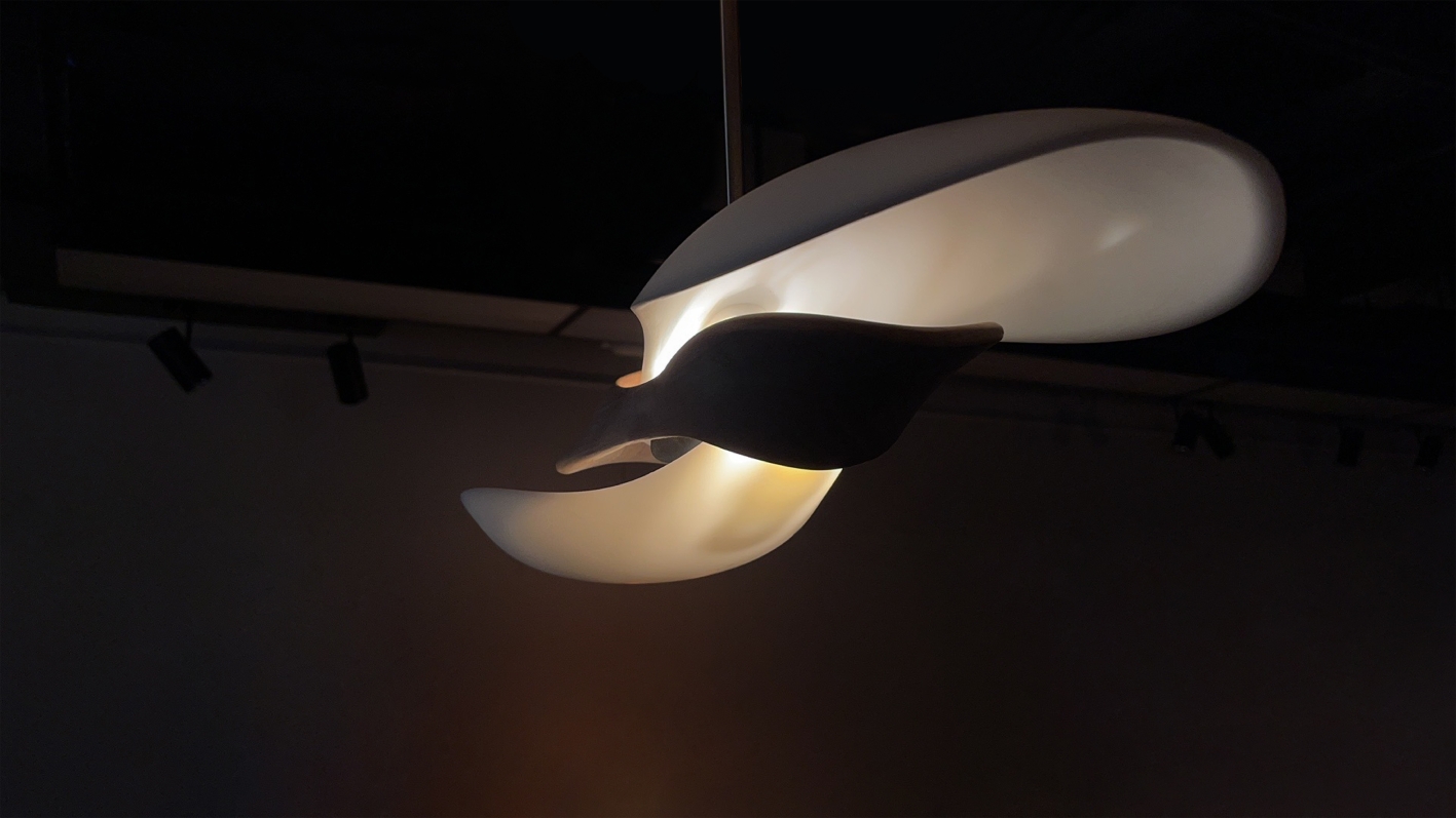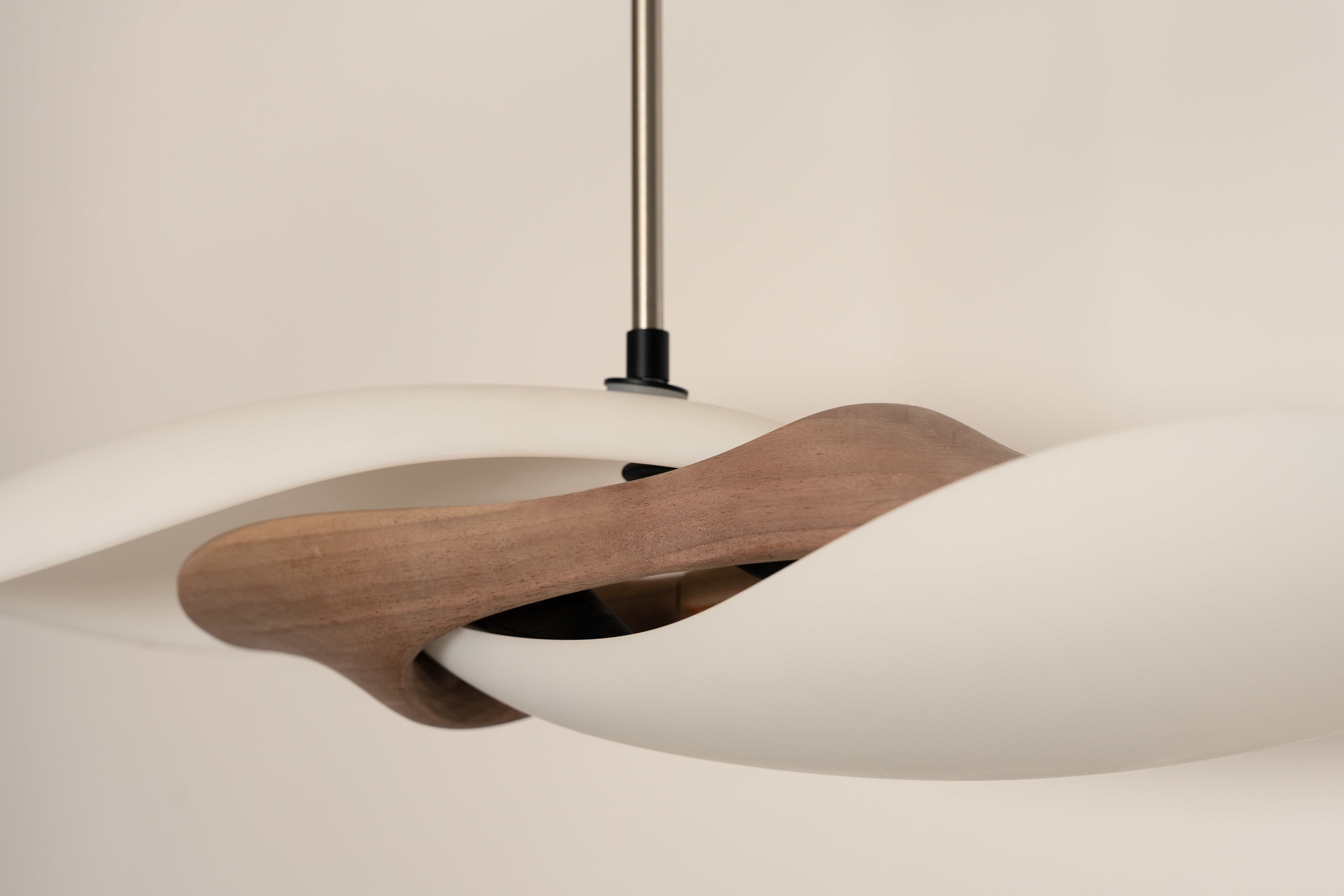 "TWIN" is a unique lighting fixture that materializes the concept of gravity into a home decor context. This lamp, crafted from ceramics and wood, draws inspiration from the theoretical model of gravitational waves between binary stars, transforming this natural phenomenon into a visual structure.