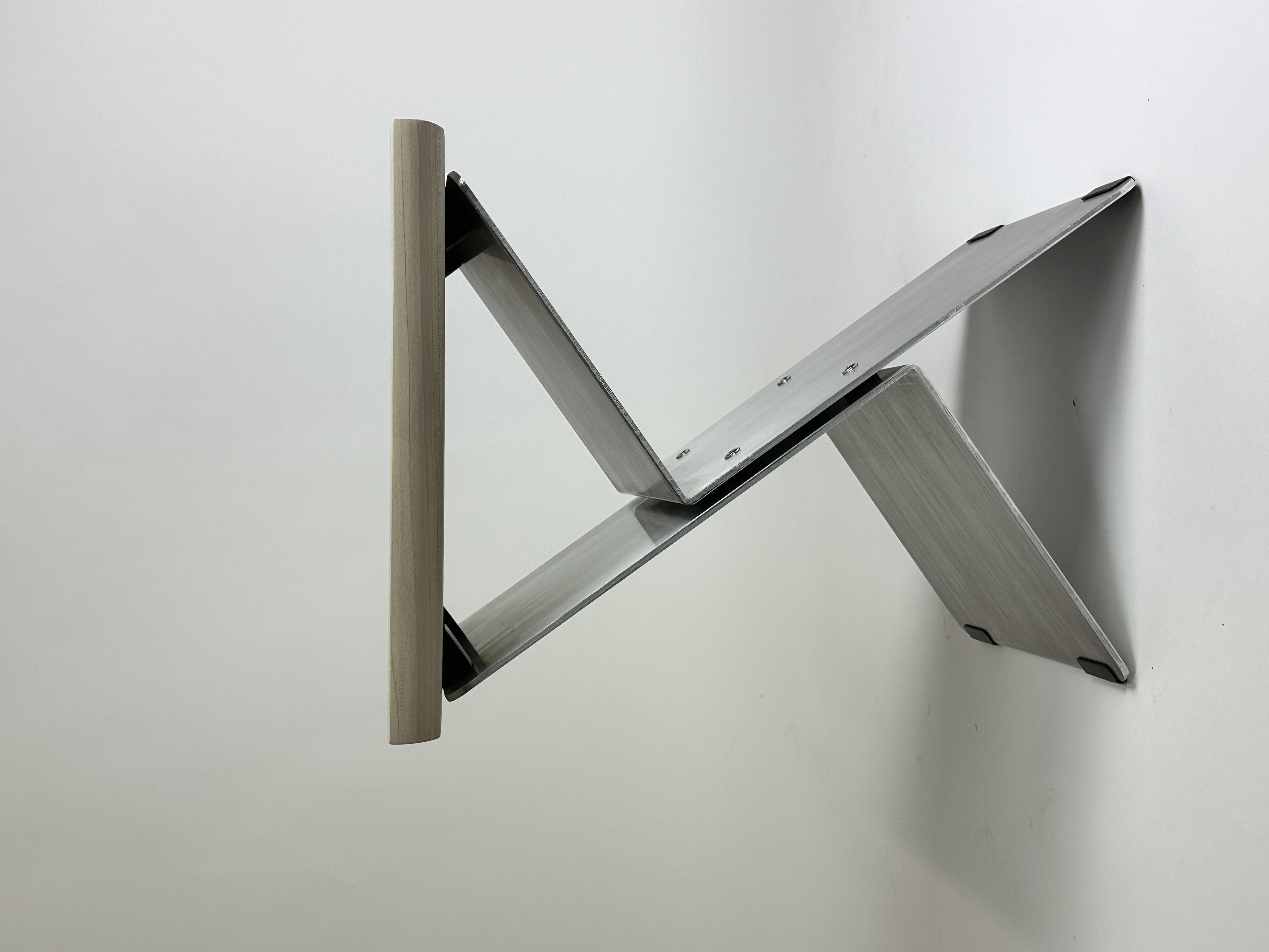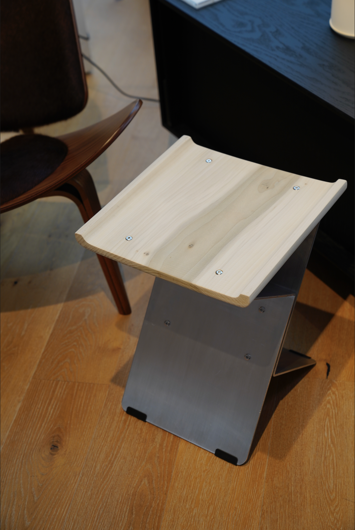Sleek, versatile, and full of character, the 90 Stool redefines multifunctional design. Inspired by Mid-Century Modernism, its origami-like form blends wood and metal for a perfect balance of elegance and utility. A stylish seat at first glance, it transforms into a bookshelf with a simple flip, making it ideal for compact spaces. The smooth wood grain and cool metal create a timeless aesthetic, while its sculptural angles add a touch of sophistication. Whether as a stool or storage, the 90 Stool is a statement piece designed for modern living.