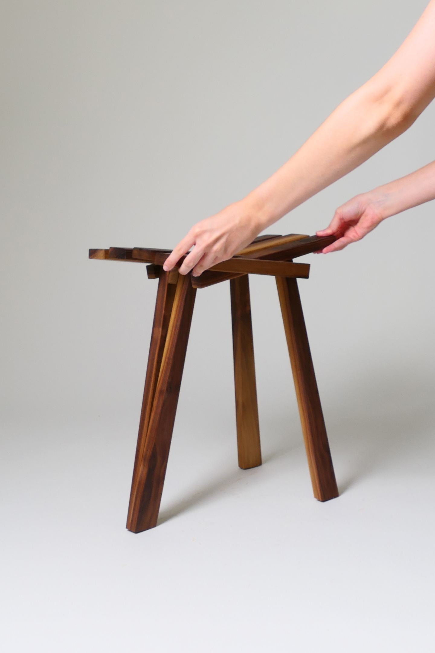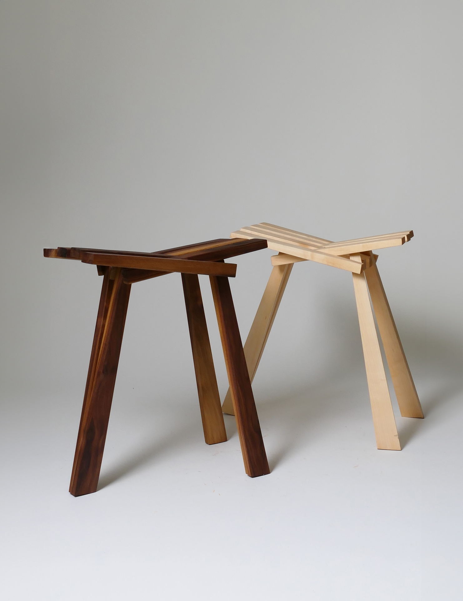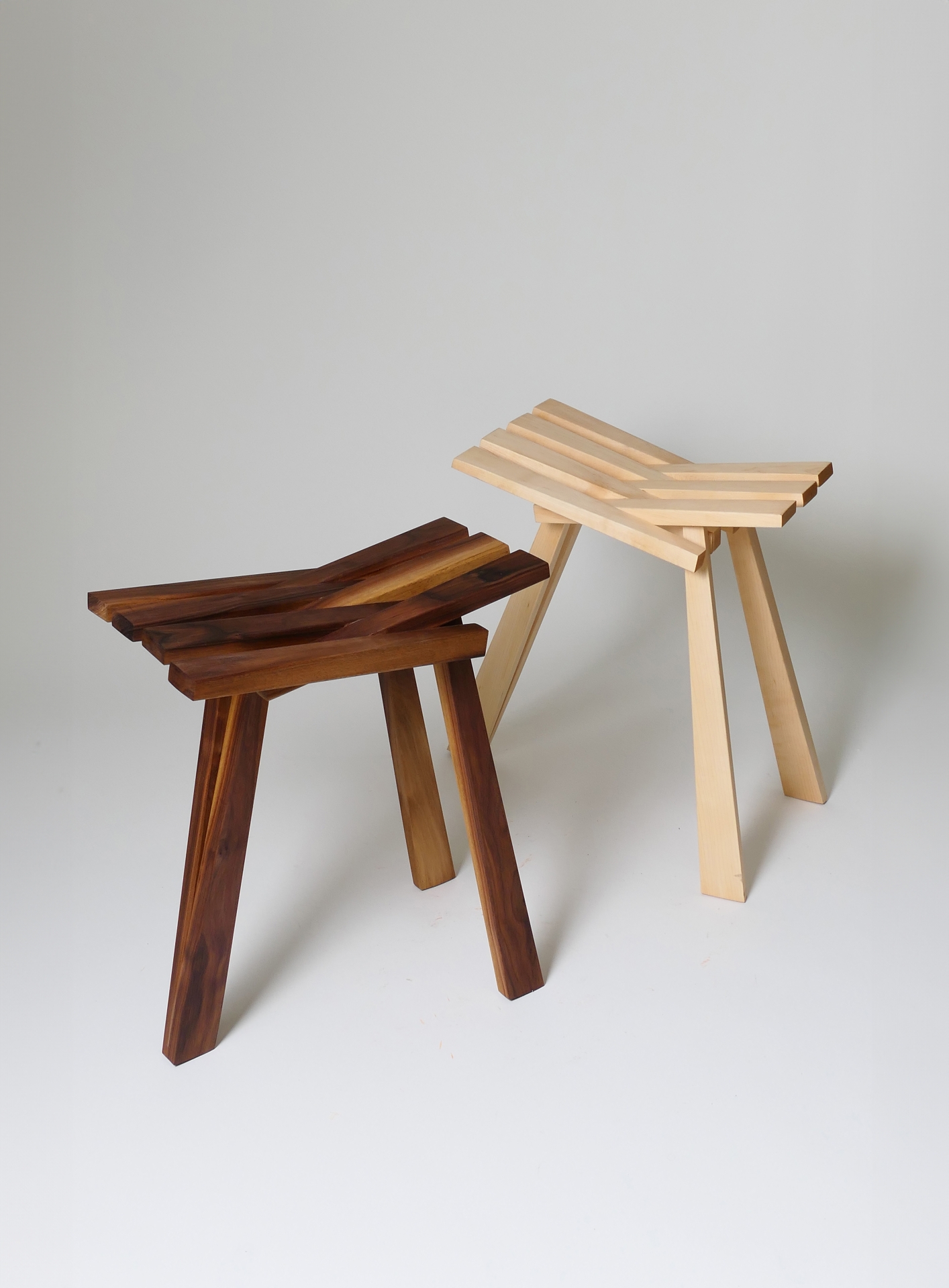 The stools are constructed from American walnut and maple wood, conveying elegance and tranquility, while maintaining a design that remains relevant and impressive over time. The stool not only conveys innovation, but also serves as an aesthetic creation that sparks interest in any environment in which it is placed, bringing with it a sense of uniqueness to any space.
