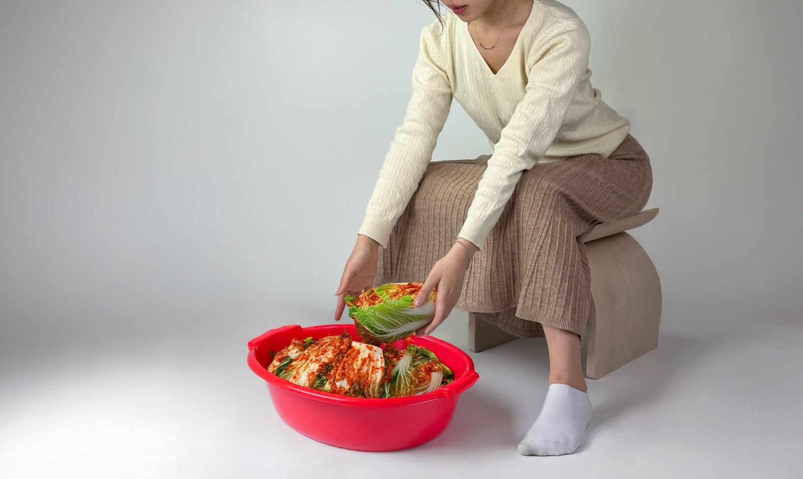 The design of Chi takes inspiration from the Korean letter "chi" in the word "Kimchi," positioning the user as if they are becoming the dash on top of the letter when seated. Chi’s unique curves are influenced by the shape of the Onggi, the traditional Korean fermentation pot used for kimchi storage. The carefully considered form combines functionality with cultural homage.
