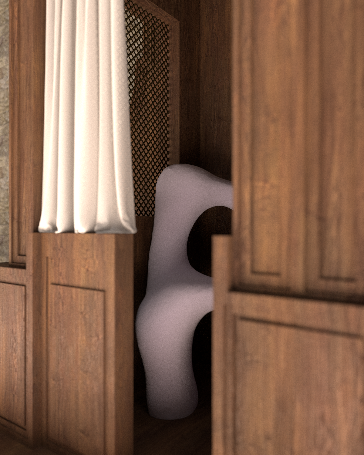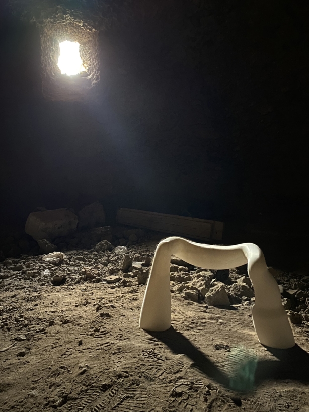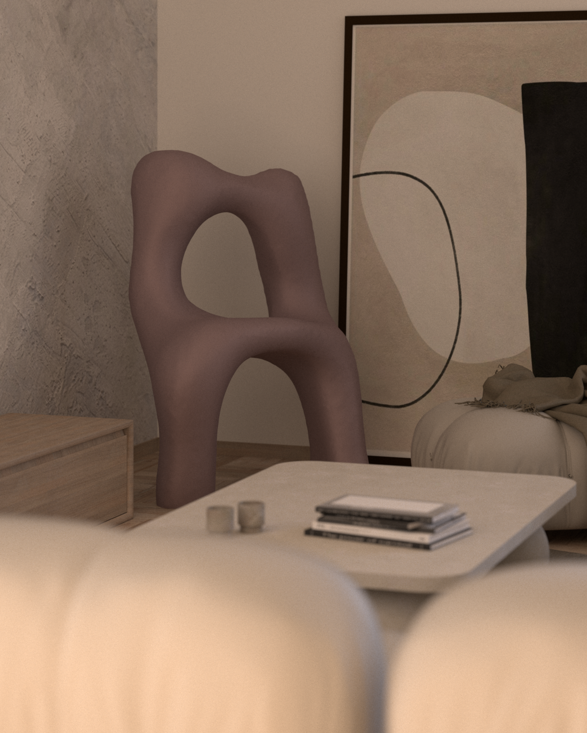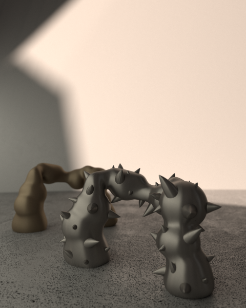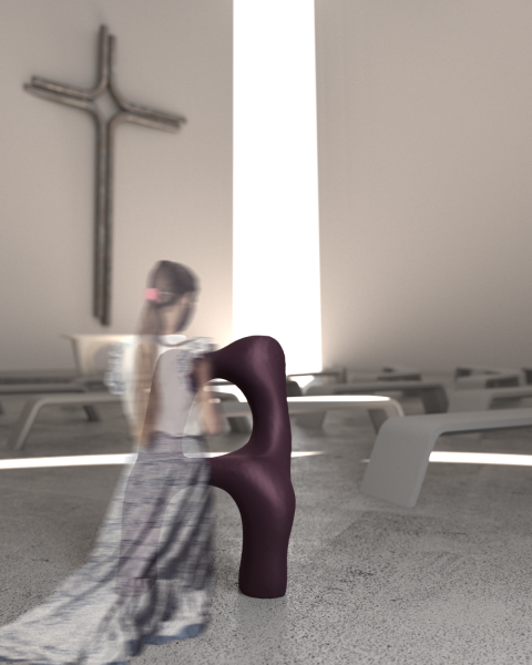 Mater is a design research project that explores the symbolic and physical dimensions of the female body, drawing on themes of femininity, religion, and sexuality. It takes the form of a collection of low seating furniture pieces designed for female spiritual rituals, functioning as prayer stools suitable for both private and sacred spaces. Each object features an anthropomorphic form, reflecting the curves, folds, and asymmetries of real women’s bodies—embracing visual “imperfections” as an essential part of its aesthetic identity. The soft, haptic surfaces are crafted using unconventional upholstery materials to invite tactile, intimate engagement. One of the seats is adorned with thorns, referencing the image of the Virgin Mary of Seven Sorrows, and symbolizing pain, sacrifice, and emotional endurance. Drawing inspiration from sacred iconography such as the Pietà, mater becomes a sensory and symbolic mediator of socially charged themes, offering space for reflection and quiet contemplation.