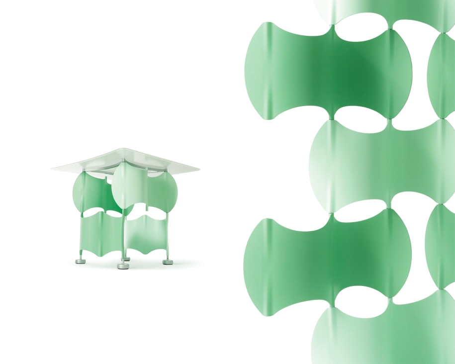 Inspired by nature, this modular office furniture set reflects atomic bonds forming molecules, cells shaping the human body, and emotions connecting communities. By merging science and art, it encourages reflection on relationships, fostering harmony, beauty, and hope in future workspaces. The screen and table function independently or together, adapting to dynamic environments.
