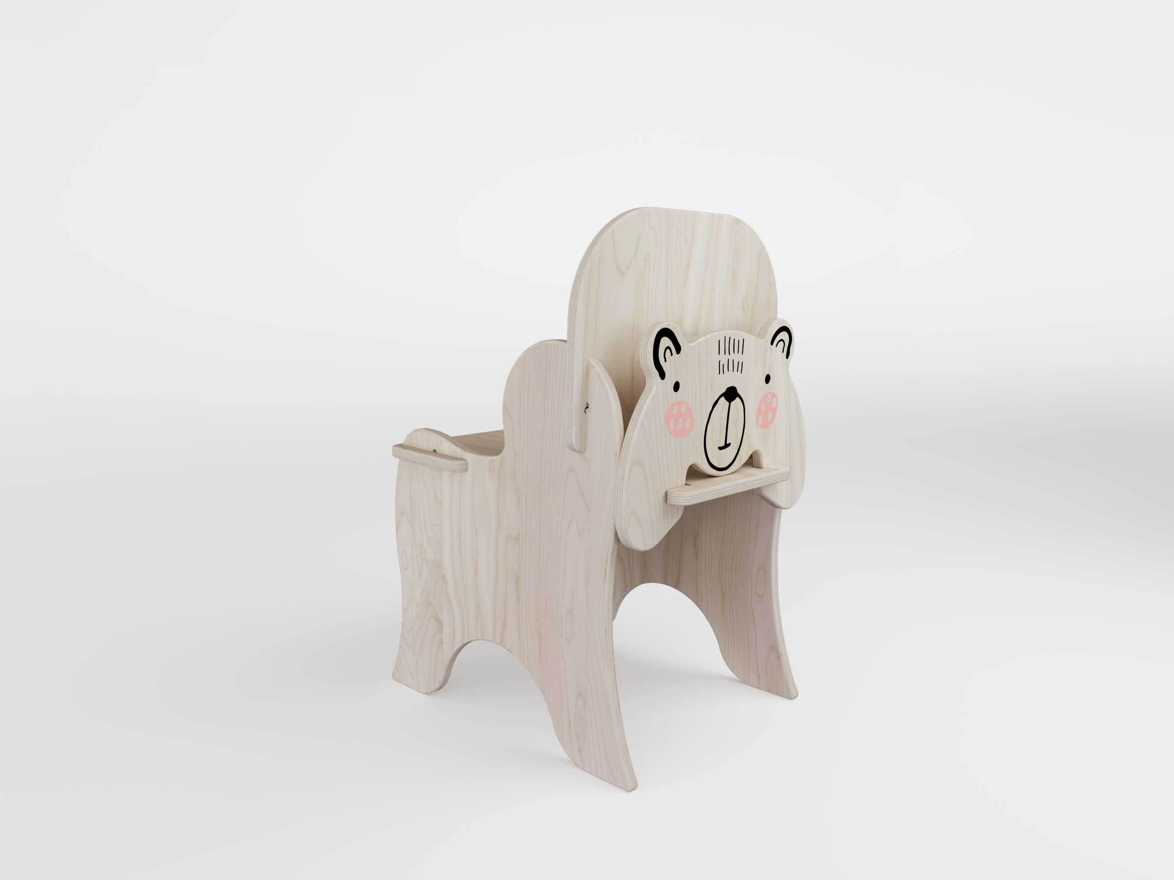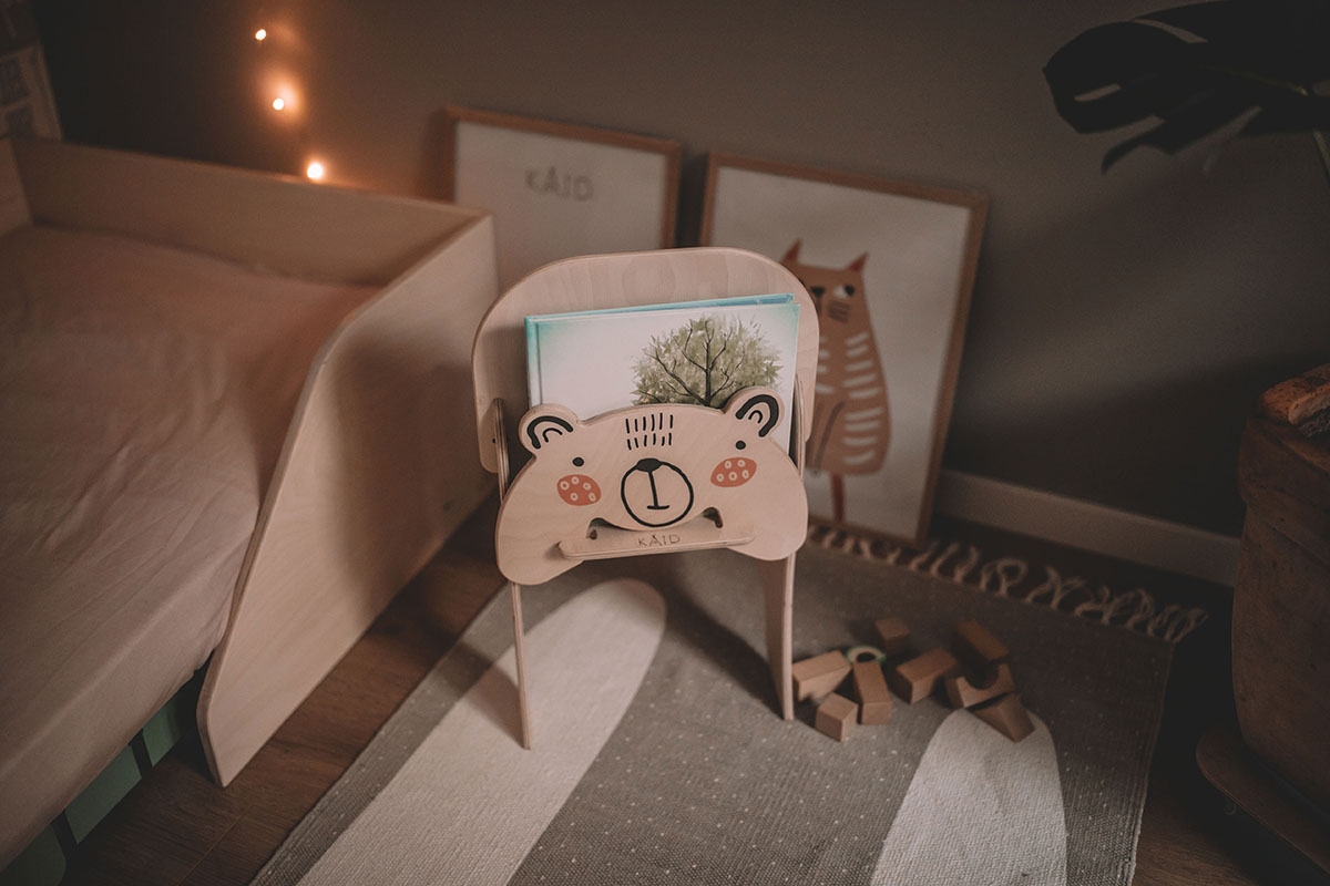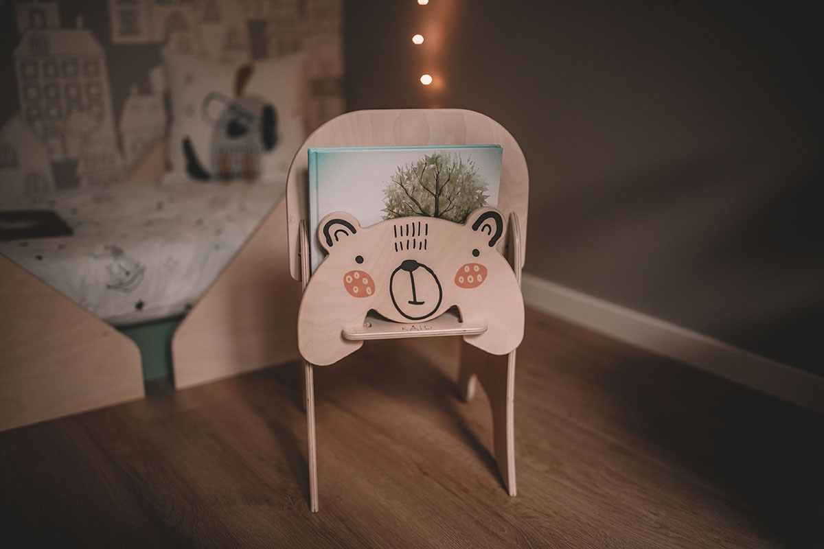 Modern kids chair design for the little lovers of the fairy world, we made it with a special place between the backrest and figure to store books. The bear's head elements can be removed and attached, so your child can plat with it.