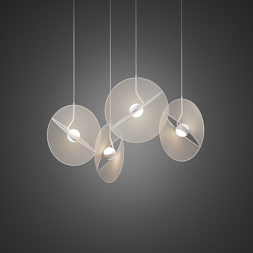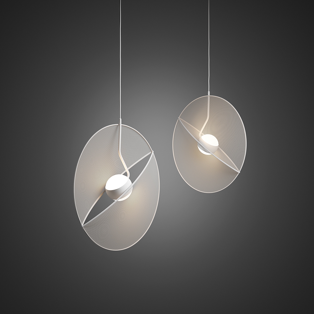 A circle - the main form of a flat diffuser - is a metaphor for an objective, unambiguous phenomenon. And a bright luminous ball with lenticular optics, placed in the center, splitting it in half and giving it volume is a symbol of the strength and significance of human perception. It reflect the potential of personal vision to transform the surrounding reality through one's own feelings and point of view. A beam of light, scattered by delicate sparks along the fibers of a textile diffuser, shows how organic, moving and bewitching the vision of each individual person can be.