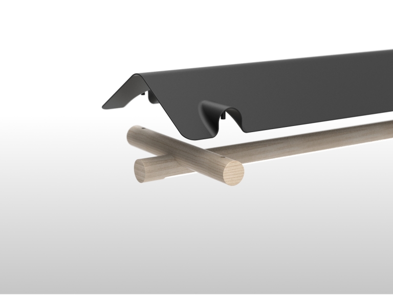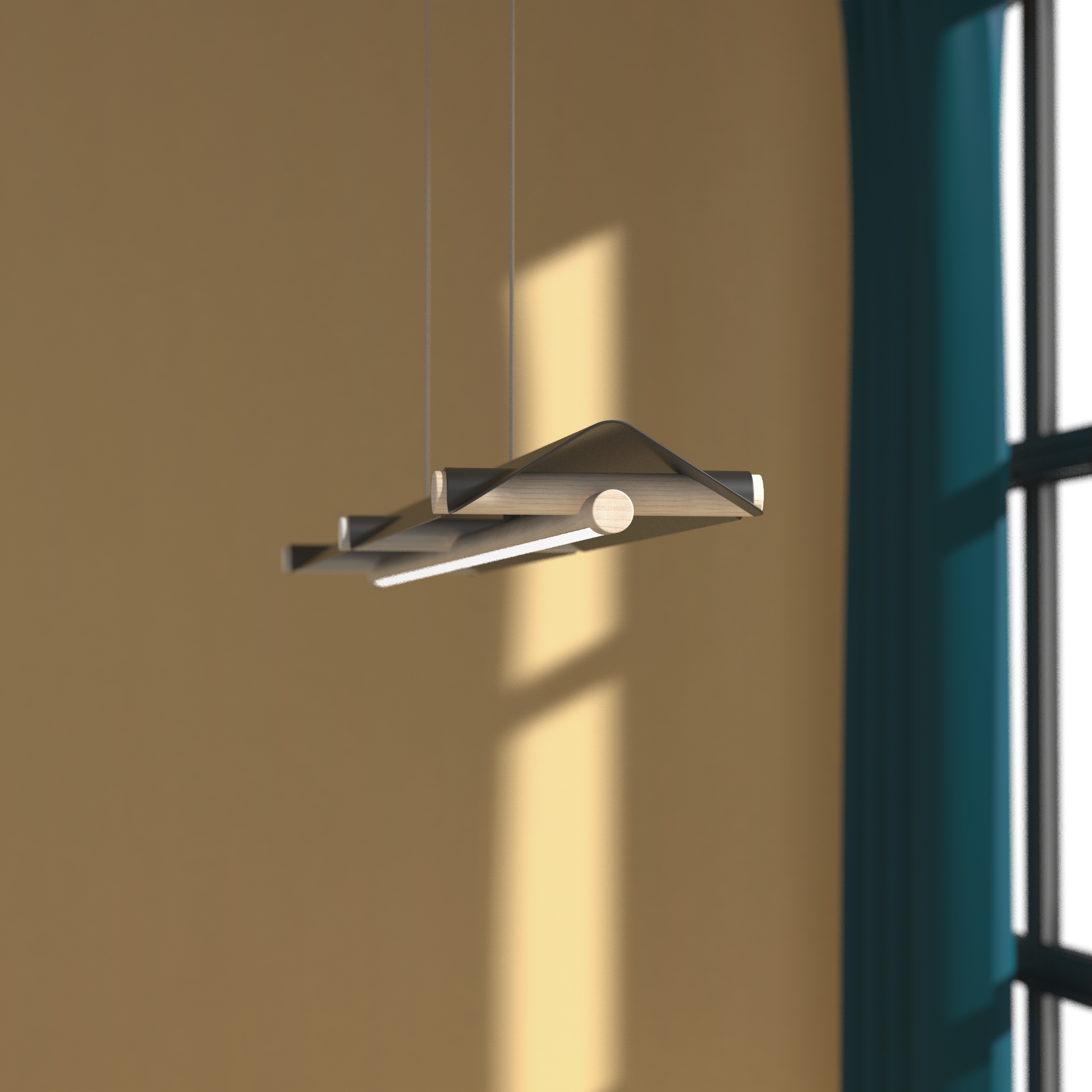 To infuse the unique feeling of the attic space into a lighting product design, I used the architectural wood frame made by the traditional joinery technique. Its straightforward structure hints at the exposed wood beam rafter system, which is used widely in conventional house buildings. And the simple metal shade design, similar to the gabled roof in form and proportion, adds a touch of contemporary design aesthetic to the space it is displayed within. The combination of warm natural wood and chic powder coat finished metal gives a clean and modern aesthetic with an inviting vibe at the same time.
