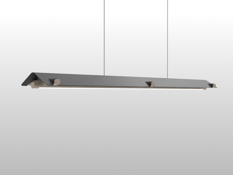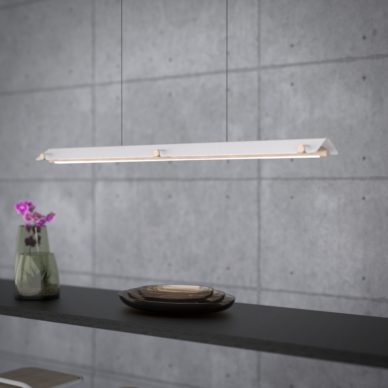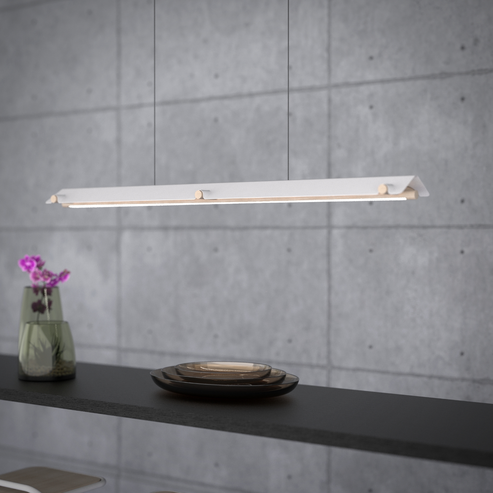 ATTIC's slim and straight figure and meticulously curved surface detail achieve a minimal yet friendly look that goes well with contemporary interior design. Its two-faced characteristic will be a good design accent above a dining table.