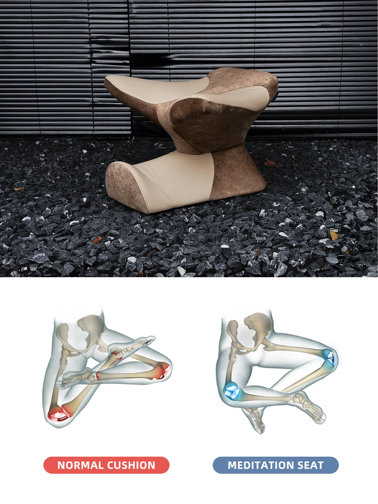 Meditation seat is based on ergonomics.It develops instruments to help people form correct and relaxed cross - legged sitting posture, and achieves the ultimate effect of developing human potential and storing energy through meditation activities.