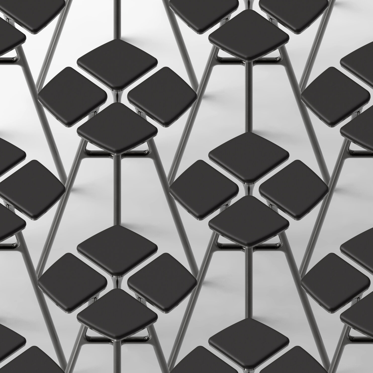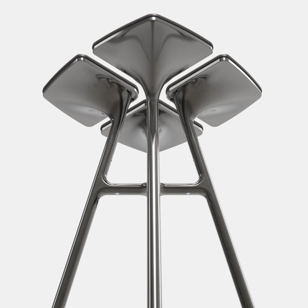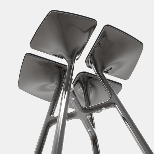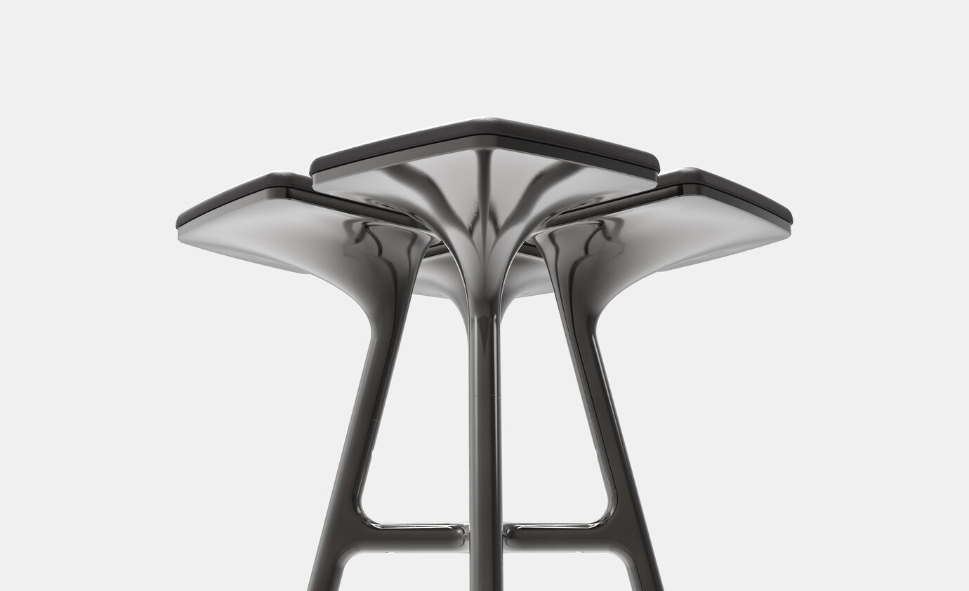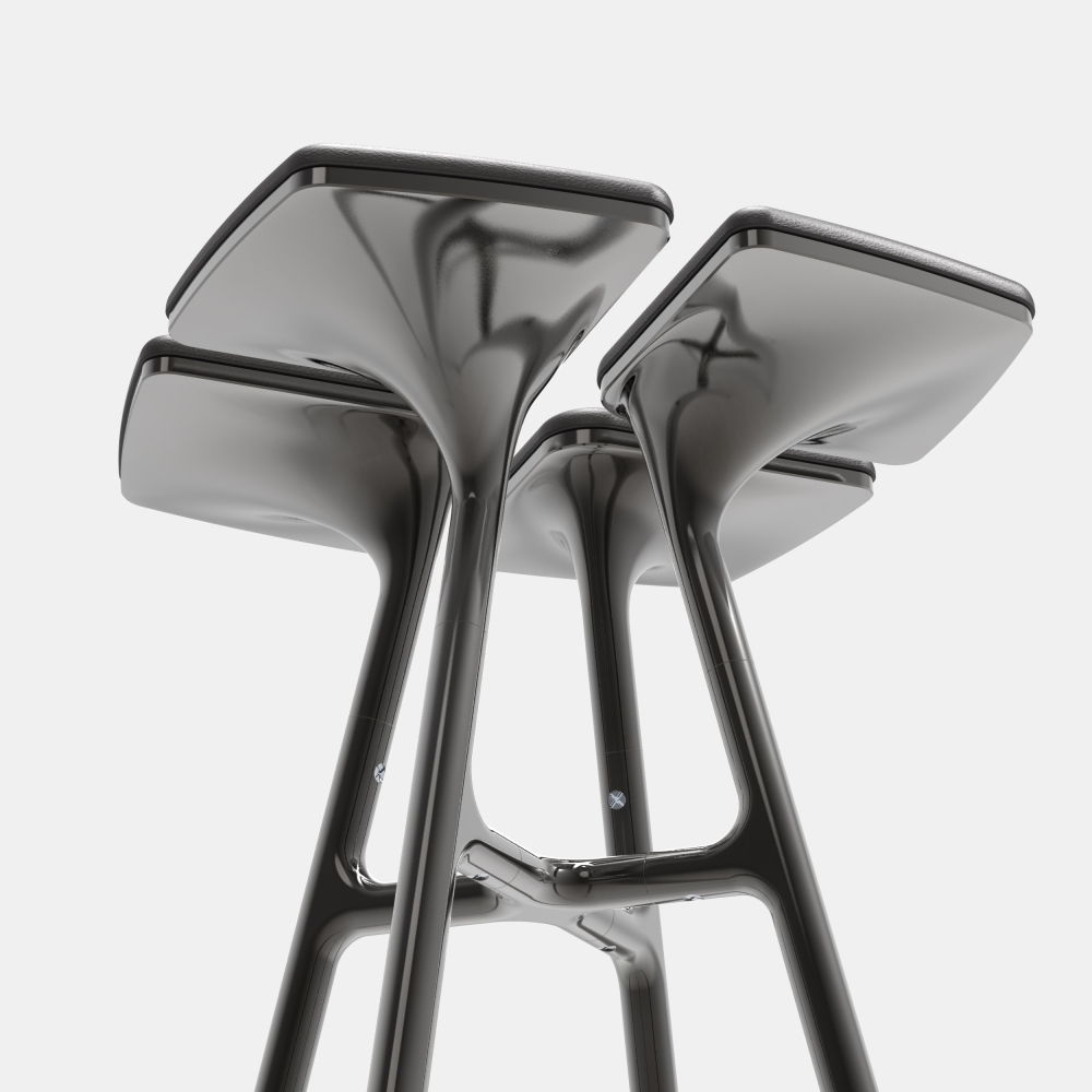 This stool was inspired by the bilateral symmetry of the human body and how it interacts with the ergonomics of furniture. The aim of this project was to heavily incorporate the forms of nature and combine these with man-made materials such as stainless steel and leather. The colors are monochrome so they emphasize the organic forms and flow of the geometry.