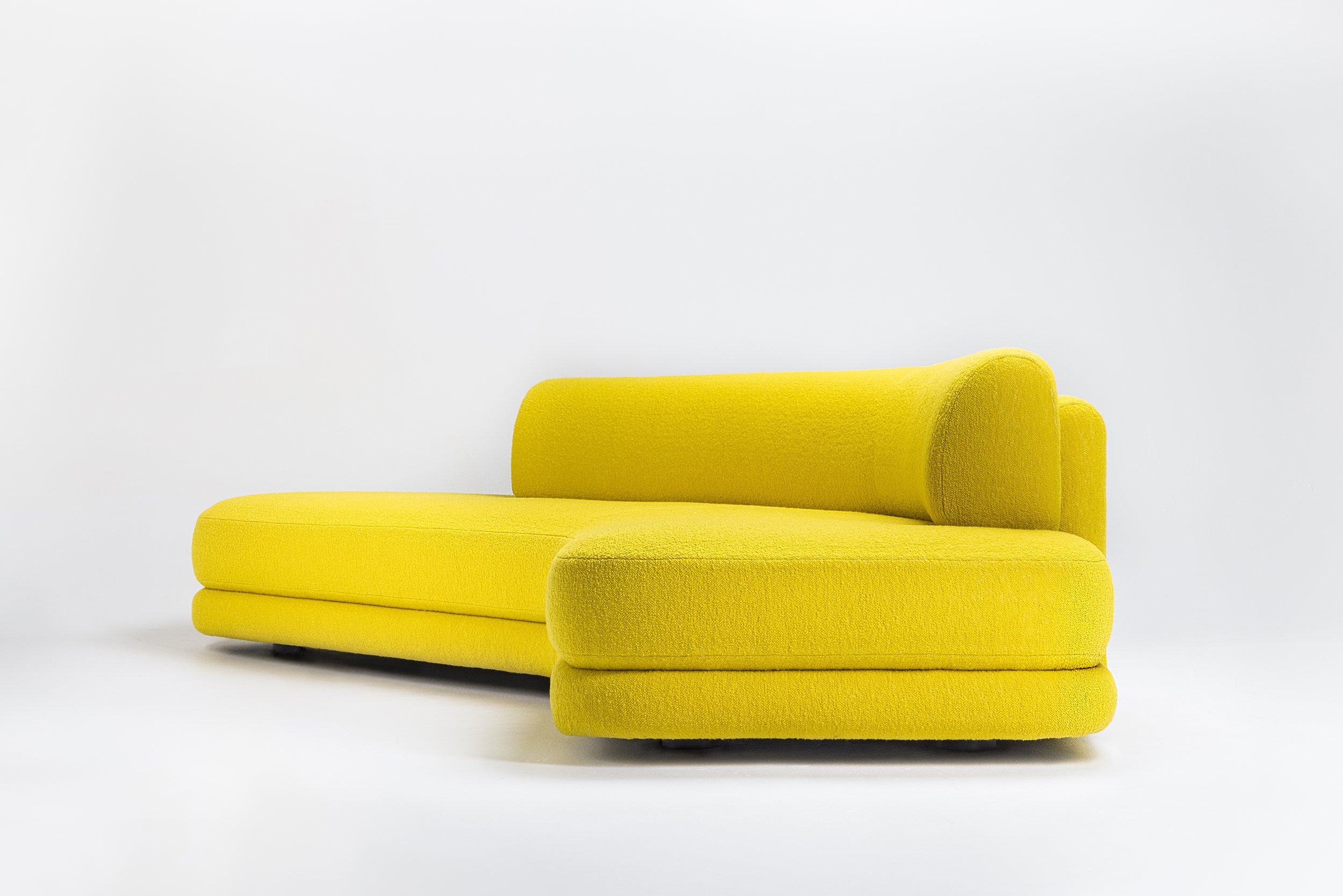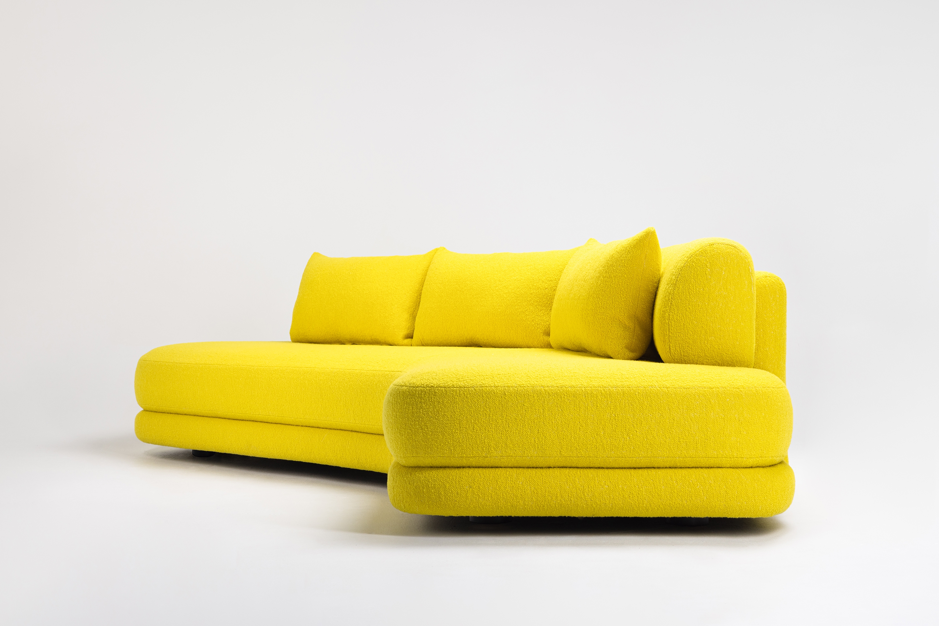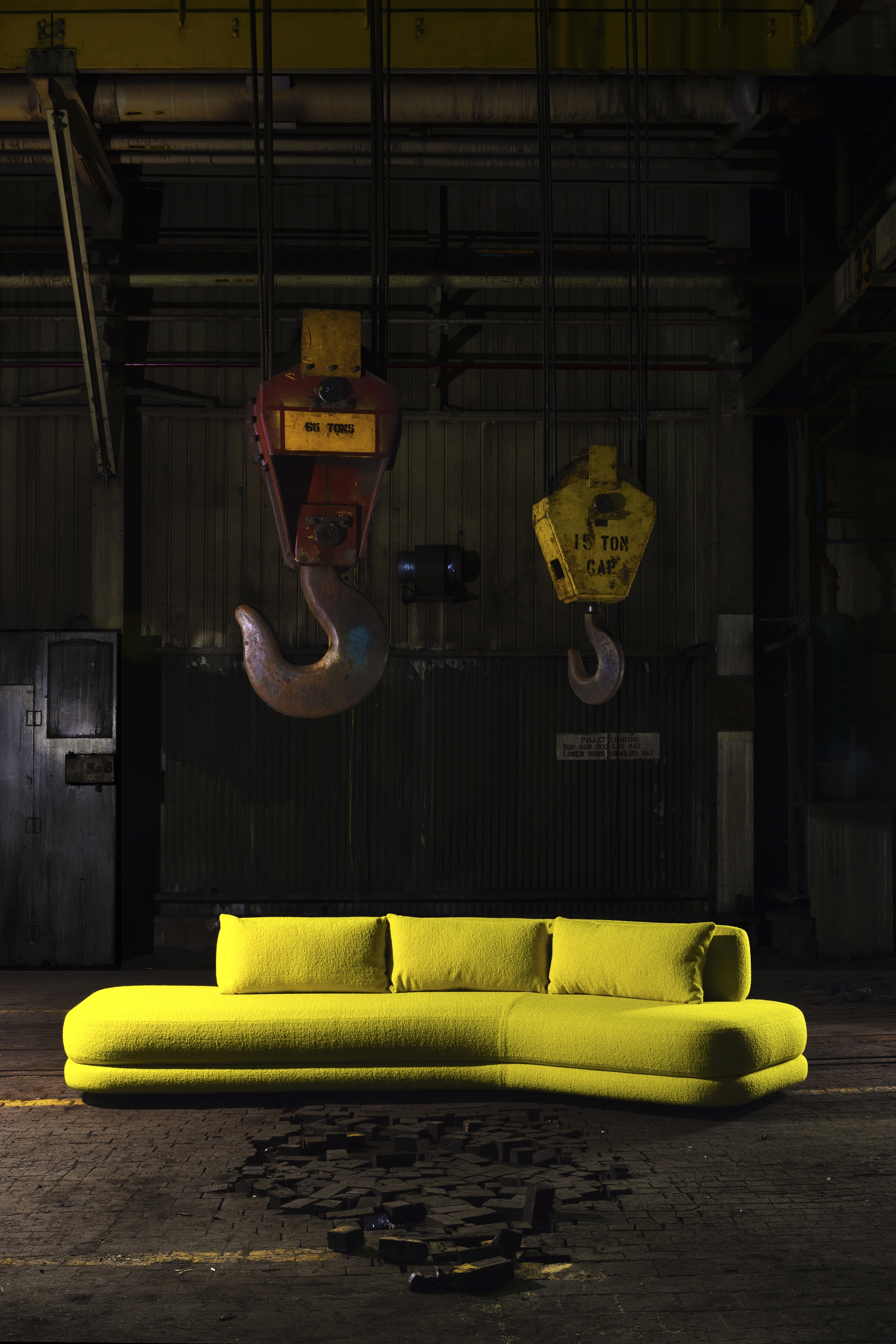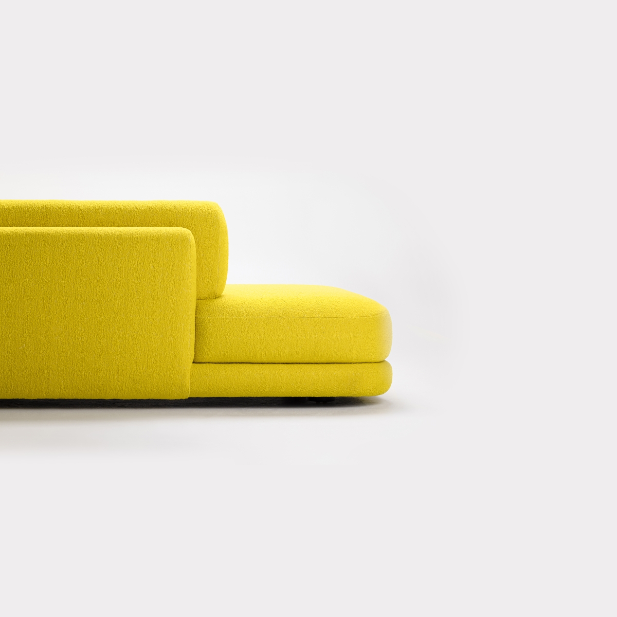 The Lido Sofa appears to be floating in midair with extra-thick cushions and plush backing. Here the typology of a sofa is broken down into a series of extra soft layers and re-assembled. The bright colours available make it a centerpiece of levitating comfort.