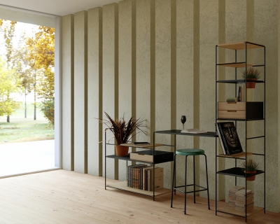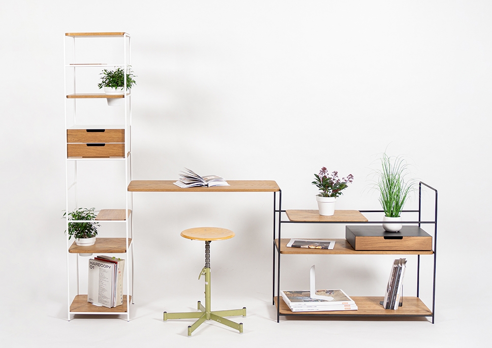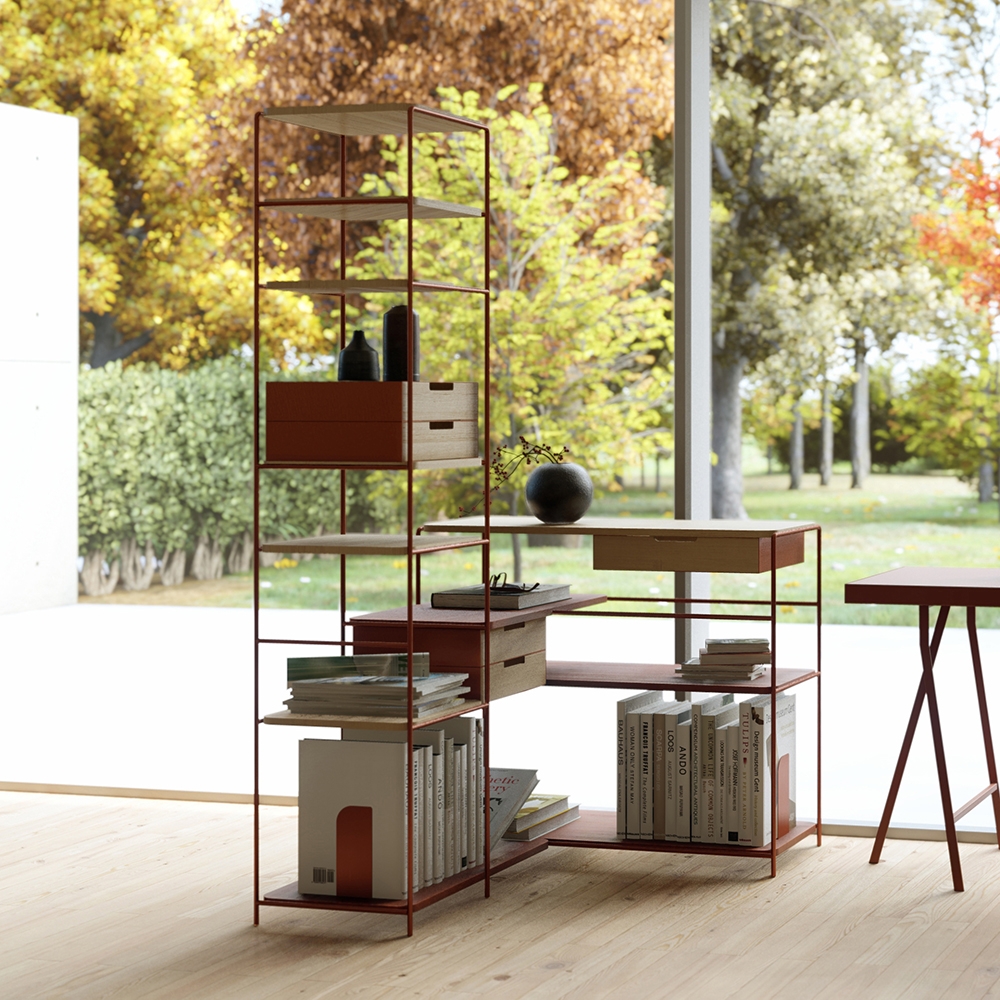The profile in the wood serves as a construction as well as design detail and enables frame connections, in length or across corners. The shelving system includes a total of seven, selectable frame variants that meet different requirements. They allow for short-term redesign, rearrangement and functional changes in everyday life.