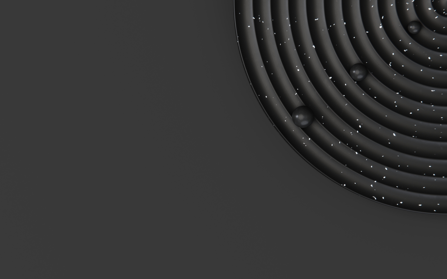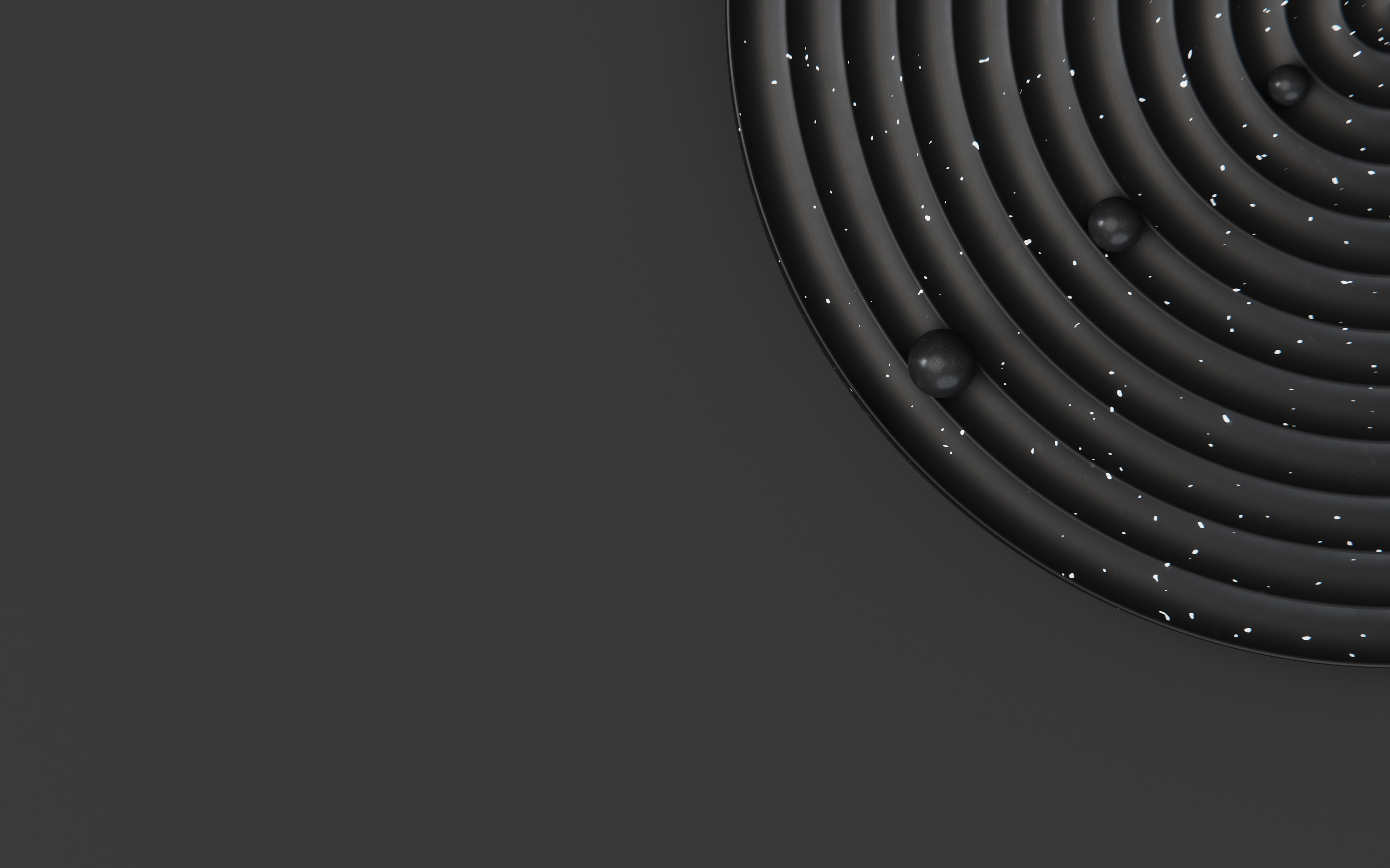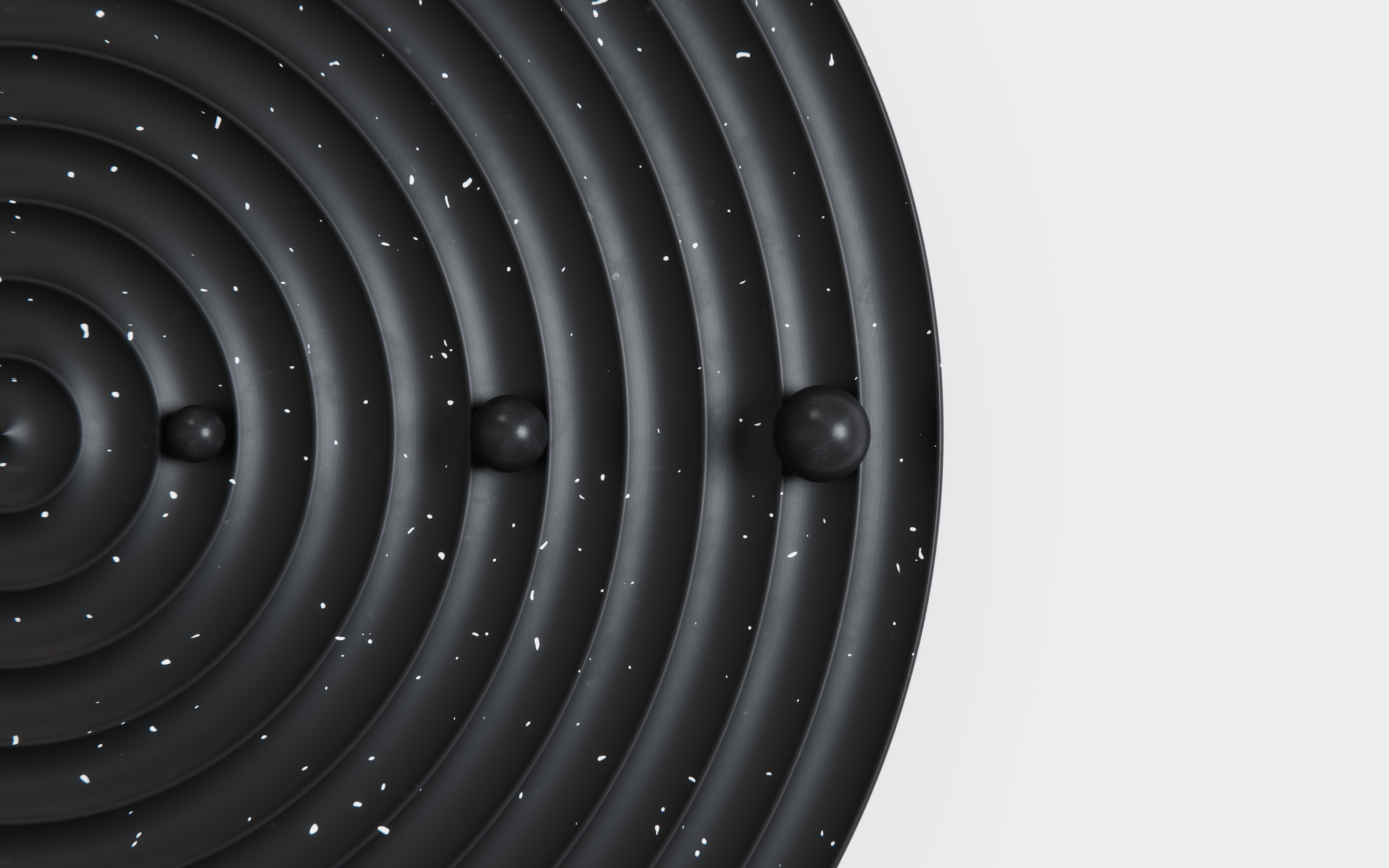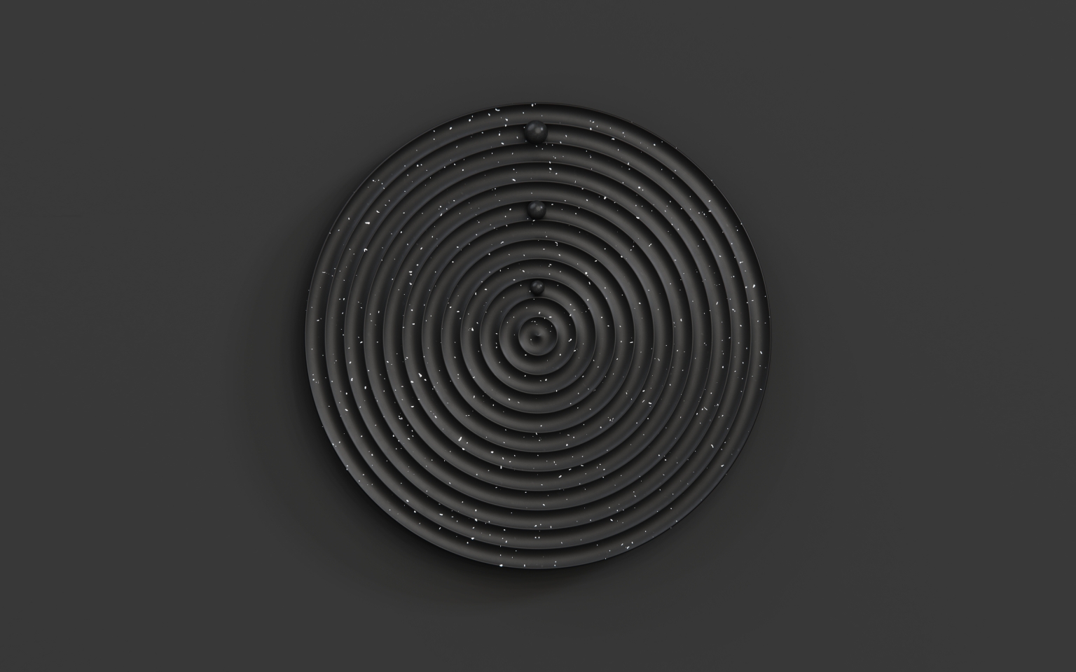 Órbita is a wall clock inspired by planets, comets, asteroids, and other objects that orbit around another body. It has three satellites that rotate at different speeds, representing the passing of seconds, minutes, and hours. The white speckles on the matte black is reminiscent of distant stars within dark sky.