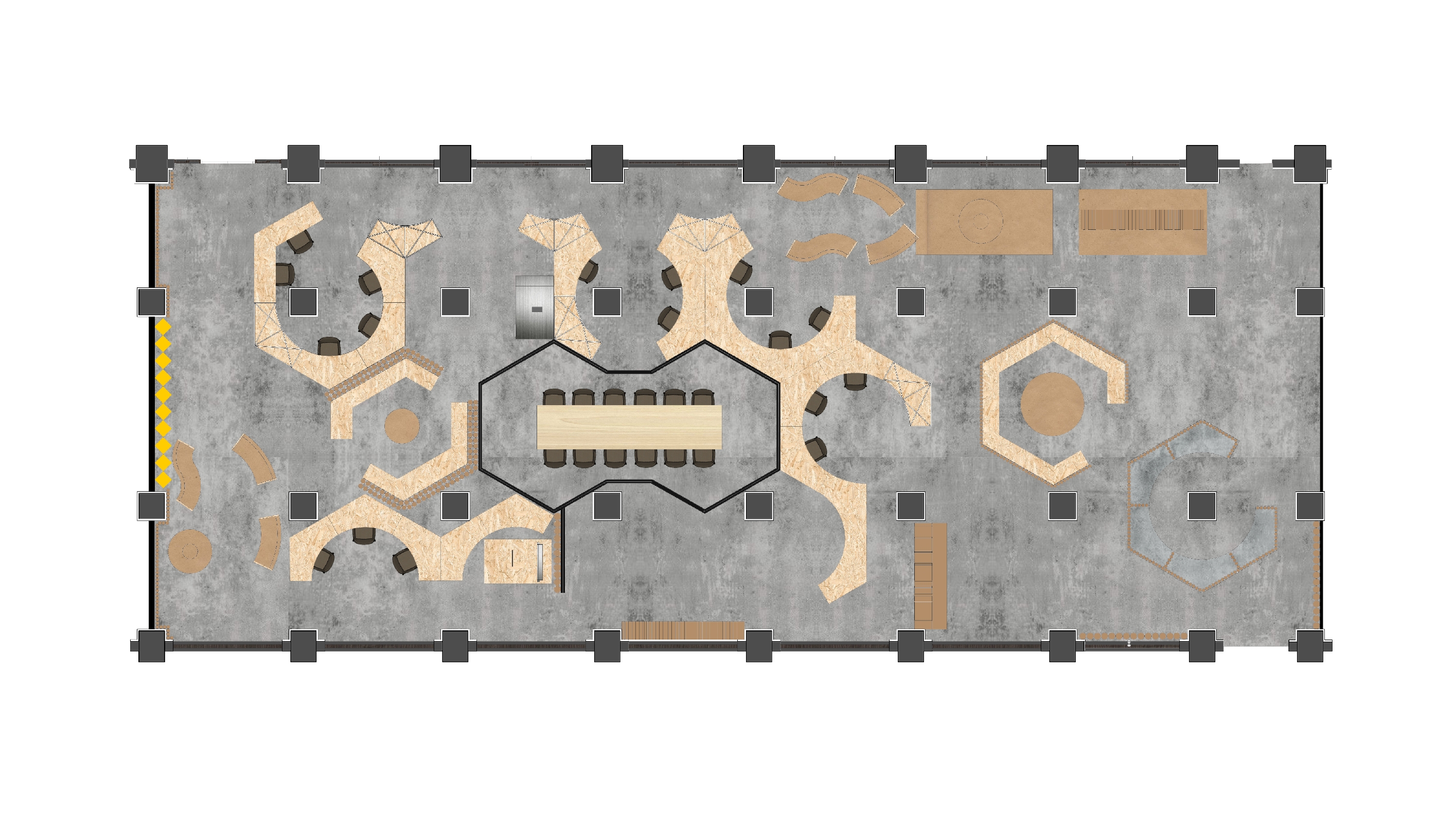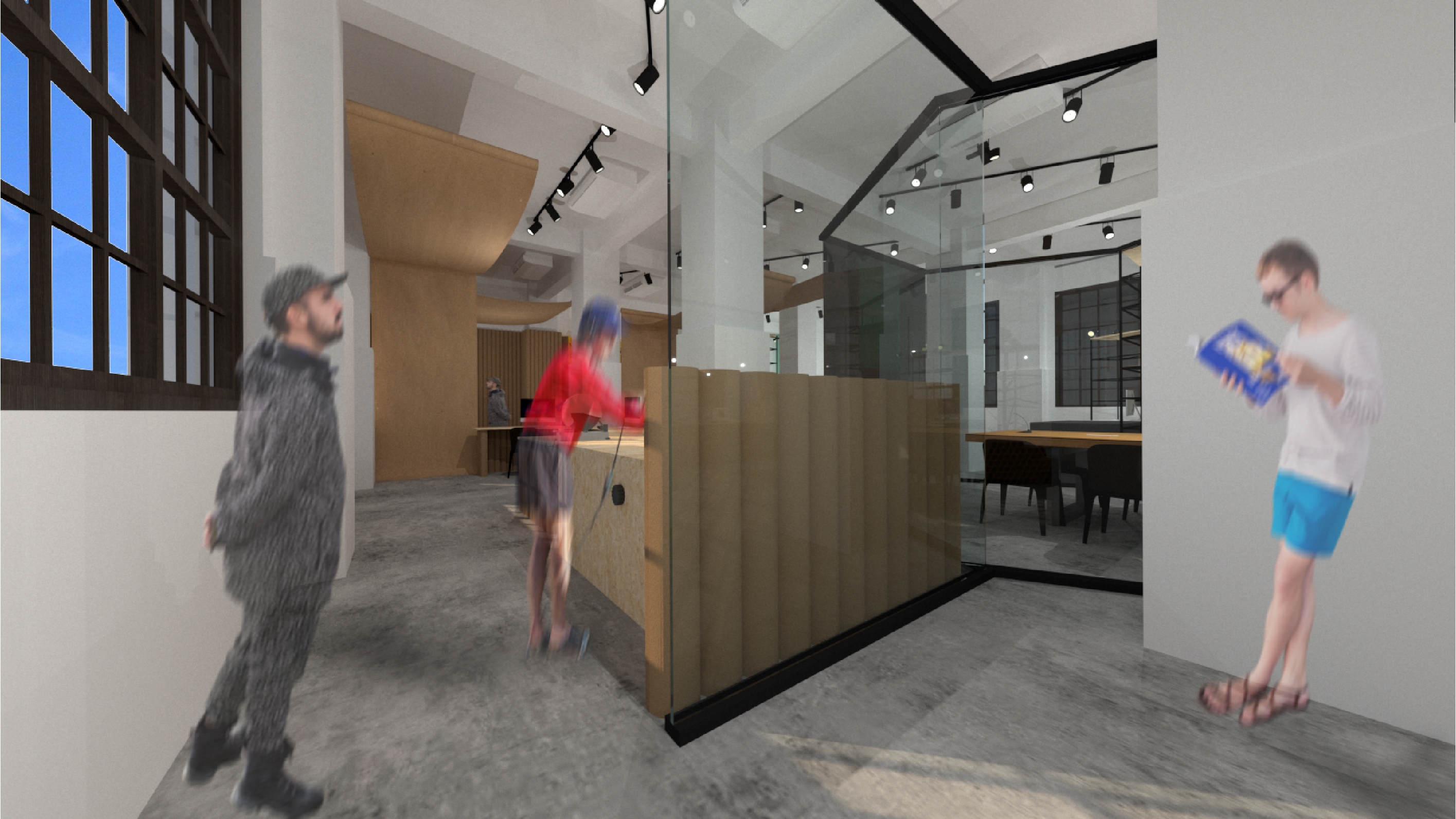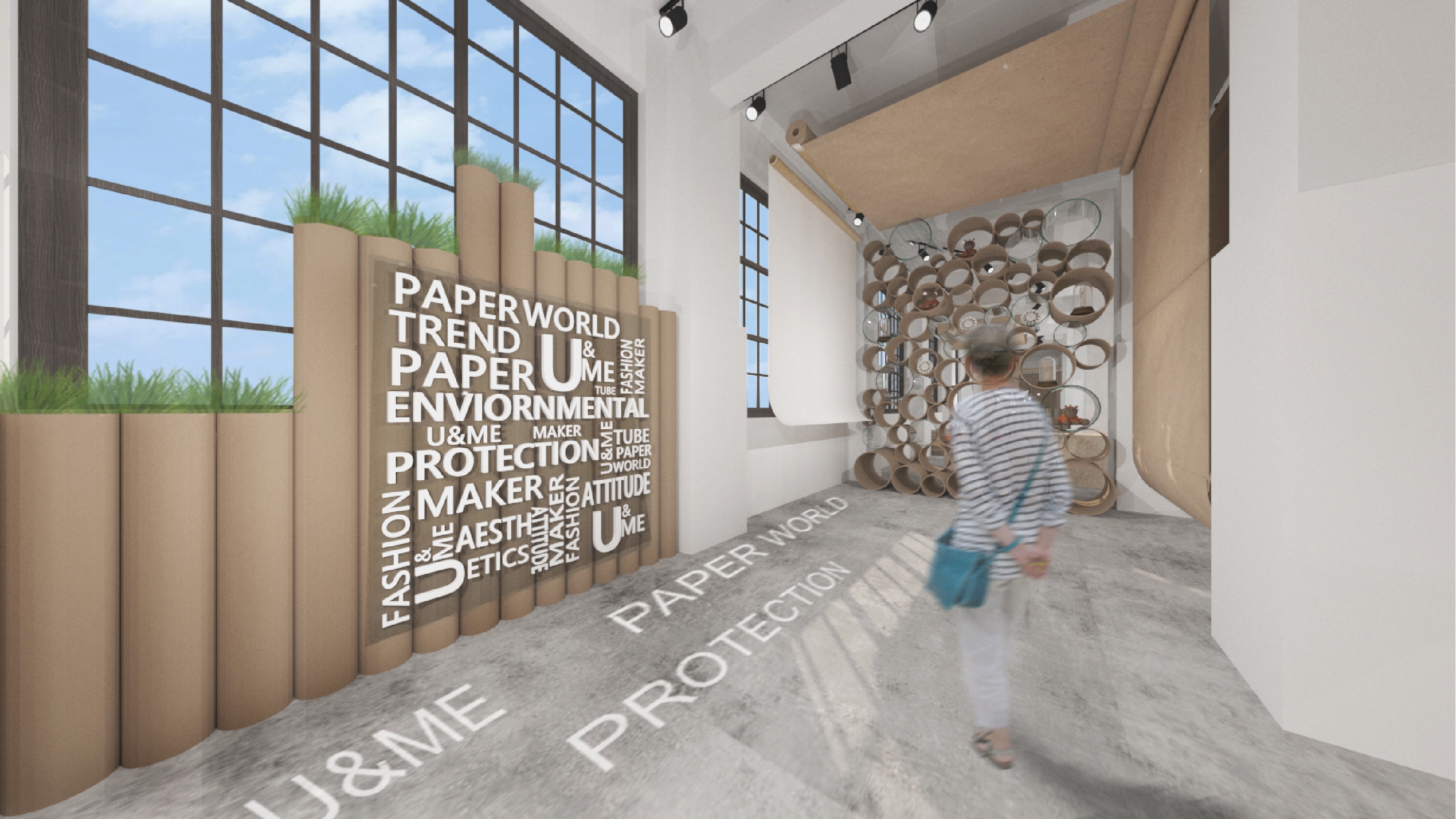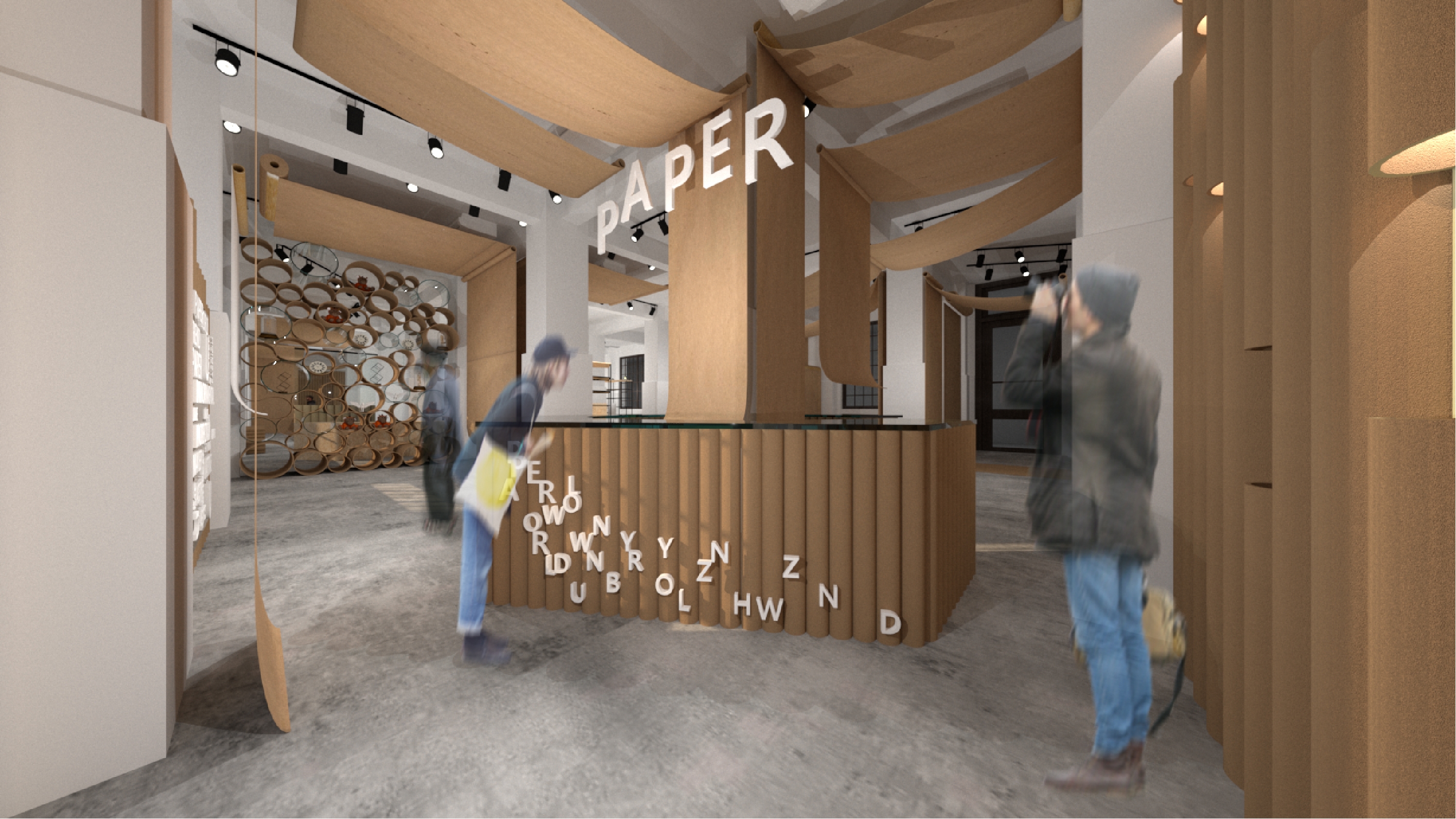 Creative Designer Co-work Space With recycled paper as the main axle, this design adopts the concept of recycled paper, using the process of recyclable materials: cleaning, precipitation and paper making as the concept. Through the four techniques of cutting, flowing, condensing and stacking, and through the reproduction of paper, it shows the new possibilities of eco-fashion to create organic space in which creators can express their creativity to the fullest.